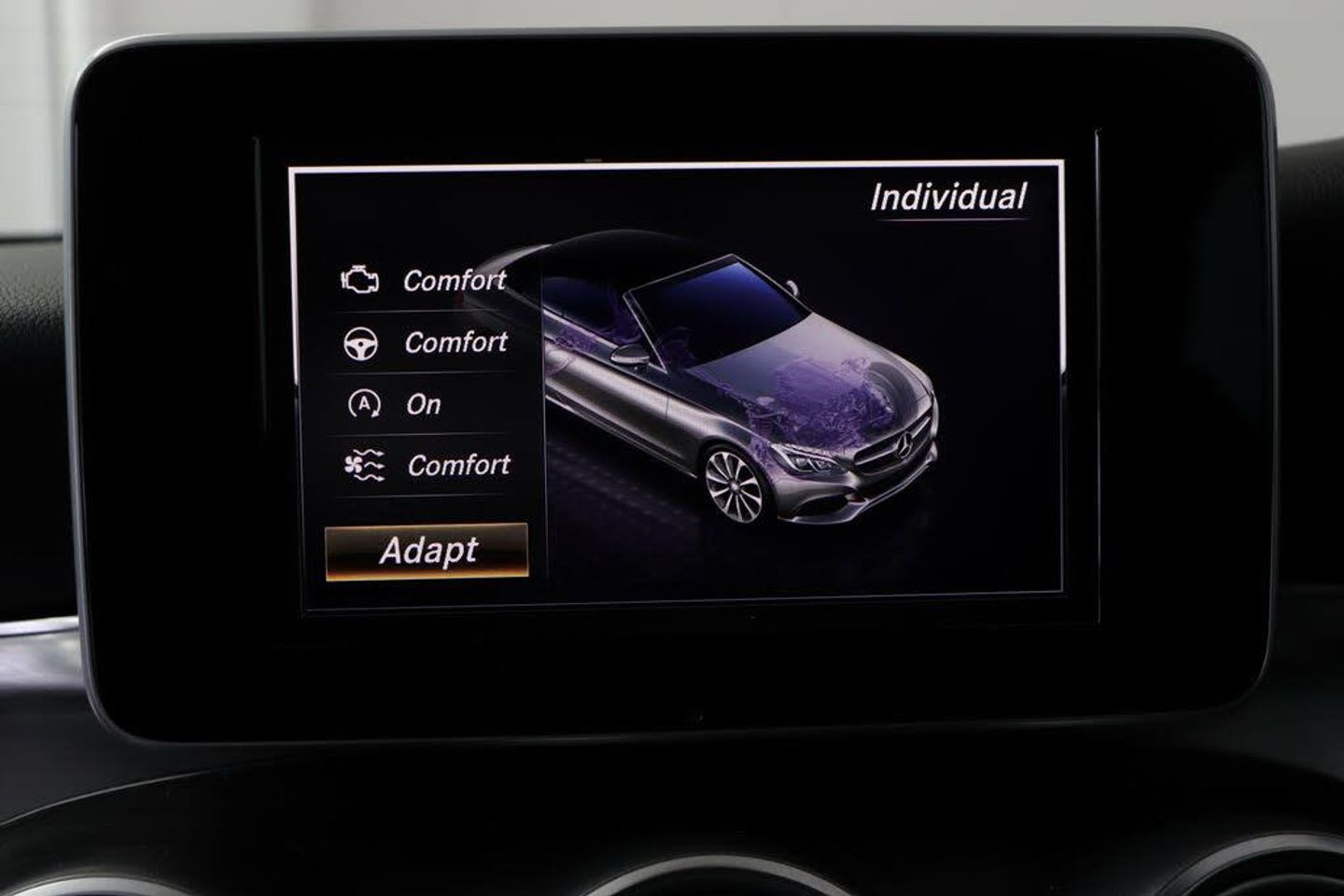 Outside temperature gauge,Remote boot release,Multi function trip computer,Speed sensitive steering,Service indicator (ASSYST),Bluetooth interface for hands free telephone,Attention assist,Active park assist with parktronic system,Garmin Map Pilot navigation system with SD card, touchpad and voice control,Collision prevention assist plus,DYNAMIC SELECT with a choice of driving modes (ECO, Comfort, Sport, Sport+ and Individual),Instrument cluster with 5.5-inch TFT multi-function display,Diesel particulate filter,DAB digital radio module,Steering column mounted multifunction controls,Media interface,Frontbass loudspeakers,2 USB ports,Green tinted glass,Wind deflector,Electric windows one touch open/close,Auto dimming rear view mirror,Auto dimming driver's door mirror,Rain sensor windscreen wipers,Body coloured bumpers,Chrome grille surround,Electric adjustable/heated/folding door mirrors,Adaptive brake lights,LED daytime running lights,LED tail lights,Door sill plates with "Mercedes-Benz" lettering,Twin chrome exhaust tailpipes,AMG front, rear apron and side skirts,Radiator grille with integral star,Side windows surround in polished aluminium,Electric front seats,Illuminated glovebox,2 rear head restraints,Front centre armrest with storage compartment,Front footwell illumination,Auto Mercedes-Benz child seat recognition sensor,Sunvisors with illuminated vanity mirrors,Door courtesy lamps,Electric height adjustable front seats,Auto dual-zone climate control system,Isofix rear child seat fastenings,Electric height/reach adjustable steering column,Airscarf - neck level heating,2 cupholders in front centre console,Sports pedals with stainless steel surfaces and rubber studs,Illuminated front/rear door handle recesses,Steering wheel gearshift paddles,LED reading lights,Advanced multicolour ambient light and LED interior light,40:20:40 split folding rear seats,Sports seats with integrated headrests,3 spoke flat bottom multi-function leather AMG steering wheel,Memory pack - C Class,Stowage space pack - C Class,2 rear seatbelts,Front side airbags,Dual stage Driver/Passenger Airbags,Tyre pressure monitoring system,ESP with ASR,Electronic parking brake,Drivers knee airbag,Hill start assist,Hill hold control,Window airbags,Brake calipers with Mercedes-Benz lettering + perforated brake discs,Adaptive brake system,ABS + BAS,Drivers pelvis airbag,Remote central locking,Alarm system/interior protection/immobiliser,Keyless entry and keyless start,Tyre inflation kit
