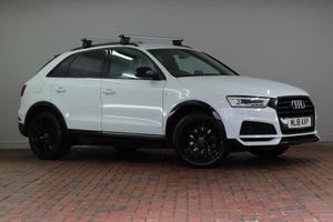 *Highly desirable Comfort & Sound Pack upgrade* This 2018 18 plate Q3 Black Edition is finished in premium Glacier White metallic with Audi's optional Comfort and Sound Pack upgrade (adds a premium 465 Watts Bose surround sound system with 14 high quality speakers, 10-channel amplifier and subwoofer, convenient rear view camera, heated front seats and hill hold assist), Audi?s Euro 6 compliant 1.4T FSI turbocharged petrol engine developing 150 bhp and 250Nm of torque, 7 speed S Tronic automatic transmission, beautifully sculptured seats trimmed in premium leather/alcantara upholstery (front seats are benefit from electrical lumbar support for added comfort), premium Black Edition styling pack (adds 19 inch alloy wheels, re-profiled front and rear bumpers, sculptured side skirts, premium high gloss black radiator grille with matt black insert and high gloss black window surrounds), automatic LED headlights with LED daytime running lights and LED rear lights - these provide fantastic all weather visibility, Audi Concert Media system (adds a beautiful 6.5 inch media display, satellite navigation, dab digital radio, bluetooth connectivity and a CD Player), leather trimmed S Line multifunction steering wheel, convenient electric powered tailgate, dual zone automatic climate control, cruise control, Audi Drive Select (adds configurable driving modes optimising performance, comfort or fuel efficiency at the touch of a button), electric front and rear windows, electrically adjustable...