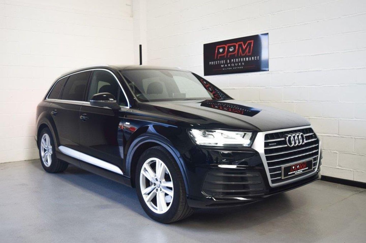 PPM are proud to present this beautiful Audi Q7 45 TDI Quattro S-Line, finished in black with black interior and privacy glass, it is complimented perfectly with aluminium window surrounds and silver wheels. Features include Air Suspension, 3rd row seating with electronic operation, Remote boot close, 4 Zone climate control, Bluetooth, Sat nav, Electric and heated front seats with memory package, Cruise control, Virtual cockpit, Multi function steering wheel etc Personalised walk around videos available on request.. 8.3" central fold-down colour display with high-resolution graphics,Audi connect safety and service (e-call),Audi drive select,Audi phone box with wireless charging,Audi smartphone interface,Audi virtual cockpit - 12.3" high-resolution LCD display with fully customisable instrument cluster,Colour driver's information system display,MMI - Multi Media Interface control system,MMI navigation plus with MMI touch,Mobile phone preparation with bluetooth interface,Power tailgate,Service interval indicator,Servotronic speed related PAS,Speed limiter,Start/Stop system with energy recuperation,Voice control system,Anti theft alarm,Anti-theft wheel bolts,Immobiliser,Keyless Go access/ignition system,Remote central locking,Adaptive air suspension,Interior light pack - Q7,3 point seatbelts on all seats,ABS+Electronic Brake force Distribution,Curtain airbags,Driver and passenger airbags,EDL + ASR,Electrically operated child locks on rear doors,Electromechanical parking brake,Electronic stability control,Front sid