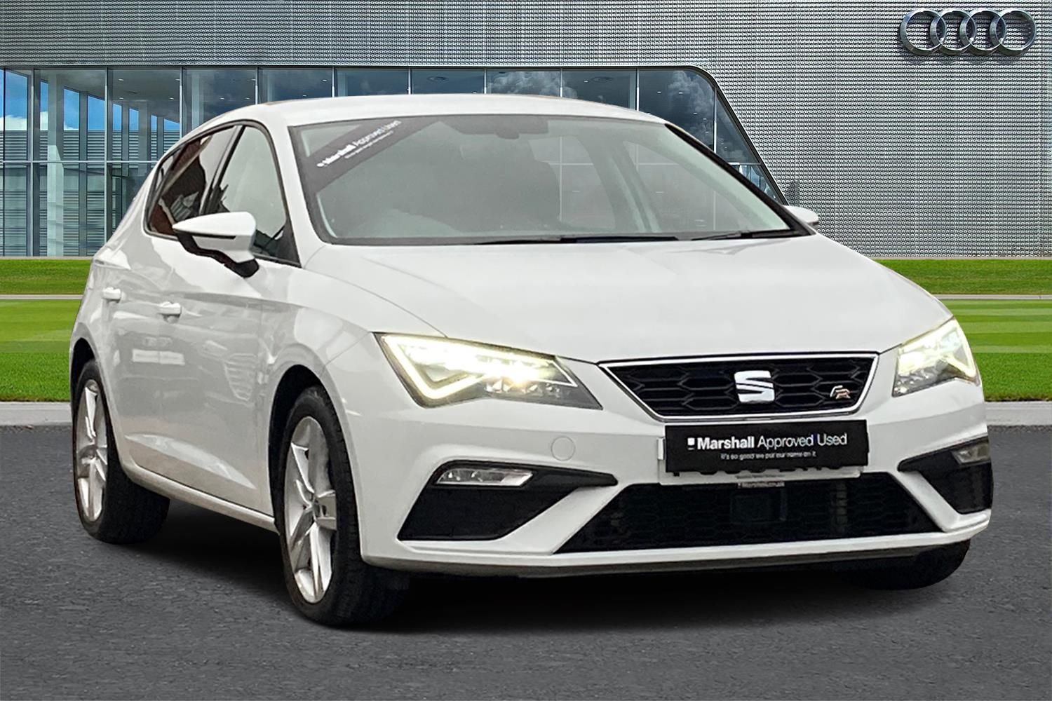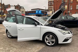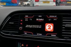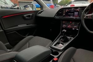 'Lights On' Reminder warning buzzer, 8" touch screen, Bluetooth Handsfree Phone Connection, Low fuel warning light, Outside temperature gauge, Rear parking sensors, Remote fuel flap release, SEAT Drive profile, SEAT logo boot release, Service interval indicator, Trip computer, Voice control system, XDS electronic differential lock, 2 USB ports, 2 USB sockets in rear, 2 X SD card slot, Auxiliary input socket, Bluetooth audio streaming, DAB Digital radio, Radio/CD + MP3, Steering wheel mounted audio/phone controls, Aluminium front door sills, Black grille with chrome surround, Body colour door handles, Body coloured bumpers, Body coloured door mirrors, Dark tinted rear windows, Electric adjustable/heated/folding door mirrors, Electric front/rear windows with one touch/auto up/down, Electric headlamp adjustment, High gloss black finish B and C pillars, LED daytime running lights, LED front fog lights, LED Headlights, LED indicators in door mirrors, LED number plate light, LED tail lights, Rear wash/wipe, Reverse activated kerb-view adjustment on passenger's door mirror, Twin exhaust pipes, 12v power point in centre console, 3 height adjustable rear headrests, 60/40 split folding rear seat, Active head restraints, Additional heating and ventilation outlet in rear of centre console, Boot net, Driver seat height adjust, Driver seat lumbar adjustment, Driver/passenger sunvisors with illuminated vanity mirrors, Dual zone climate control, Dust/pollen filter, Front adjustable head restraints, Front armrest with storage box, Front cupholders x 2, Front seatback pockets, Front sports seats, Front/rear floor mats, Height/reach adjust steering wheel, Illuminated boot, Illuminated door sills, Illuminated glovebox, Illuminated rear centre console, Instrument lighting with brightness control, Leather handbrake, Luggage tie-down hooks, Passenger seat height adjuster, Passenger seat lumbar adjust, Perforated leather steering wheel with red stitching + gear knob, Rear top tether child seat ISOFIX attachment, Storage boxes under front seats, 3 point seatbelts on all rear seats, ABS + traction control, Active pedestrian safety system, Child proof door locks, Collision mitigation braking system, Curtain airbags, Driver/Front Passenger airbags, Drivers knee airbag, Electronic parking brake with auto hold, ESP+EBA, Front assist including city emergency braking, Front seatbelt pretensioners, Front Seatbelt warning, Front side airbags, Hill hold control, Passenger airbag deactivation system, Tyre pressure monitoring system, 2 folding remote keys with window open/close function, Engine immobiliser, Locking wheel bolts, Remote central locking + deadlocks, Volumetric alarm with back up horn, Chrome interior trim