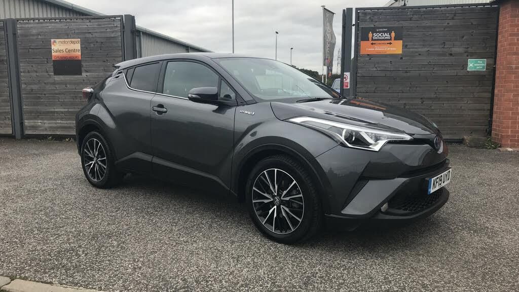 7" Coloured TFT multi informational display,8" touch screen,Adaptive cruise control,Adjustable speed limiter,Bluetooth connectivity,Electric power steering,Intelligent parking assist with front & rear parking sensors,Lane change assist and blind spot monitor,Lane departure alert with steering control,Lights on warning,Push button starter,Rear cross traffic alert,Reversing camera,Reversing camera display in audio screen,Road sign assist - RSA,Touch 2 Go navigation system,Trip computer,Voice recognition,Vehicle Stability Control (VSC),6 speakers,DAB Radio (Digital Audio Broadcasting),Steering wheel mounted controls,USB and Aux in connectors + 12V front outlet,Wi-fi connectivity,Auto high beam,Automatic headlight levelling,Automatic headlights,Automatic retractable door mirrors,Body colour door handles,Body colour door mirrors,Body coloured bumpers,Boot door release with push button,Door mirror puddle lights,Electric folding/heated door mirrors with integrated indicators,Electrochromatic rear view mirror,Follow me home headlights,Front and rear electric windows,Front fog lights,Hard tonneau cover,Heated rear windscreen,Intermittent wipe,LED daytime running lights,LED High mounted stop lamp,LED rear brake lights,LED rear lights,Projector and reflector halogen headlights,Rain sensitive windscreen wipers,Rear privacy glass,Rear spoiler,Rear wiper,Shark fin antenna,Trailer Sway Control,12V Accessory socket,3 spoke leather steering wheel with multimedia switches,Ambient lighting,Chrome interior door handles,Clean air filter,Driver + front passenger electric lumbar support,Driver and front passenger personal light,Driver and front passenger Whiplash Injury Lessening seats,Driver and passenger seatback pockets,Driver/passenger sunvisors and illuminated vanity mirrors,Dual zone automatic air conditioning,Folding rear seats,Front and rear door pockets,Front console box and front cupholders,Front cupholders x 2,Front head restraints,Gear shift indicator,Glovebox with internal light,Heated driver and front passenger seats,Humidifying Nanoe air purifier,Illuminated door sills,Illuminated entry system,Isofix seat fixing,Leather effect padded armrest on front console box,Leather gearshift,Leather upholstery,Light blue ambient lighting on front doors,Pollen filter,Rear headrests,Tilt/telescopic steering column,Parking pack - C-HR,3x3 point rear seatbelts,ABS+EBD+Brake assist,Electronic parking brake,ESP + traction control,Front and rear seatbelt reminder,Front passenger airbag on/off switch,Hill start assist control (HAC),Pre collision system with pedestrian detection,Rear child proof door locks,Road sign information display,Supplemental restraint system (SRS) airbags - 7 airbags including driver, front passenger, curtain, side and knee airbags,Toyota safety sense,Tyre pressure monitoring system,Immobiliser,Intrusion alarm,Motion sensor alarm,Remote central locking,Smart entry + Smart start,Tyre repair kit