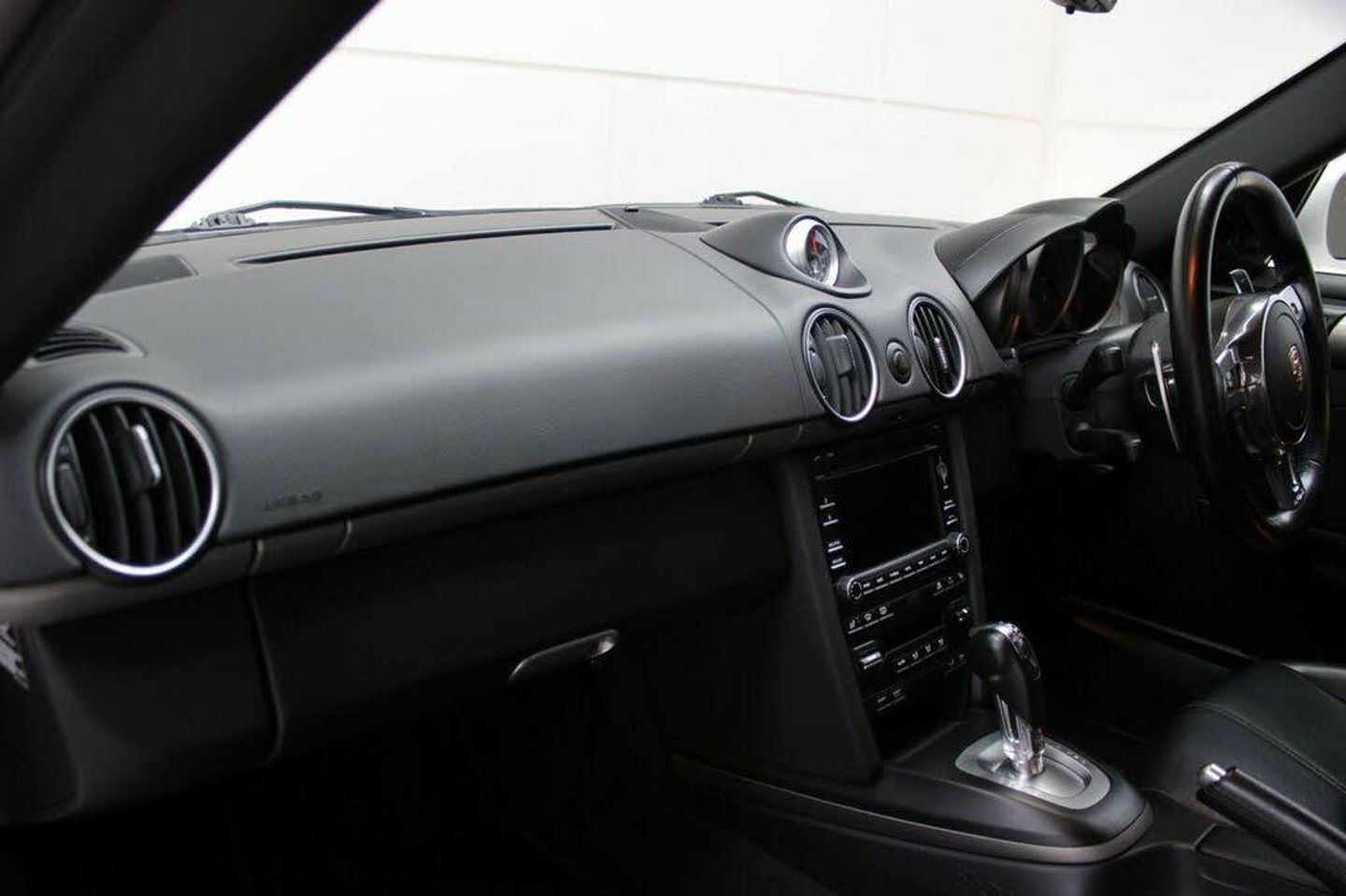Mobile telephone preparation, Cruise control, Rear park assist, Leather steering wheel with contrast stitching, Auto dimming interior/exterior mirrors+rain sensor, Sound package plus - Cayman, Auto climate control, Telephone module for PCM, Universal audio interface (in conjunction with PCM), Sport chrono package plus - Cayman (PDK), Part leather upholstery, PCM 3.0 + extended DVD navigation module, Heated seats, Bi-Xenon lighting system (with dynamic cornering function), 19" Turbo II alloy wheels, Electric engine and trunk lid release, Multi function display, On board computer, Variable PAS, Alarm system with interior protection, Anti-theft wheel bolts, Remote central locking including luggage compartment, Transponder engine immobiliser, Porsche stability management (PSM), 3 point inertia reel seatbelts, ABS, ASR + ABD, Black painted brake calipers, EDC, Emergency brake assist, Full size driver and passenger airbags, Hill start assist, Passive occupant restraint system, Seatbelt pretensioners, Side (thorax) airbags, CD-30 CD radio, 4 Lashing eyes in boot, Air recirculation control, Continuously variable dimming interior light, Electrically adjustable backrest, Footwell illumination, Front cupholders, Height/reach adjust steering wheel, Illuminated vanity mirrors, Integrated head restraints, Interior orientation lighting, Leather finish on door handles, Lockable glovebox, Luggage retainer on engine cover, Reading lights, Sports pedals, Storage compartment in rear centre console, Storage compartments in doors, Storage compartments in front section of centre console, 2 speed front wipers + intermittent wipe, Aspherical driver's exterior mirror, Automatically extending split rear spoiler, Body coloured bumpers, Coming home function, Electric windows one touch open/close, Electrically adjustable and heated door mirrors, Front fog lights, Front lip spoiler, Green tinted heat insulating glass, Heated rear windscreen, Heated washer nozzles, LED daytime running lights, Preparation for the roof transport system, Top tinted windscreen, Water repellent glass in front side windows, Aluminium interior trim, Sealing compound and compressor kit