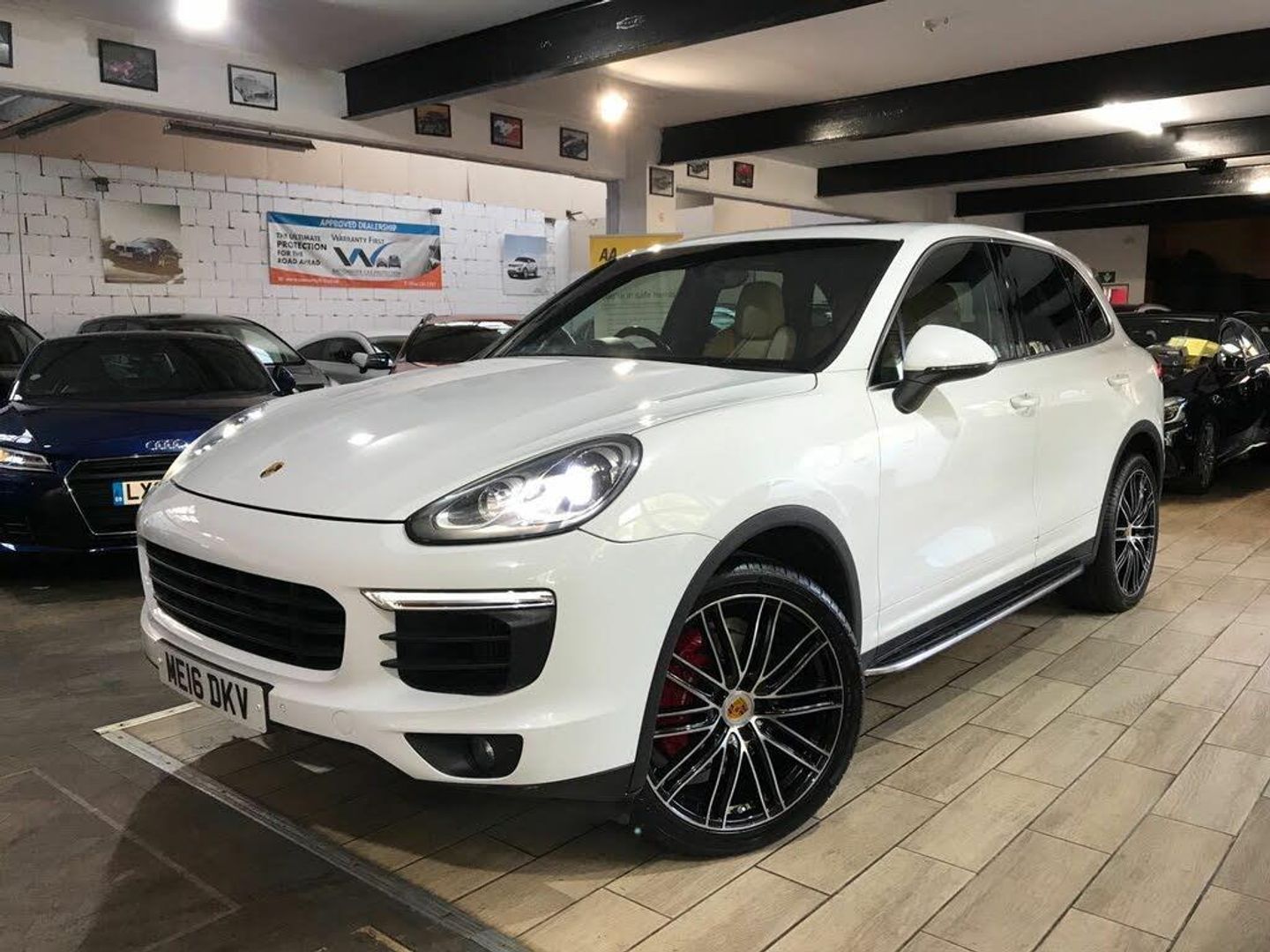 18in Alloy Wheels - Cayenne, 2 Integrated Cup Holders each at Front and Rear with Variable Diameter, 2 Single Tube Tailpipes on the Outside Left and Right, 2 USB Charging Connections for Mobile Devices at the Rear, 2-Way Headrests Except For Central Rear Seat, 3-Point Automatic Seat Belts with Pre-Tensioners - Front and Outer Rear Seats and Front Force Limiter - 3-Point Automatic Seat Belt on Central Rear Seat, 3rd Brake Light - LED - Integrated in Roof Spoiler, 4 Plug Sockets - 12V, 5 Round Instruments Integrated in Instrument Cluster, ABS - Anti-lock Brake System, Alarm System with Ultrasonic Interior Surveillance - Engine Immobiliser - Transponder System - Safe Lock System, Analogue and Digital Displays for Fuel Tank Level and Coolant Temperature, Auto-Hold Function, B-Pillar Clothes Hook on Driver and Passengers Side, Bi-Xenon Headlights, Bottle Holders in Door Panels - Front and Rear, Brake Calipers - Black, Bumper System Comprising High-Strength Cross Members and Two Deformation Elements, Centre Console Armrest - Fold-up and with Sliding Adjustment in Longitudinal Direction, Climate Control with Separate Temperature Settings for Driver and Front Passenger, Coasting Function, Comfort Seats - Front with 8-way Electrical Adjustment of Seat Height - Seat and Backrest Angle and Fore-aft Position, Cruise Control, Curtain Airbags for Cover Across the Entire Roof Frame and Side Glazing from the A-pillar to C-pillar, Daytime Driving Lights with Four LED Spotlights in Each Headlight, Diesel Logo on Front Left and Right Wings, Door Sill Guards in Stainless Steel with Model Designation at Front, Double Sun Visors for Driver and Front Passenger, Driving Light Assistant including Automatic Coming Home Lights, Electric Parking Brake, Electric Windows - Front and Rear, Electrically Adjustable Heated Exterior Mirrors - Electrically Retractable also by Remote Control - Aspherical on Drivers Side, Floor Mats, Front End with Integrated Air Intake, Front Fog Lights, Front Light Module with Position Lights and Direction Indicators in LED Light-Guide Technology, Front Wiper System with 2 Wiping Speeds and Intermittent Wipe including Rain Sensor and Heated Windscreen Washer Jets, Full Size Airbags for Driver and Front Passenger, Fully Galvanised - Integral Body-frame, Heated Rear Window with Auto-Off Function, ISOFIX Fastening System for Child Seats on Outer Rear Seats, Illuminated Vanity Mirrors in Sun Visors - Driver and Passenger Sides, Instrument Cluster with High-resolution 4.8in Colour Display - Service Reminder Indicator - Outside Temperature Indicator and Various Alarms, Interior Lighting Concept, Interior Package - Black High-Gloss Finish, LED Tail Lights with Adaptive Brake Lights, Manual Belt Deflector Height Adjustment for Driver and Front Passenger, Mobile Phone Preparation, Multi-Collision Brake, Multifunction Sports Steering Wheel with Shift Paddles - Steering Wheel Rim in Smooth-finish Leather, Non-Smoker Package, PTM - Porsche Traction Management, Park Assist - Front and Rear with Visual and Acoustic Warning, Particle-Pollen Filter with Active Carbon Filter, Passenger Airbag Deactivation Function for Mounting Child Seats including Display in Overhead Console, Porsche Car Connect with Remote Services and Porsche Vehicle Tracking System Plus PVTS Plus, Porsche Hill Control - PHC, Porsche Logo and Model Designation on Tailgate in Chrome Look, Power Dome on Bonnet, Power Steering, Powerlift Tailgate, Preparation for Trailer Hitch, Rear Seat System with Split-Folding Seat Bench 40-20-40 - Fold-Out Centre Armrest with 2 Cup Holders - Manual Fore-Aft Adjustment and Backrest Angle Adjustment, Rear Wiper with Intermittent Function and Washer Jet, Receptacles with Screw Threads for the Towing Lug found in the On-board Tool Kit, Remote Central Locking, Retractable - Flexible Luggage Compartment Cover in Removable Case, Roll-Over Sensors for Triggering the Curtain Airbags and Seat Belt Pre-Tensioners in the Event of Imminent Roll-Over, Roo
