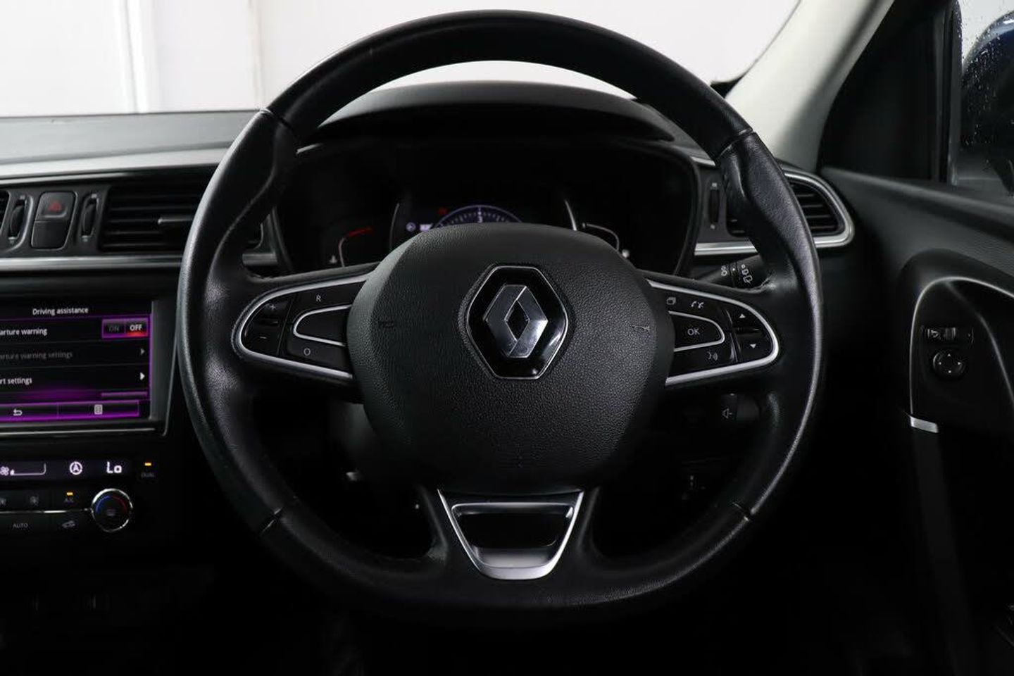 PAS,Trip computer,Rev counter,Low fuel level warning light,Door/boot open warning light,Cruise control + speed limiter,Exterior temperature gauge,Oil level gauge,Eco mode,Visio system - lane departure and high beam assist,Traffic sign recognition,Diesel particulate filter,Fingertip controls for audio system,4x35W DAB radio, Arkamys 3D sound with bluetooth and USB connection,Rear wiper,Roof rails,Body colour door handles,Front and rear electric windows,Day/night rear view mirror,Front and rear towing rings,Body coloured bumpers,Body coloured door mirrors,Front wipers with variable intermittent facility,Bodyside mouldings with chrome inserts,Heated rear windscreen,Integrated fuel filler cap,Chrome window surround,Electric adjustable/heated/folding door mirrors,Chrome exterior trim,Cornering front fog lights,Automatic headlights and windscreen wipers,LED daytime running lights,Extra tinted glass in rear windows and tailgate,Front centre armrest,Leather steering wheel,Height/reach adjust steering wheel,Rear courtesy lights,Air recirculation system,Rear passenger heating ducts,Illuminated boot,Driver's seat with lumbar adjustment,Pollen filter,3 height adjustable rear headrests,Height adjustable front headrests,Front courtesy lights,Sun visors with mirrors,Front footwell illumination,Isofix system on outer rear seats,Driver/passenger reading lights,Variable boot floor,Glovebox with light,Adjustable dashboard illumination,Dual zone automatic climate control,60/40 split folding rear seat,3 seat rear bench,12v power outlet - front,Traction control,Height adjustable front seatbelts + pretensioners,Three 3 point rear seatbelts,Front lateral airbags,ABS/EBD,Front and rear curtain airbags,Brake assist function,Passenger airbag deactivation system,Electronic parking brake,Hill start assist,Driver/passenger 2 stage auto adaptive airbags,Tyre pressure monitor,Rear seatbelt warning indicator,ESP with ASR and UCL (understeer control logical),Front seat belts warning,Remote central locking,Anti-drill door locks/ignition barrel,Deadlocks,RAID (Renault Anti-Intruder Device) with automatic door locking,Insurance Approved Immobiliser,Hands free Renault card,Insurance approved Cat 1 alarm system