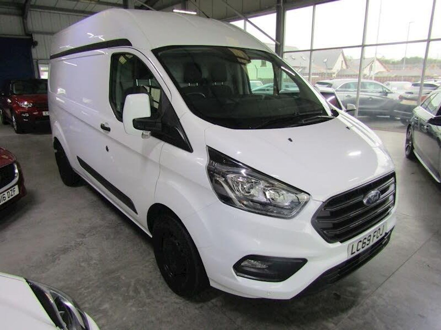 Easy fuel capless refuelling system, Embedded modem, Ford Eco mode, PAS, Selectable drive mode, Vehicle maintenance monitor, Audio controls mounted on steering wheel, Automatic lights and wipers, Body coloured door mirrors, Body coloured front bumper, Door open tyre carrier drop, Electric front windows with one touch facility for driver and front passenger, Emergency brake light flashing, Headlamp levelling, Intermittent front wash/wipe, Partialy body coloured rear bumpers, Passenger side sliding load door with track cover, Rear door edge warn reflectors, Rear mudflaps, Rear splash guards, Wide bodyside grey mouldings, 2 adjustable sunvisors, 2 Interior grab handles, Cloth upholstery, Driver and passenger sun visors, Front splash guards/Mud flaps, Header mounted courtesy lights - 2 map lights, Header mounted package tray, Height adjustable front headrests, Illuminated footwell, Lockable glove box, Map reading lights, Molded gear shift knob, Moulded cab floor liner, Partial molded headliner, Partial rubber inside floor cover, Passenger underseat storage box, Reach and rake adjustable steering column, Recirculation heater, Side rear door trim panel - Level 1, Tool kit, Washer tank level warning lamp, Dual note electric horn, Interior trim accent pack B- Transit custom, Less rear seat pack - Transit Custom, 3 point seatbelts for all seats, Drivers airbag, Height adjustable drivers seatbelt mount, Passenger seatbelt height adj, Seatbelt remainder for driver and passenger, Auto locking on drive-away, Auto relocking, Power door dead locks, Remote central locking, Speed dependent power lock group, 2 12v sockets, 80 litre fuel tank, ABS, Auto start/stop system, Diesel particulate filter, ESP, Extra heavy duty alternator, Mechanical parking brake, Roll stability control, Side wind mitigation, Standard duty suspension, Full wheelcovers