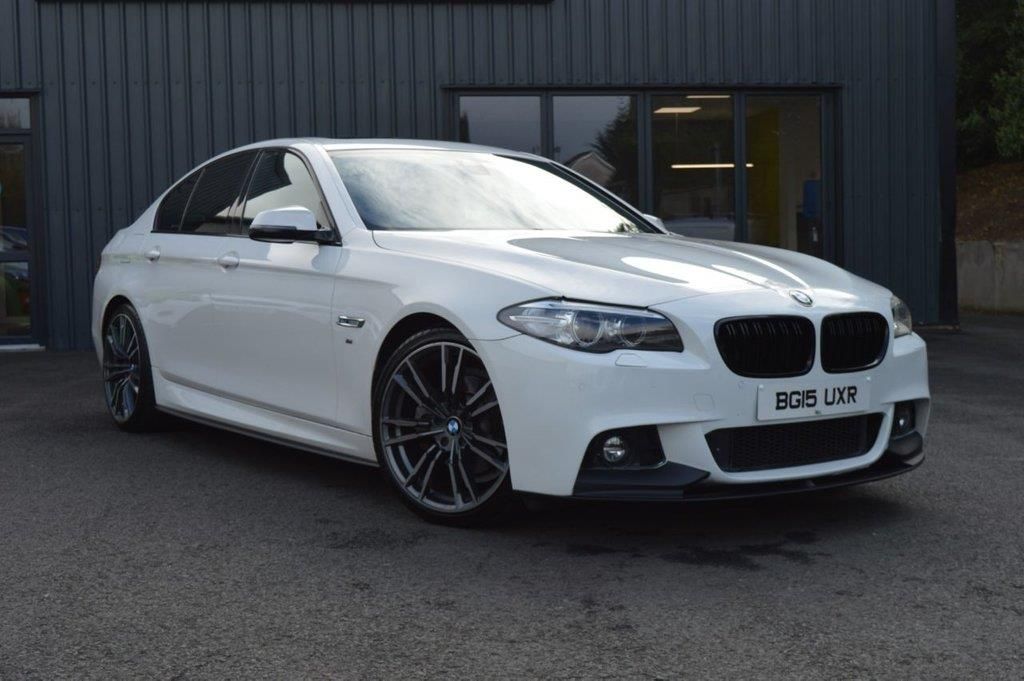 2015 BMW 520d M Spot with a warranted 99k miles complete with a warranted 99k miles form new with a comprehensive service history . Finished in stunning unmarked Apline white paintwork and fitted this week with a full M performance kit comprising of front and rear diffusers skirt extensions and kidney grilles. This car comes with a massive factory spec list comprising of adaptive Bi Xenon headlights front fogs electric glass sunroof privacy glass rare heated alcantara sports seats leather multifunction steering wheel with F1 style paddleshift controls widescreen navigation unit digital climate control air con cruise control DAB radio bluetooth the list is endless. Pictured on optional new wheel & tyre package £795 Just call one of our sales team for full spec and more info on our flexible finance and warranty options with nothing to pay for over two months on selected deals Car is £13995 07719558035 02877742043 www.ilexcarsales.co.uk . 12V socket in rear centre console,3 Spoke M sports leather steering wheel,ABS/EBD,Adaptive headlights,Advanced Head Protection System front + rear,Aluminium brake calipers,Anthracite Velour floor mats,Auto dimming rear view mirror,Automatic Stability Control (ASC),Auxiliary point for auxiliary devices,Bluetooth audio streaming,BMW emergency call,BMW professional radio/CD/MP3,BMW Teleservices,Body coloured bumpers,Body coloured door handles,Body coloured door mirrors,Body coloured side sills,CBC - (Cornering brake control),Check control system,Chrome kidney grille with black vertical slats,Crash Sensor - activates hazard/interior lighting + unlocks doors,DAB Digital radio,Diesel particulate filter,Driver/front passenger side airbags,Driver/Passenger airbags (Impact dependent),DSC+,Dynamic brake control,Dynamic Traction Control - DTC,Electric + heated aspheric door mirrors,Electric front and rear windows with fingertip open/close + anti-trap all round,Electromechanical parking brake,Engine immobiliser,Fogging s