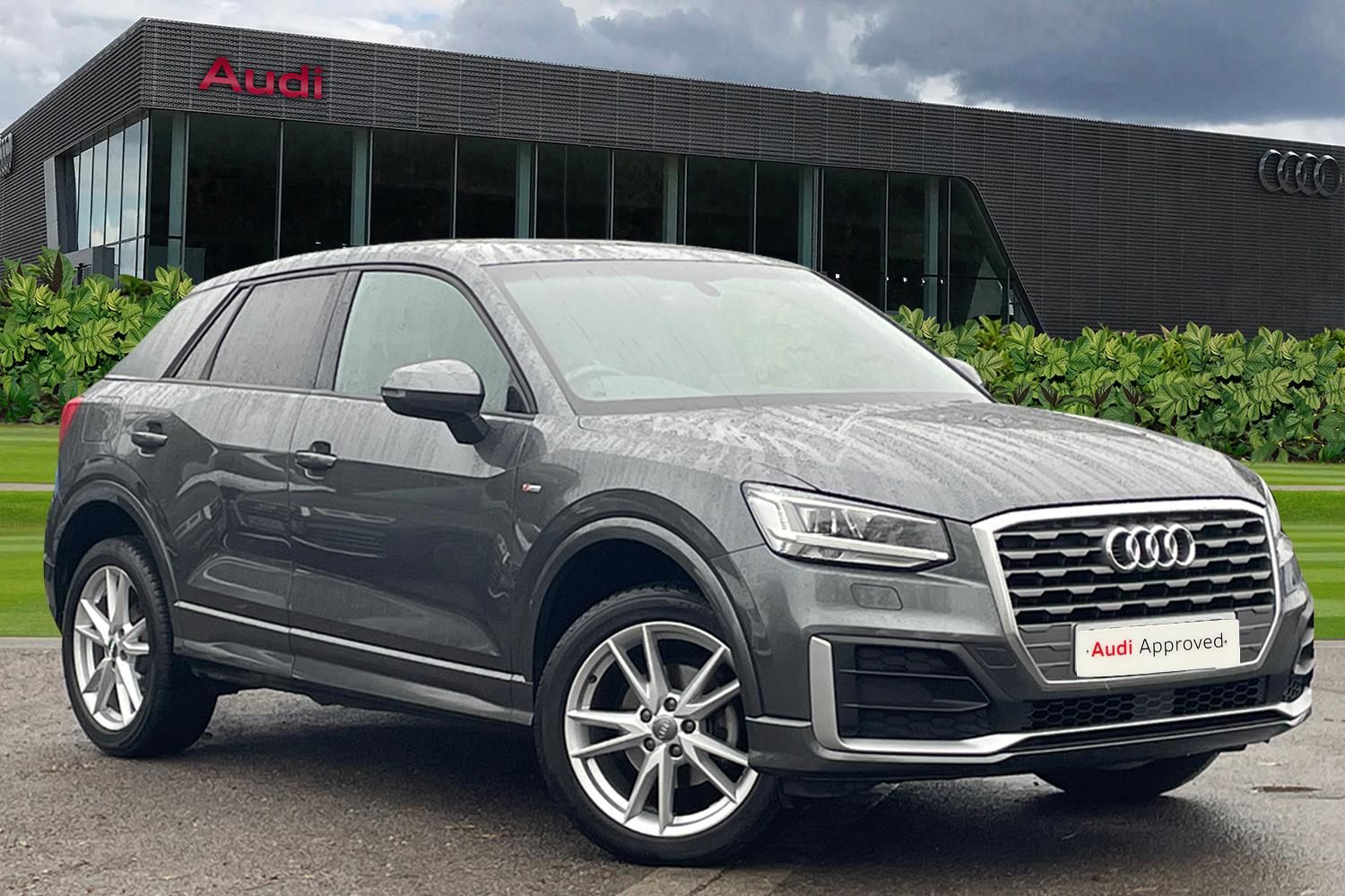 2 services included³ if you buy with a Solutions Personal Contract plan at 10.9% APR Representative², plus an additional £250 contribution towards your finance deposit for cars up to 3 years old. LED Interior Lighting Pack Advanced, LED headlights, LED Interior Lighting Pack Advanced, 18" x 7.0J '5-spoke Y' design alloy wheels with 215/50 R18 tyres, C-pillar blade in Titanium grey, matt, Illuminated inlays, Format design, LED headlights, Automatic headlight adjustment, LED rear lights and dynamic rear indicators, S tronic, Hill Hold Assist, Audi Smartphone Interface, 3-spoke leather multi-function steering wheel (with paddles for automatic transmissions) - height and reach adjustable, Audi Drive Select, Power-operated tailgate, MMI Navigation, Rear parking sensors, LED daytime running lights, Cruise control with speed limiter, Driver's Information System, Bluetooth interface,Audi drive select, Audi smartphone interface, Automatic start/stop system with recuperation, Bluetooth interface includes bluetooth audio streaming, Cruise control, MMI - Multi Media Interface control system, MMI SD card integrated nav with 3D map display, dynamic route guidance with TMC, MMI search, natural voice recognition and myAudi special destinations, Power operated tailgate, Progressive steering, Service interval indicator, Dynamic suspension, 2 x SDXC card reader, Audi music interface - apple iPod, apple iPhone, USB storage media, compatible MP3 players, 2 x USB charging points and 1 x Aux-in, CD Drive, DAB digital radio and AM/FM radio, MMI radio plus with 7" colour MMI screen and MMI controller, Black window trims, Bumper in full body colour paint finish, Chrome exhaust tailpipe, Electrically adjustable and heated door mirrors with integrated LED side indicators, Front and rear electric windows, Front underbody guard and rear diffuser trim in selenite silver, Front windscreen with grey tinted sunband, Headlight washers, Interior mirror, LED headlights with LED rear lights + dynamic rear indicators, LED indicator lights, Manual folding door mirrors, Rain and light sensors, Rear wiper, S Line badges on the front wings, S Line body styling - front and rear bumpers, side skirts, radiator grille, rear diffuser insert and front air intakes, 60/40 split folding rear seat bench, Black cloth headlining, Electronically operated child locks, Floor mats with contrast stitching, Front centre armrest, Front headrests, Front sport seats with S embossed logo, Height/reach adjust steering wheel, Illuminated door sill trims with S logo, ISOFIX child seat mounting for front passenger with airbag deactivation and outer rear seat including top tether attachment point for outer rear seats, Manual seat adjustment including seat height adjustment for front seats, Stainless steel pedals, Storage compartments - Glovebox, cupholder compartment in centre console, storage compartment in rear centre console, front and rear door pockets, Three rear headrests, Non smoking pack - Q2, 3x3 point rear seatbelts, 6 airbags - Front, curtain and front side airbags, Electromechanical parking brake, Electronic stabilisation control including ABS, ASR and EDL, Extended and proactive pedestrian protection, Hill hold assist, Multi collision brake assist, Pre-sense front with pedestrian recognition, Seatbelt monitoring, Tyre pressure warning light, Warning triangle and first aid kit, Anti theft alarm, Anti theft wheel bolts, Central locking system with remote control key, Aluminium interior element