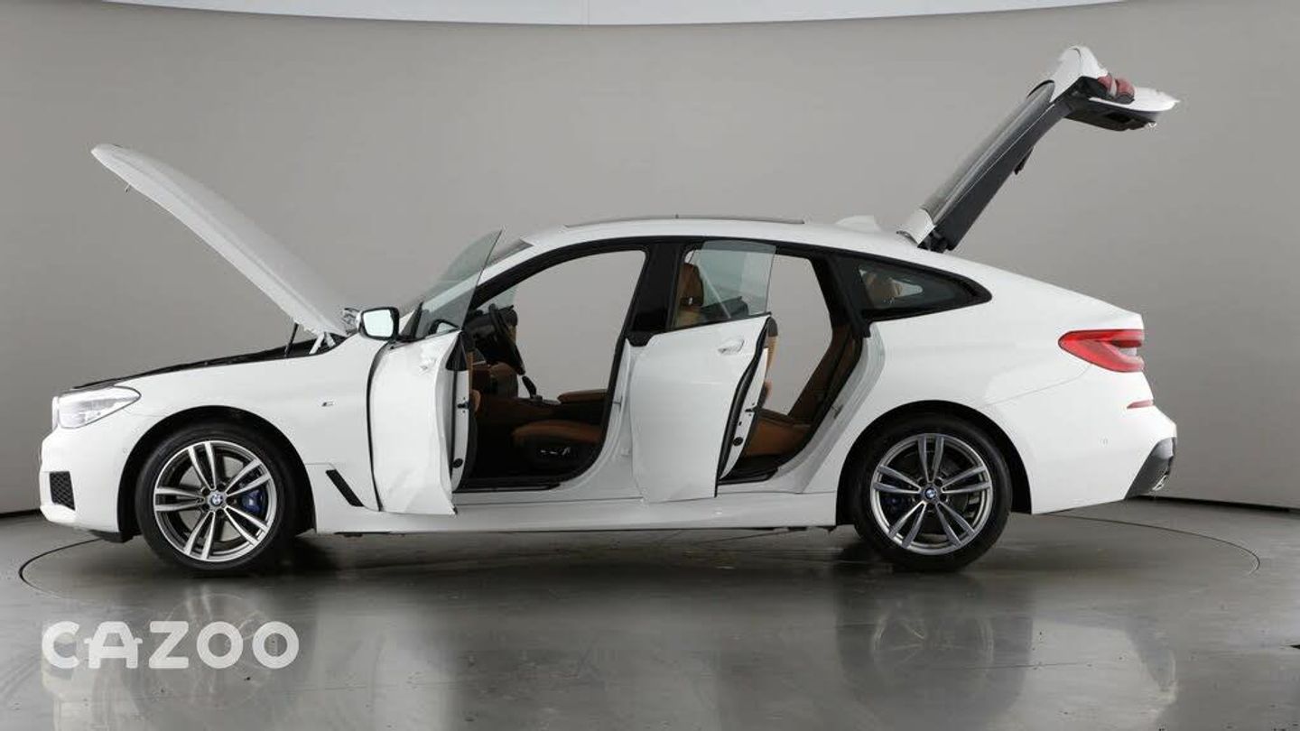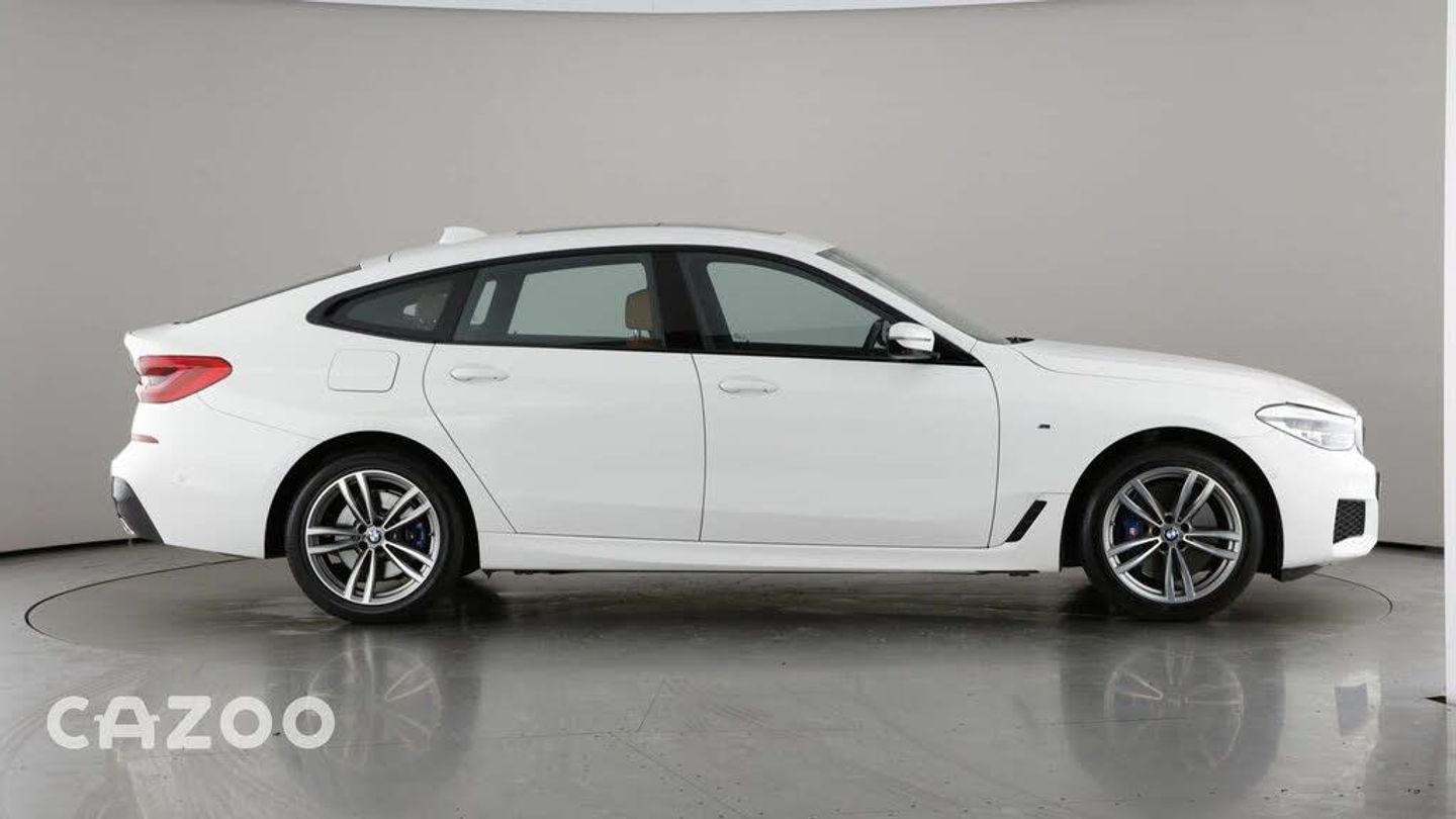 This White BMW 6 Series Gran Turismo features Professional Satellite Navigation, Sat Nav, Full Leather Seats, Leather Seats, Panoramic Roof, Sunroof, Heated Front Seats, Heated Seats, Adaptive Cruise Control, Cruise Control, Parking Camera, Front And Rear Parking Sensors, Rear Parking Sensors, Parking Sensors, Virtual Cockpit Dash, Bluetooth, Active Cruise Control, DAB Radio, Xenon Headlights, Keyless Start, Keyless Entry, Privacy Glass, Alloys, Apple Car Play, Driver Seat Memory, Head Up Display, Lane Departure Warning, DVD Player, Electric Front Seats, Paddle Shift, Climate Control, Start Stop, CD Player, Aircon. The car has 5 seats, 5 doors, with a mileage of 22980 miles. It was registered in 2019, has a Petrol fuel system and a Automatic gearbox. Buy entirely online and have your car delivered to your door or collect it from one of our Customer Centres at a time to suit you. Every car includes a free 90-day warranty and RAC roadside assistance as well as a 7-Day Money Back Guarantee to make sure it suits your lifestyle. We also offer paint protection, extended warranty and car servicing for extra peace of mind.