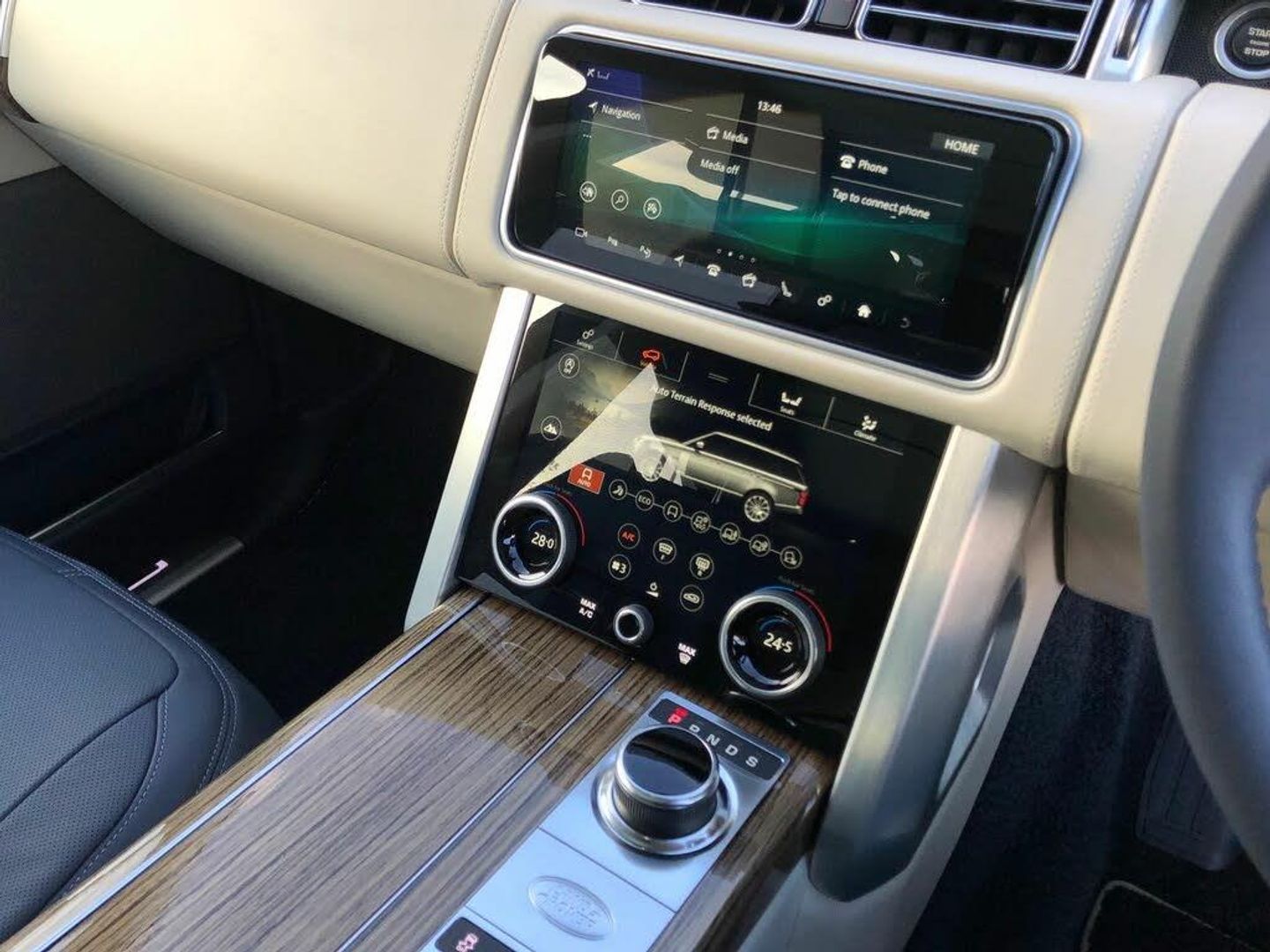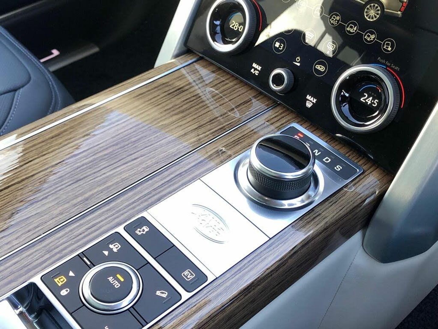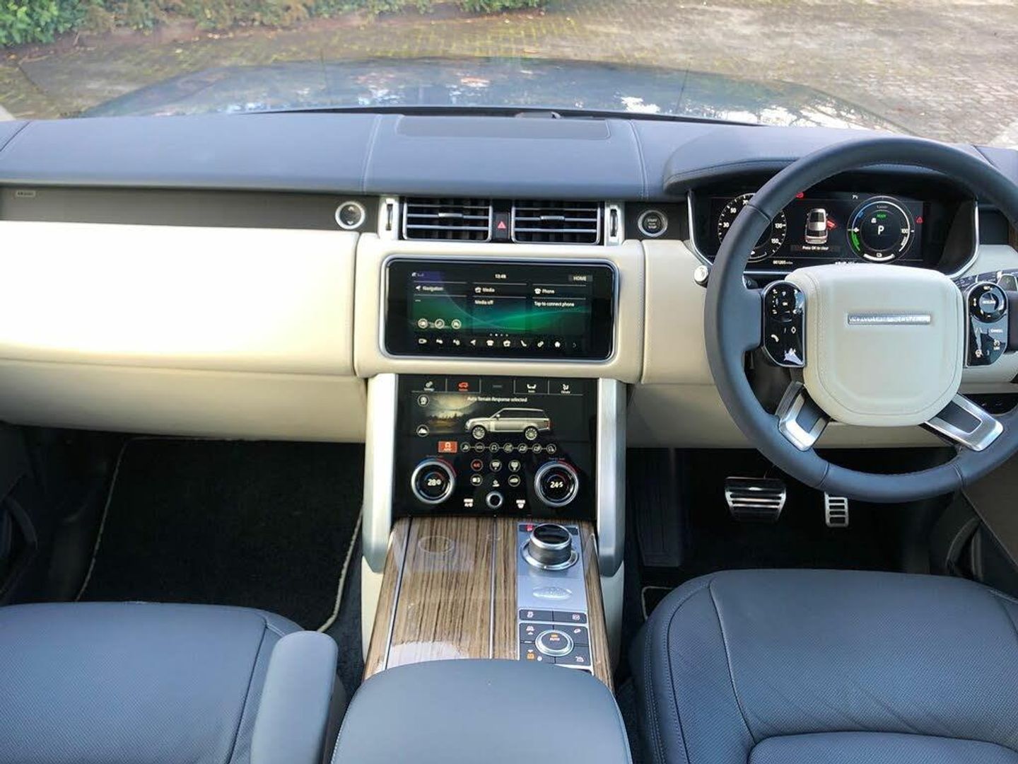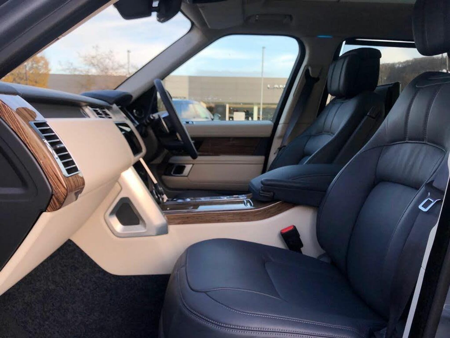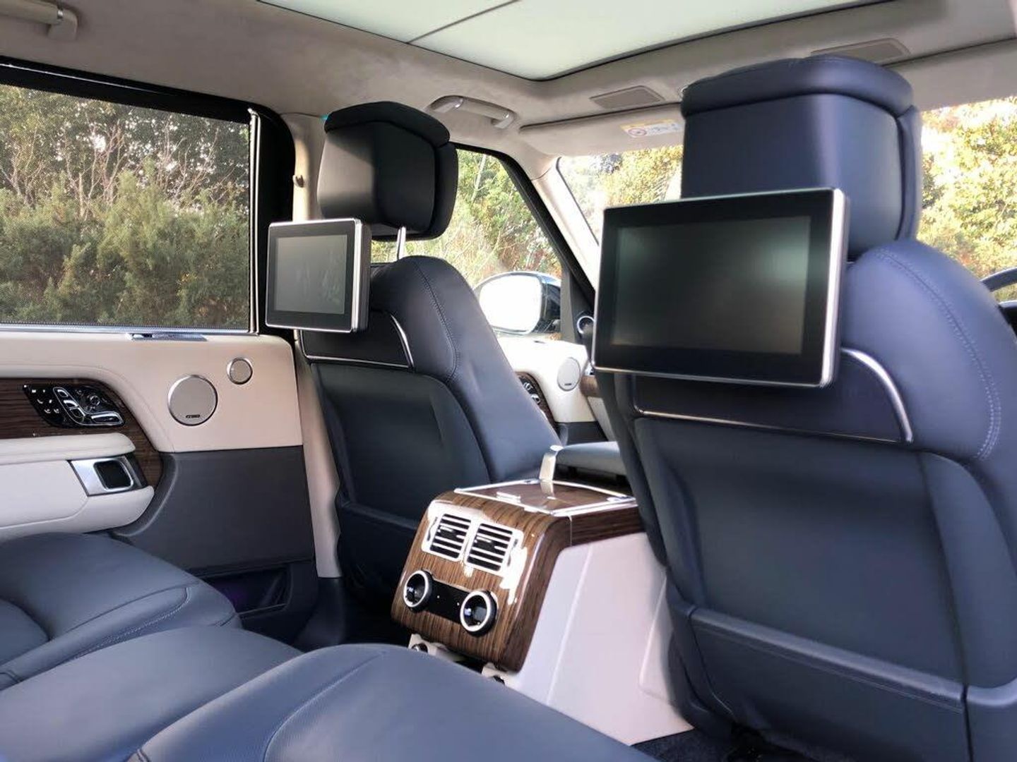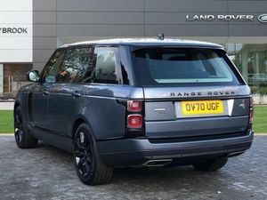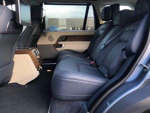 Leather, Navy/Ivory, Ex Land Rover Internal Fleet, InControl Secure Tracker Pro (subscription required), Meridian(TM) Signature Sound System, Pixel-laser LED headlights with signature DRL, 'Kalahari' veneer, 21'' Alloys - 9 spoke 'Style 9001' Gloss Black finish, 24-way Heated and Cooled 'Hot-Stone' Massage front seats with Executive Class Comfort rear seats, Advanced Tow Assist, Black brake calipers, Fixed panoramic roof, Garage Door Opener (Homelink(R)), Leather steering wheel, Suedecloth headlining, 10 inch Rear Seat Entertainment, 10 inch Touch Pro, All-Wheel Drive (AWD), Perforated semi-aniline leather seats, Electronic air suspension, Active Rear Locking Differential, Bright metal pedals, First aid kit, Adaptive Dynamics, Android Auto(TM), Auto-dimming interior rear view mirror, Body-coloured roof, Dynamic Stability Control (DSC), Emergency Braking, Hill Descent Control (HDC), Hill Launch Assist (HLA), Premium alarm, SOS/Assistance Call, Touch-screen navigation system, Vehicle protection (Cat. 1), Voice recognition system, 8-speed automatic transmission, Convex driver and passenger door mirrors, Digital Audio Broadcast (DAB) radio, Electric seat adjustment + memory - driver & passenger, External Sound Enhancement, InControl Pro Navigation, InControl Protect, Intrusion sensor, LED tail lamps, Locking wheel nuts, Navigation system - Region 1 (Europe), Rotary-shift gear knob - Leather, Satin Chrome gearshift paddles, Tyre Pressure Monitoring System (TPMS), Black/body-colour door handles, Bodyside cladding - Black, Daytime running lights, Double locking, Front centre console cooler compartment, Fuel filler flap (central locking), IP insert (chrome), Leather console, Leather IP facia, Loadspace cover, Premium floor carpets, Seat type - standard, Tailgate finisher - 'Narvik Black', Terrain Response, Twin-speed transfer box (high/low range)