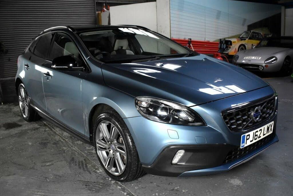 12V socket in front + rear tunnel console, 5 headrests, 5 x 3 point seatbelts, 60/40 split folding rear seat, ABS+EBA, Active bi-xenon headlamps with headlamp cleaning system, Adaptive brake lights, Alloy Wheels - 18Inch Ixion II, Anti-theft alarm including immobiliser/volume sensor + level sensor, Auto dimming rear view mirror, Automatic folding door mirrors with ground lights, Black exterior door handles, BLIS (Blind spot information system), Bluetooth hands free telephone kit, Body coloured bumpers, Chronograph instrument dials, City safety braking system, Deadlocking system, Drivers knee airbag, DSTC-Dynamic Stability and Traction Control, Dual exhaust pipes, Dual stage driver's airbag, Dual stage passenger airbag, Dynamic chassis, Easy fuel capless refuelling system, Electric drivers seat with memory + mirrors memory, Electrically adjustable and heated door mirrors, Electronic climate control (ECC), Fixed panoramic glass sunroof, Floor mats, Footwell lights, Forward folding front passenger seat, Front and rear electric windows, Front cupholders, Front door step lamp, Front reading lights, Front storage box, Front/rear seatbelt pre-tensioners, Gloss black door mirrors, Headlamp levelling, Heated rear seats, Height adjustable drivers seat with lumbar support, Height/reach adjustable steering column, Hill descent control, Home safe and approach lighting, Honeycomb front grille, Illuminated driver/passenger vanity mirrors, Inflatable curtain, Information centre, Intelligent driver information system (IDIS), Isofix attachments on rear seats, Key integrated remote control central locking, Keyless Start, Lane departure warning with driver alert control, Leather gear knob, Leather steering wheel with chrome inserts, Leather upholstery, LED daytime running lights, Lockable cooled glovebox, Locking wheel nuts, Metallic - Biarritz blue, PAS, Passenger lumbar support, Pedestrian airbag system, Pollen filter, Rain sensor windscreen wipers, Rear armrest with cupholder, Rear park assist, Rear reading lights, Rear seatbelt warning indicator, Rear wiper, Roof rails, Roof spoiler, Satellite navigation system with TMC, Service interval indicator, Side marker illumination, SIPS (Side Impact Protection System), SIPS airbags, Sliding front centre armrest, Sports Chassis, Steering wheel audio controls, Theatre dimming interior lights, Ticket holder, Warning triangle, WHIPS - Whiplash Protection System, Winter pack - V40 - SE Lux/R Design Lux/Cross Country Lux