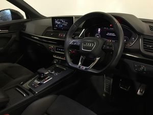 Audi Connect Infotainment Services, Tyres 255/45 R20, Audi Connect (36-month subscription), MMI Navigation Plus with MMI Touch, Rear-view camera, Alcantara "Frequenz"/leather combination, "S line" exterior package, 20" x 8.0J '5-arm rotor' design gloss anthracite black, diamond cut finish Audi Sport alloy wheels with 255/45 R20 tyres, LED headlights, Pedals in stainless steel, Illuminated door sill trims with S logo, Privacy glass with acoustic glazing for front windows, Technology Pack, Black edition for Great Britain, S line interior package, Control Code, S line logo, Reinforced bumpers, Flat-bottomed 3-spoke leather high multi-function steering wheel, Black roof rails, Black Styling Pack, 20" x 8.0J '5-arm rotor' design gloss anthracite black, diamond cut finish Audi Sport alloy wheels, S line roof edge spoiler, Piano finish, black, Black door mirror housing, Black cloth headlining, MMI Navigation Plus with MMI Touch, High beam assist, LED headlights, LED rear combination lamps with dynamic turn signal, Audi Virtual Cockpit, Audi Phone Box with wireless charging