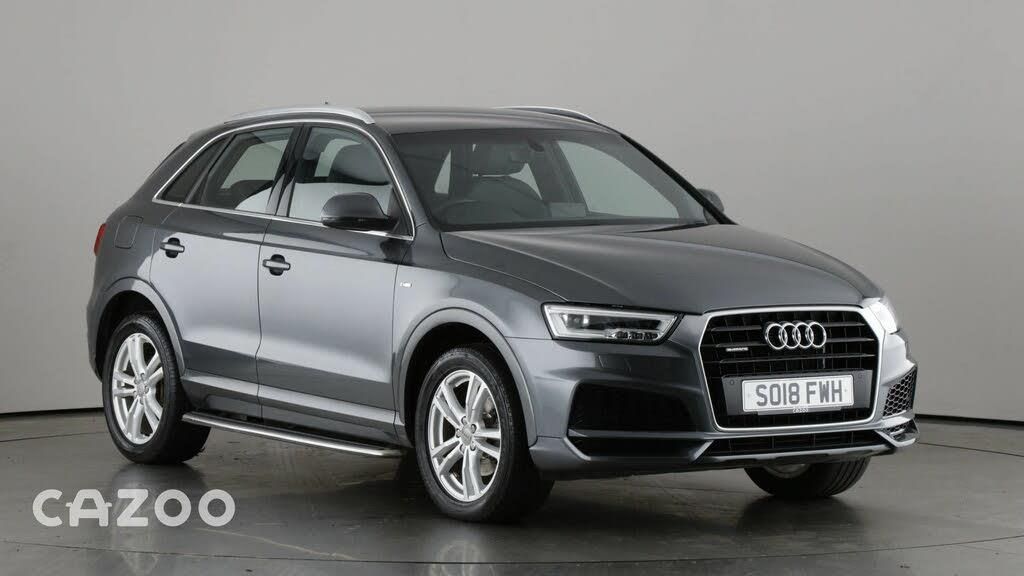 This Grey Audi Q3 features Sat Nav, Leather Seats, Part Leather Seats, Cruise Control, Front And Rear Parking Sensors, Rear Parking Sensors, Parking Sensors, Bluetooth, DAB Radio, Alloys, 18Inch Alloy Wheels, Climate Control, Metallic Paint, Start Stop, CD Player, Aircon. The car has 5 seats, 5 doors, with a mileage of 15885 miles. It was registered in 2018, has a Diesel fuel system and a Manual gearbox. Buy entirely online and have your car delivered to your door or collect it from one of our Customer Centres at a time to suit you. Every car includes a free 90-day warranty and RAC roadside assistance as well as a 7-Day Money Back Guarantee to make sure it suits your lifestyle. We also offer paint protection, extended warranty and car servicing for extra peace of mind.