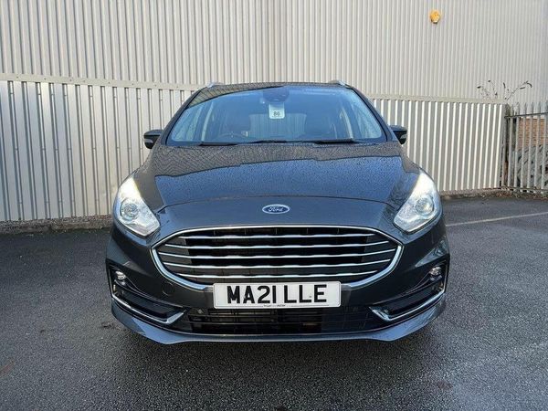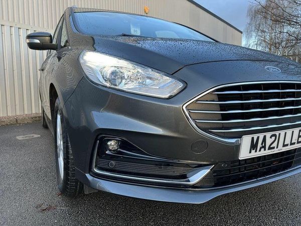 'Ford Power' starter button, 10.1" semi digital cluster, Easy fuel capless refuelling system, eCall emergency call system, Ford pass connect embedded modem, Front and rear parking sensors, Hydraulic PAS, Lane keeping aid - Driver impairment monitor, active steering with lane departure warning, Lights on warning, Outside temperature display, Traffic sign recognition, Trip computer, Auxiliary input socket, Auto dimming rear view mirror, Auto high beam assist, Automatic headlights, Automatic wipers with variable sensitivity adjustment, Body colour bumpers, Body colour door mirrors, Chrome trim to lower side windows, Dual exhaust pipes, Electric front and rear windows + one touch + global open/closing, Front fog lights, Halogen headlight with cornering lights, LED daytime running lights, LED rear lights, LED third brake light, Lower front grille with chrome surround, Power folding and heated door mirrors, Quickclear heated windscreen, Rain sensor, Rear privacy glass - dark glass to rear windows, Rear side wing doors, Silver roof rails, 2 height adjustable headrests - 3rd row, 230V power outlet in centre console, 2nd row reading lights, 3 height adjustable headrests - 2nd row, 3 individual fold flat 2nd row seats, 3rd row rear seats with manual fold flat, slide/recline and manual easy entry, Ambient interior lighting (excludes 2nd row footwell), Driver/passenger sunvisors with illuminated vanity mirrors + covers, Dual zone air conditioning, Floor mats in all three rows, Front door scuff plates, Front headrests, Front seat armrests, Front seat storage pockets, Front seatback tables, Front sports seats, ISOFIX attachments for child seats in 2nd row, Leather gear knob, Leather trimmed steering wheel, Manual adjustable front seats + lumbar support, Overhead console with child observation mirror, Pollen filter, Reach + rake adjustable steering column, Rear cupholders, Single passenger seat, Steering wheel audio controls, Sunglasses storage, Immobiliser, Keyless entry, Locking wheel nuts, MyKey system, Remote control central locking, Thatcham Cat.1 alarm