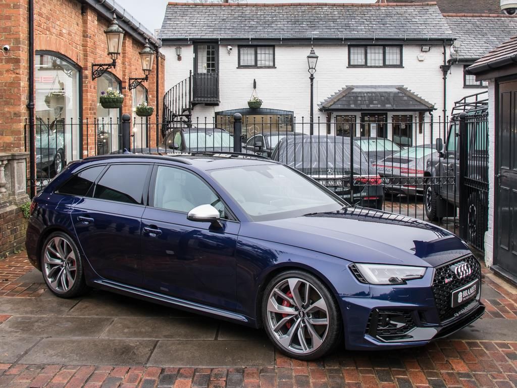 A highly capable motorcar specified to a very high standard. Our new arrival is this super smart Navarra Blue Metallic Audi RS4 Avant, with a Lunar Silver and Stone Grey Fine Leather interior. This example benefits from a full Audi Service History and comes equipped with a Sports Exhaust, Panoramic Roof, Bang & Olufsen Sound System and Sports Suspension to name just a few. Sold with a comprehensive 12-month warranty.