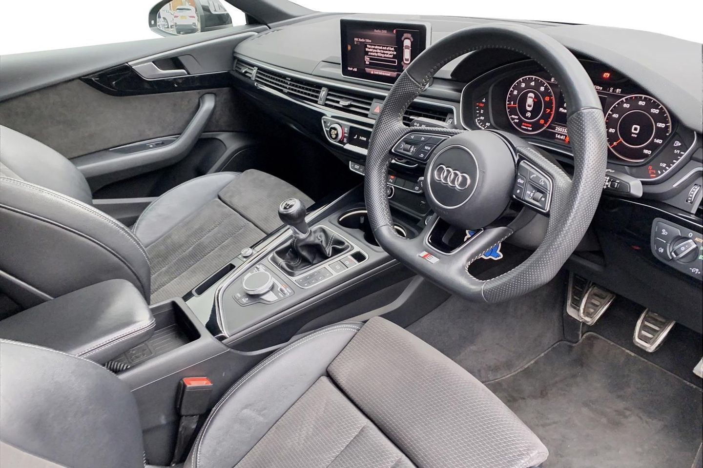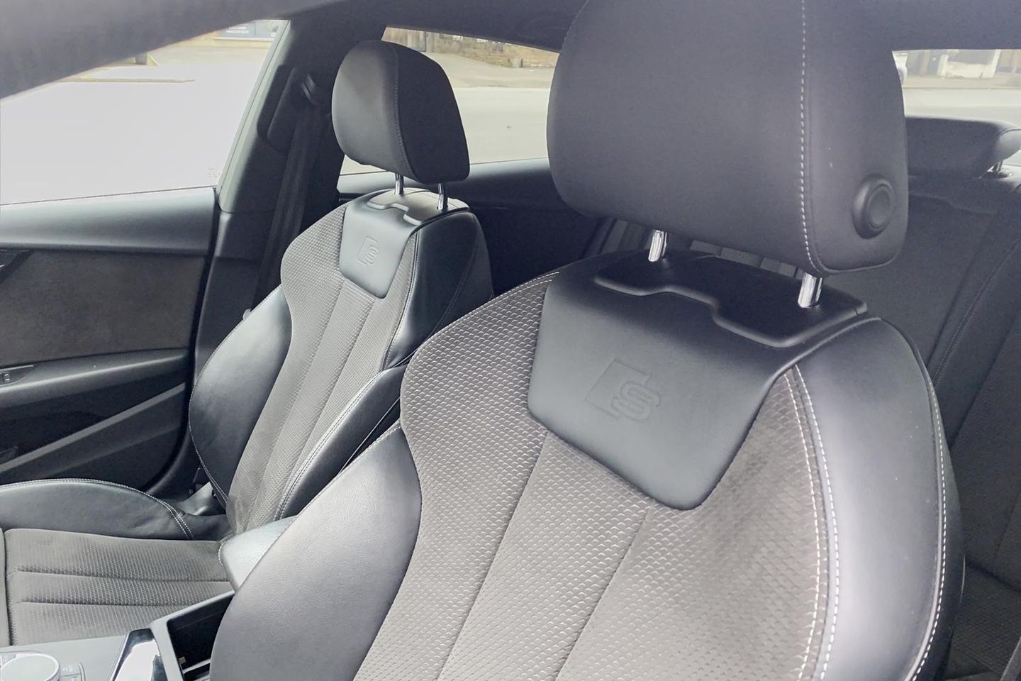 7" Colour driver information system, Audi connect, Audi drive select, Audi parking system plus with front and rear sensors, Audi smartphone interface, Automatic start-stop system with coasting functionality and efficiency programme, Bluetooth interface, Electro-mechanical power steering, MMI Navigation, Power tailgate, Service interval indicator, Voice control system, CD player, DAB Digital radio, Two SDXC card slots, Air inlets in titanium black with matt aluminium inlay, Auto dimming rear view mirror, Body colour bumpers, Chrome plated exhaust pipe, Electric adjustable heated door mirrors, Electric front windows, Front fog lights, High beam assistant, High gloss black door mirrors, Rain and light sensors, Rear diffuser in Twilight grey matt with honeycomb grille, S Line body styling, S line sill plates, S style high gloss black rear spoiler, Side and rear windows privacy glass, Titanium black frame and radiator grille, Titanium black front and rear air intakes, Titanium black window surround, Windscreen with acoustic glazing, 2 x USB charging port with aux input socket, 3 spoke flat bottom high multi-function leather steering wheel, 40/20/40 split folding 3 seater rear bench seat, Adjustable steering column, Black headlining, Black perforated leather gearknob, Centre console with cupholders, Contrast stitching on seats, steering wheel and gear lever gaiter, Deluxe 3 zone electronic climate control, Front centre armrest, Front head restraints, Front/rear floor mats, Illuminated door sills, ISOFIX child seat mounting and top tether, Jack and tool kit, Luggage compartment mat, Rear headrests, S embossed logo on front sport seats, Stainless steel pedals and foot rest, Non Smokers pack, 3x3 point rear seatbelts, 6 airbags - Driver, front passenger, curtain and side airbags, Electromechanical parking brake, Electronic Stabilisation Control (ESC) including ABS, ASR and EDL, Front passenger airbag deactivation, Height adjustable front seatbelts, Hill hold function, Multi-Collision braking, Pop-up bonnet for pedestrian protection, Pre sense city, Seatbelt monitoring, Tyre pressure warning, Variable restraint system, Warning triangle and first aid kit, Anti theft alarm system, Anti theft wheel bolts, Immobiliser, Keyless Go, Remote central locking, Piano black finish inlay, 20" 5 arm rotor alloy design wheels with matt titanium finish, Tyre repair kit