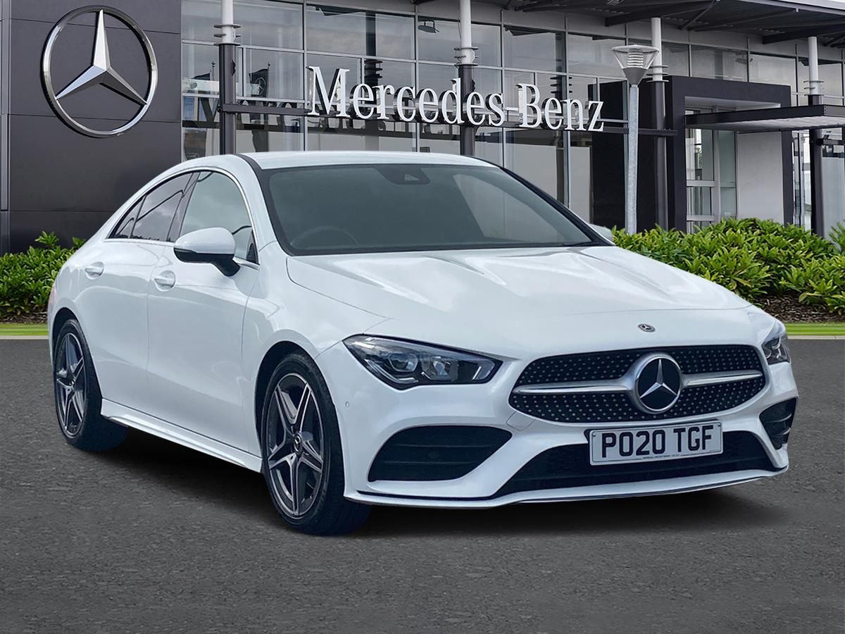 10.25 inch touchscreen media display, 7 inch Instrument display with digital cockpit, Active lane keeping assist, Attention assist - Monitors steering behaviour and long journey fatigue, Cruise control with limiter, Direct steer system with speed sensitive power steering, Dual bluetooth interfaces, DYNAMIC SELECT with a choice of driving modes (ECO, Comfort, Sport, Sport+ and Individual), ECO start/stop function, Fluid level warning indicator for fuel, oil, coolant and washer fluid, Hard-disk navigation, Hey Mercedes Voice activation, Lamp failure indicator, MBUX multimedia system with DAB digital radio and touchpad including satellite navigation, Mercedes me connect including emergency call system, accident recovery, breakdown management and maintenance, Outside temperature gauge, Owners manual and service booklet in English, Pre-installation for Vehicle Monitoring, Pre-installation for Vehicle Setup, Pre-installation of private car share, Preinstallation for Mercedes Benz link, Radio aerial integrated into front and rear windshields, Service indicator (ASSYST), Smartphone integration with Apple CarPlay and Android auto, Speed limit assist, Trip computer in multifunction display with current consumption indicator, Wireless charging, 7G-DCT 7 speed automatic transmission, Lowered comfort suspension, Rear axle multi-link, Sporty engine sound system, DAB digital radio tuner, Mercedes Benz sound system (100 W) with 6 speakers, USB (type C) ports (2) in stowage compartment and 1 in front of centre console, Adaptive brake lights, AMG body styling with AMG front apron and rear apron and visible exhaust tailpipe in chrome trim elements, AMG bodystyling side skirts, Body colour bumpers, Body colour door handles, Chrome beltline strips, Diamond radiator grille pins in chrome with silver painted louvres and chrome insert, Electric windows, Electrically adjustable and heated door mirrors with integrated LED indicators, Exhaust system with 2 Visible tailpipe trim elements and rear apron with trim in chrome, Headlamp assist automatic headlamp activation, Heated glass rear windscreen + timer control, High level LED third brake light, LED high performance headlamps with integrated LED daytime running lights, LED tail lamp, Privacy glass with dark tinting on rear side windows and rear window, Rain sensing windscreen wipers with two sensitivity settings, Rear fog lamp, Vehicle Monitoring, Vehicle Setup, Window line trim strip in chrome, 3 spoke flattened bottom nappa leather multifunction steering wheel with perforated leather in grip area, 40:20:40 split folding rear seats with backrest, Air conditioning - Two zone thermotronic luxury automatic climate control with display, Air vents with surround in silver chrome, Automatic child seat recognition sensor, Black roof lining, Brushed stainless steel sports pedals with rubber studs, Floor mats with stitched AMG lettering, Front centre armrest with stowage, Front door sills with Mercedes benz lettering, Front seat cushion length adjustment, Galvanished gear shift paddles on steering wheel, Heated front seats, Illuminated glove compartment stowage, Luggage net on driver/front passenger seat backrest, Manually adjustable front seats, Manually height and reach adjustable steering column, Rear head restraints, Rear interior lamp, Spectacles compartment for driver, Sport seats with fixed head restraints, Stowage compartment in centre console with retractable cover, Sunvisors with illuminated vanity mirrors, Touchpad on center console, Twin front cupholders, Two outer rear seat isofix and top tether child seat fixing points, Light and sight pack - CLA, Mirror pack - CLA, Parking package - CLA, Seat comfort pack - CLA, Active bonnet pedestrain safety measure which detects an impact and raises bonnet by 65mm, Active brake assist includes forward collision warning system with autonomous braking, Adaptive brake assist with hold function and hill start assist, Anti-lock braking system (ABS), Black seat belts, Bonnet with power domes, Brake pad wear warning indicator, Childproof locks manually operated for rear doors and electrically operated for rear power windows, Crash responsive emergency lighting, Driver and front passenger head and sidebags, Driver and front passenger windowbags, Drivers knee airbag, Dual stage driver and front passenger airbags, Electric parking brake, Electronic stability programme with acceleration skid control, ESP curve dynamic assist, Front and rear seatbelt reminder, Front brake callipers with Mercedes Benz lettering, Front passenger seat occupancy sensor, Three point rear seat belts, Tyre pressure monitoring system, Warning triangle and first aid kit, Alarm system with immobiliser and interior protection -Thatcham category 1, Keyless Go starting function, Remote central locking and crash sensor with emergency opening function, Light aluminium with longitudinal grain interior trim, 18" 5 twin spoke design alloy wheels painted in titanium grey with high sheen finish, Summer tyres, Tirefit tyre sealant kit