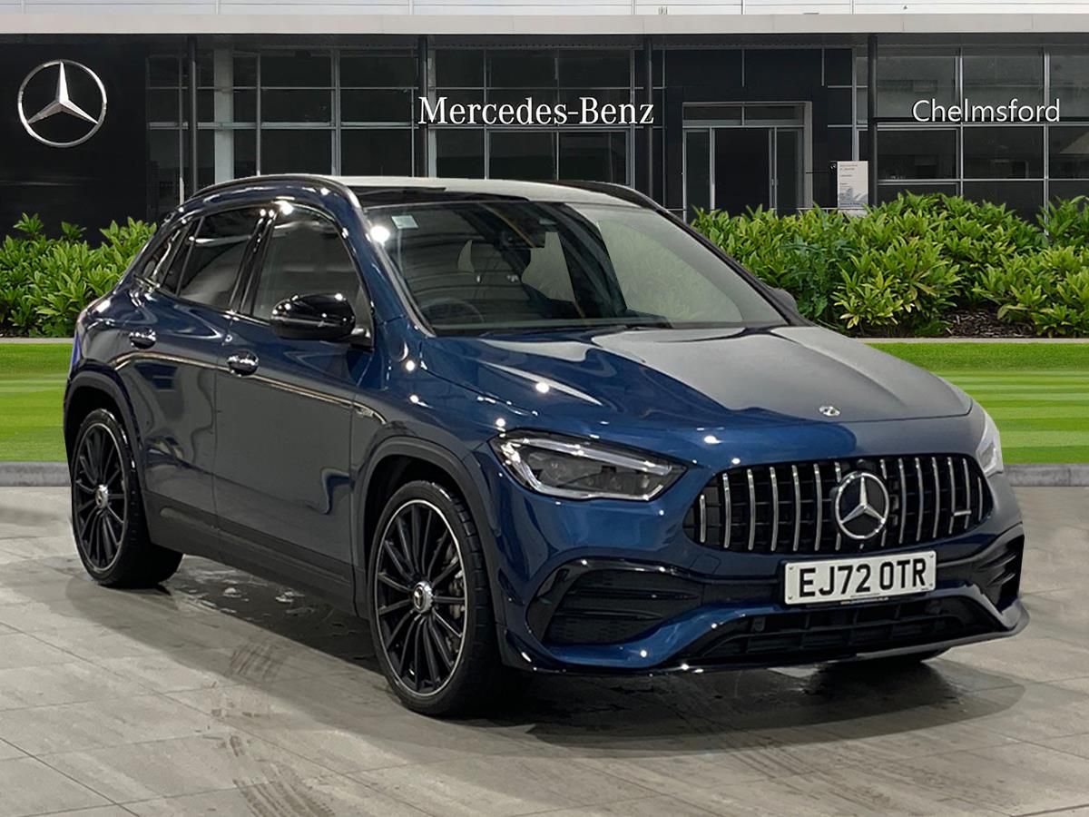 Contact our friendly, expert team today to test drive or reserve this Mercedes-Benz today. We look forward to welcoming you soon." Mercedes-Benz GLA Class GLA 35 4Matic Premium Plus 5dr Auto,10.25 inch touchscreen media display, 10.25" Digital instrument cluster display screen, Active lane keeping assist, Attention assist, Cruise control + speed limiter, Direct steering, DYNAMIC SELECT with a choice of driving modes (Comfort, Sport, Sport +, Slippery and Individual), ECO start/stop function, Fluid level warning indicator for fuel, oil, coolant and washer fluid, Hard-disk navigation, Hey Mercedes Voice activation, Instrument cluster - AMG sporty menu with gear indicator, warm up menu, set up menu, plus G meter, Race timer and engine data, Lamp failure indicator, Mercedes me connect including emergency call system, accident recovery, breakdown management and maintenance, Mercedes me remote services, Multi function trip computer, Outside temperature gauge, Owners manual and service booklet in English, Pre-installation of private car share, Radio aerial integrated into front and rear windshields, Service indicator (ASSYST), Smartphone integration with Apple CarPlay and Android auto, Speed limit assist, Status display for rear seat belts in instrument cluster, Traffic sign assist, Rear axle multi-link, Suspension with adaptive damping system, 2 USB ports (type C) in rear stowage compartment and one in front of center console, Bluetooth connectivity including audio streaming, DAB Digital radio, MBUX multimedia system with AMG specific display designs, AMG start up logo, visualisation of AMG drive programs, vehicle and engine data, Media interface, Mercedes-Benz (225w) sound system with 10 speakers, Adaptive brake lights, Aerial for GPS, AMG body styling - Front apron with air deflectors on the outer air intakes, AMG body styling - larger air intake in black, AMG body styling - Rear air outtakes, AMG exhaust system with flap control dependent on drive program, AMG real performance exhaust sound system, AMG specific/dual flow exhaust pipes in chrome (non-functional), Automatic headlamp activation, Body colour bumpers, Body coloured door handles with chrome insert for keyless entry, Car wash function, Dark privacy glass from B-pillar backwards, Electric front windows, Electric rear windows, Electrically adjustable and heated door mirrors with integrated LED indicators, Front bumper with underride guard in high gloss chrome, Front wings with TURBO 4MATIC lettering, Heated glass rear windscreen + timer control, Heated windscreen wash system, Interior mirror with black reading lamps and frameless, LED daytime running lights, LED tail lights in two piece design, LED third brake light, Multibeam LED headlamps with adaptive highbeam assist, Panoramic sunroof, Rain sensor windscreen wipers, Rear fog lights, Rear side wing doors, Rear wiper, Roof spoiler, Signature AMG radiator grille, 12V power socket in centre console, 3 seat bench in 2nd row, 3 spoke AMG flat bottom performance sports steering wheel in black nappa leather with perforated grip area, 12 o'clock and silver chrome AMG lettering, 40:20:40 split folding rear seats with backrest, Adjustable head restraints, Air conditioning - Two zone thermotronic luxury automatic climate control with display, Ambient lighting in front headrests, AMG floor mats in black with AMG lettering and border in nubuck leather look finish, AMG illuminated door sills with changeable cover, Auto Mercedes-Benz child seat recognition sensor, Black roof lining, Centre console with AMG specific hand comforter and button to control manual transmission and 3 stage ESP, Courtesy light in boot, Electrically adjustable front memory seats with four way lumbar support, Floor mats in velour, Front centre armrest with stowage, Galvanished gear shift paddles on steering wheel, Heated front seats, Illuminated glovebox, Interior lighting - 64 colour Ambient lighting, Leather trimmed gearknob, Luggage net on driver/front passenger seat backrest, Manually height and reach adjustable steering column, Multi-gesture touchpad control on center console, Single front passenger seat, Sports pedals in brushed stainless steel with black rubber studs, Sports seats, Stowage compartment in centre console, Stowage compartment with retractable cover, Sunvisors with illuminated vanity mirrors, Twin front cup holders, Two outer rear seat isofix and top tether child seat fixing points, AMG Aerodynamics package - GLA, AMG Night package - GLA, Interior lighting with light and sight pack - GLA, Keyless go comfort package - GLA, Load compartment pack - GLA, Mirror pack - GLA Class, Parking pack - GLA, 3 rear 3 point seatbelts, ABS with Brake Assist, Active bonnet pedestrain safety measure which detects an impact and raises bonnet by 65mm, Active brake assist includes forward collision warning system with autonomous braking, Adaptive brake assist with hold function and hill start assist, AMG high performance brake system with silver brake callipers and black AMG lettering at the front, ventilated and perforated brake disc, Bonnet with power domes, Brake pad wear warning indicator, Childproof locks manually operated for rear doors and electrically operated for rear power windows, Crash responsive emergency lighting, Driver and passenger head and side airbags, Drivers knee airbag, Dual stage driver/passenger airbags, Electronic parking brake, ESP curve dynamic assist, ESP with ASR, Front and rear seatbelt reminder, Front passenger seat occupancy sensor, Tyre pressure monitoring system, Warning triangle and first aid kit, Window airbags, Alarm system with immobiliser and interior protection -Thatcham category 1, Keyless entry lock/unlock, Keyless Go starting function, Remote central locking and crash sensor with emergency opening function, Urban guard vehicle protection, Vehicle key with decorative surround in chrome, Carbon structure trim, Chrome air vent surrounds, 21" AMG multi spoke light alloy wheels painte