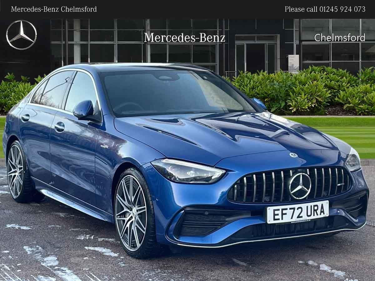 Contact our friendly, expert team today to test drive or reserve this Mercedes-Benz today. We look forward to welcoming you soon." Mercedes-Benz C Class C43 4Matic Premium Plus 4dr 9G-Tronic,11.9" high resolution multimedia colour display, 12.3" digital instrument cluster display, Active blind spot assist, Active brake assist plus, Active lane keeping assist, AMG DYNAMIC SELECT with a choice of driving modes (Slippery, Comfort, Sport, Sport+, Individual), Attention assist, Cruise control with speedtronic variable speed limiter, E-call, Extended MBUX functions, Finger print sensor, Fluorescent jacket for driver, Head up Display, MBUX augmented reality for navigation, MBUX navigation premium, MBUX voice control activated by keywords "Hey Mercedes", Mercedes connect me, Mercedes me remote services, Outside temperature gauge, Pre-installation for digital key transfer, Rear axle steering, Remote boot release, Service indicator (ASSYST), Smartphone integration, Sports direct steer speed sensitive steering, Status display for rear seat belts in instrument cluster, Wireless charging system for mobile devices, 66l fuel tank with increased capacity, 9G TRONIC 9 speed automatic transmission, Agility control sports suspension with adaptive damping system, Petrol Particulate Filter, Sporty engine sound system, Burmester 3D surround sound system, DAB Digital radio, MBUX multimedia system, Multifunction steering wheel with audio and onboard settings control, Adaptive brake lights, Adaptive high beam assist plus, AMG body styling front apron, rear apron and side skirts, AMG front bumper with sporty air intakes and chrome elements, AMG illuminated door sills with AMG lettering and with exchangeable cover, AMG lip spoiler, AMG rear bumper with high gloss chrome elements, AMG side skirts in vehicle colour, B-pillar trim in glossy black, Body coloured bumpers, Body coloured door mirrors, Chrome beltline trim, Daytime running lights, Digital light LED headlamps, Electric panoramic sliding sunroof, Electric windows with one touch opening/closing and obstruction sensors, Electrically adjustable and heated door mirrors, Exhaust system with two round twin tailpipe trim elements in high gloss chrome, Green tinted glass, LED Indicators, LED tail lights, LED third brake light, Powerdomes on bonnet, Privacy glass, Radiator diamond grille with integrated Mercedes Benz star and louvre silver with chrome pins, Radio aerial integrated into rear window, Rain sensor with automatic windscreen wiper activation, Rear boot, Rear side wing doors, 3 seat bench in 2nd row, 3 spoke flattened bottom AMG multifunction steering wheel in black nappa leather with chrome inserts and perforated leather in grip area, 40:20:40 split folding rear bench seat, AMG Leather upholstery, AMG sports seats, AMG steering wheel buttons, Auto Mercedes-Benz child seat recognition sensor, Black air vents with silver chrome elements, Black floor mats with AMG lettering, Black roof liner, Door trim elements high gloss black with silver chrome surroundings and switches, Double cupholder in centre console, Electrically height/reach adjustable steering column, Folding rear seat backrest, Front and rear head restraints, Front centre armrest with storage compartment, Gearshift paddles on steering wheel, Heated front seats, Illuminated glove compartment stowage, Interior lighting - 64 colour Ambient lighting, Overhead control unit in high gloss black, Rear top tether child seat ISOFIX attachment, Single front passenger seat, Sports pedals with stainless steel surfaces and rubber studs, Sunvisors with illuminated vanity mirrors, Thermotronic automatic 4 zone climate control, Interior lighting package - C Class, Memory package - C Class, Mirror pack - C Class, Parking package with 360 degree camera - C Class, Seat comfort pack - C Class, Stowage space pack - C Class, USB package - C Class, 3 rear 3 point seatbelts, Active bonnet pedestrian safety measure which detects an impact and raises bonnet, Adaptive brake system with HOLD function and brake drying in the wet, Anti-lock braking system (ABS), Brake calipers with Mercedes-Benz lettering + perforated front brake discs, Child proof door locks, Drivers knee airbag, Drivers pelvis airbag, Dual stage driver/passenger airbags, Electric parking brake, Electronic Stability Programme (ESP), Front centre airbag between driver and front passenger seats, Front side airbags, Larger brake discs on front axle, Rear seatbelt warning indicator, Sports braking system with perforated front disc brakes, Tyre pressure monitoring system, Warning triangle and first aid kit, Window airbags for driver, front passenger and rear passenger, Central locking with interior switch, automatic locking and crash sensor with emergency opening function, Chrome surround electric key, Keyless Go comfort access, Urban guard vehicle protection - Thatcham Category 1 consisting of breakin, anti-theft alarm system (ATA), interior monitoring and tow away protection, Artico man-made leather dashboard with contrast stitching, Centre console trim in high gloss black with carbon fiber trim, 20" AMG 5 twin spoke light alloy wheels in tantalite grey with high sheen finish, Summer tyres, TIREFIT with tyre inflation compressor
