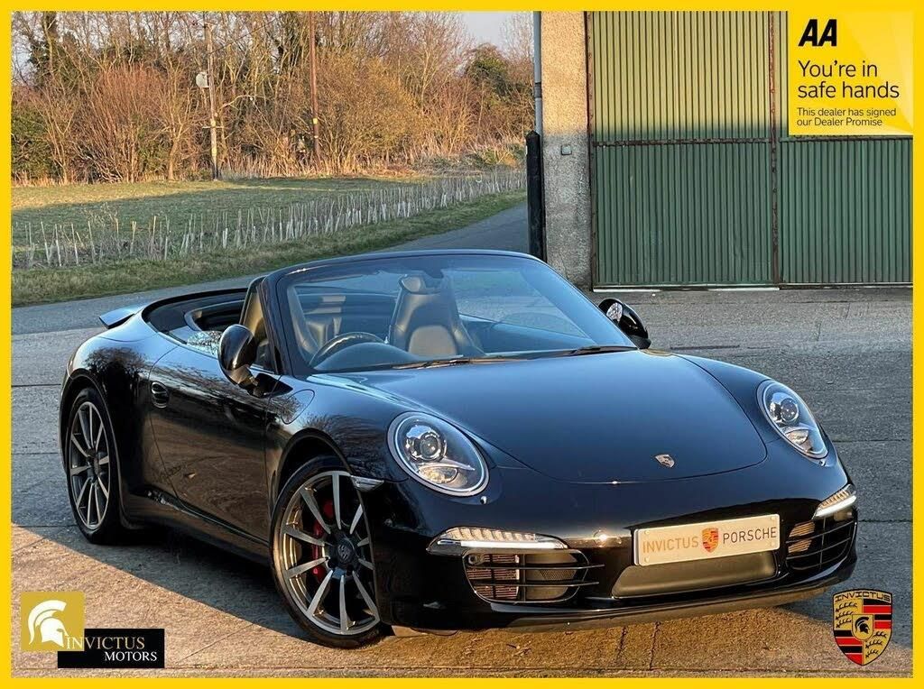 12v Connector, 20in Alloy Wheels - Carrera S, 235 Watts Total Output, 7in TFT Touchscreen, ABD - Automatic Brake Differential, ABS - Anti-lock Brake System, ASR - Anti Slip Regulation, Active Carbon Filter, Airbag - Driver, Airbag - Head, Airbag - Passenger, Airbag - Thorax in Seat Side Bolsters, Alarm System, Auto-Deployed Rear Spoiler, Auto-Deploying Roll-Over Protection System, Automatic Air Conditioning, Automatic Headlight Activation with Welcome Home Lighting, Brake Calipers - Red, Central Locking with Remote Control, Clothes Hooks on Seat Backrests, Convertible Top Colour - Black, Daytime Running Lights - LED, Deformable Front and Fear Aprons with Integral Alloy Bumpers Mounted on Impact Absorbers, Door Handles - Bow-type, Door Mirrors - Electrically Adjustable and Heated, Door Sill Guards - Model Designation Logo, Electric Parking Brake, Electric Windows - Lifts with One Touch Operation, Electrical Wind Deflector, Engine Immobiliser, Enhanced Porsche Stability Management - PSM, Extended Head Restraints Integrated into the Front Seats, Extra Storage Behind the Rear Seat Backrests, Footwell Illumination, Front Apron Moulding with Integral Air Intakes, Front Luggage Compartment Lid/Rear Lid and Doors in Aluminium, Fully Electrically Operated Hood, Gear Indicator in Rev Counter, Glove Compartment - Lockable, Green Tinted Heat-Insulating Glass, Headlight Cleaning System, Heated Rear Screen, Hoodlining Black Fabric, Illuminated Vanity Mirrors in Both Sun Visors, Instrument Cluster with Central Rev Counter and 4.6in TFT VGA Display, Instrument Dials and Cluster in Black, Integrated Cluster of Five Round Instruments, Integrated Interior Lighting Concept with Stepless Dimming, Key Remote Luggage Compartment Lid Release, LED Reading Lights Orientation Ignition Lock and Vanity Mirror Lighting, Leather Interior - Black, MSR - Motor Slip Regulation, McPherson-Strut Suspension with Anti-Roll Bar at Front, Model Designation in Front of Gear-PDK Selector, Model Designition 911, Multi-Link Suspension with Anti-Roll Bar at Rear, PASM - Porsche Active Suspension Management, PCM - Porsche Communication Management - Include Navigation Module, PVTS - Porsche Vehicle Tracking System, Pad-Wear Sensors on Each Brake Pad, Park Assist - Rear, Passive Pedestrian Protection System, Porsche Logo and Model Designation on Rear Lid High Gloss Chromed, Porsche Side Impact Protection - POSIP, Porsche Torque Vectoring Plus - PTV Plus with Electronically Locking Rear Differential, Power Assisted Steering with Variable Steering Ratio, Power Release Button for Engine Release, Power Release Buttons for Luggage Compartment, Pre-Tensioners and Force Limiters at Front, Preparation for ISOFIX Child-Seat Mounting with Switch-Operated Front Passenger, Rear Lights and Third Brake Light and Indicators - LED, Rear Reflector Integrated in Rear Section, Seats - Split-Folding Rear, Seats - Sports, Separate Auxiliary Lights in the Front End with Indicators - LED, Sound Package Plus, Speakers x9, Sport Button on the Centre Console, Sports Steering Wheel with Manual Fore-Aft and Height Adjustment, Steering Wheel - Smooth Finish Leather on Rim - Gear and Handbrake Levers and Door Handles, Storage Compartment in Each Door, Tailights - LED, Third Brake Light, Tyre Sealing Compound and Electric Air Compressor, Universal Audio Interface - AUX, Water-Repellent Coating on Side Windows, Welcome Home Lighting, Windscreen Washer System with Two Wiper Speeds and Heated Washer Jets, Power Steering Plus, Sport Chrono Package Plus, Two-Tone Leather Interior, Trim Strip Switch Panel Painted, Steering Wheel - Sport Design, Standard Leather - Black, Sports Seats Plus - Electrical 4 Way, Sports Seats - Electrical 14 Way, Seats - Heated Front, Porsche Crest on Head Restraints, Leather Interior Package - with Leather Interior, Leather Interior in Natural Leather, Interior Package Painted - with Leather Interior, Instrument Dials - Black, Centre Console Trim Painted, 20in Alloy Wheels - Carr