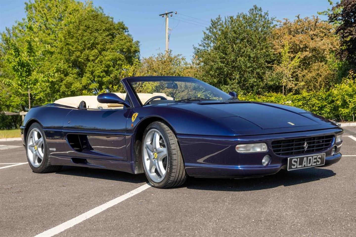 Finished in Le Man Blu Metallic with Contrasting Crema Hide, Blu Scuro Carpets. Air Conditioning Climate Control Electric Seats Full Power roof Blue Mohair Hood 6 speed manual Nero Brake Calipers Full service history is as follows: Supplied by Edinburgh Ferrari 15.05.1996 Serviced 08.04.1998 @ 3,897 miles by Maranello Egham Serviced 02.02.2000 @ 9,630 miles by H.R Owen London Serviced 05.11.2001 @ 19,947 miles by Specialist Serviced 28.02.2002 @ 20,693 miles by Graypaul Sheffield ( cambelts replaced) Serviced 30.12.2002 @ 21,930 miles by Graypaul Loughborough Serviced 05.08.2003 @ 22,804 miles by Graypaul Sheffield Serviced 10.08.2004 @ 27,092 miles by Graypaul Sheffield Serviced 20.06.2005 @ 28,138 miles by Graypaul Nottingham Serviced 29.05.2008 @ 33,010 miles by Specialist Serviced 05.06.2009 @ 34,920 miles by Specialist Serviced 22.03.2011 @ 36,325 miles by Specialist (cambelts replaced) Serviced 15.07.2013 @ 37,511 miles by Specialist Serviced 20.02.2014 @ 40,963 miles by Specialist (cambelts replaced) Serviced 23.01.2015 @ 41,749 miles by Specialist Serviced 10.02.2016 @ 42,186 miles by Specialist Serviced 23.03.2017 @ 42,379 miles by Specialist Serviced 18.10.2019 @ 42,626 miles by Specialist (cam belts replaced) Serviced 17.09.2020 @ 42,687 miles by Specialist Serviced 16.11.2021 @ 43,809 miles by Specialist The vehicle comes with 6 months RAC warranty, 12 months MOT and a service is included at the full asking price. A really nice example of this appreciating classic. Viewing strictly by appointment only. Air Bag Driver,Air Bag Passenger,Alloy Wheels,Anti-Lock Brakes,Body Coloured Bumpers,Central Door Locking,Climate Control,Computer (Driver Information System),Deadlocks,Electric Windows (Front),Electronic Stability Programme,Head Restraints,Immobiliser,Power-Assisted Steering,Seats Electric (Driver/Passenger),Traction Control System,Upholstery Leather