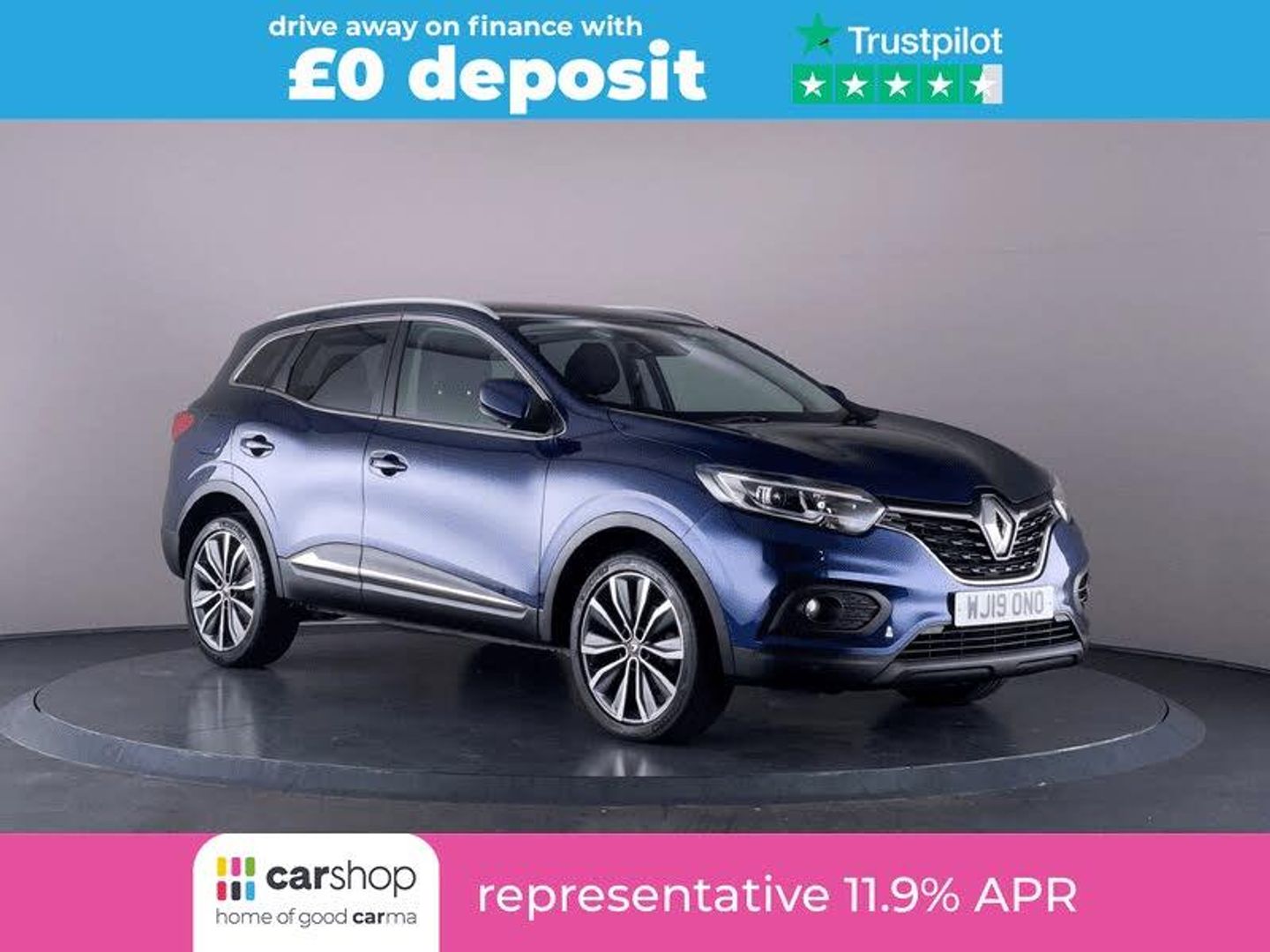 You can drive away with 0 deposit finance in this 2019 petrol Renault Kadjar finished in Blue is fully prepared and comes equipped with features including Satellite Navigation,Bluetooth,Parking Sensors,Alloy Wheels,Climate Control,Part Leather Seats,AUX/USB,Parking Camera,Cruise Control,Keyless Entry,Automatic Lights,DAB,Heated Rear Screen,Speed Limiter and 18687 miles. This fantastic manual Renault Kadjar is the perfect 5-door Hatchback for you, and is located at CarShop Norwich but can be transferred to your local CarShop. We have 1000s of cars in stock, each one is lovingly prepared before they reach our stores, so they are CarShop Quality and Safety Assured. All our cars come with our Price Match Promise and a 3-month CarShop Warranty. Mix all those together and it's clear to see why CarShop is an award-winning car supermarket.
