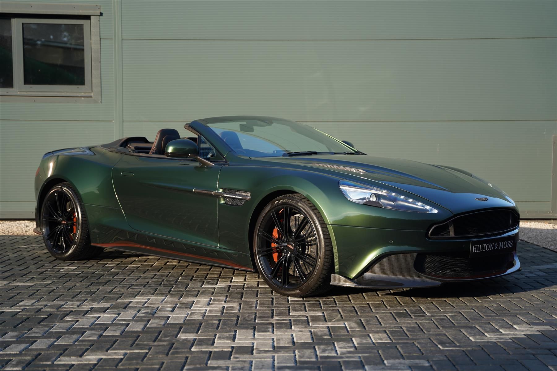The interior features Obsidian Black hides, beautifully contrasted by Chestnut Tan stitching and accents. Among its chosen optional extras, this masterpiece boasts Bronze brake callipers, black textured tailpipe finishers, and prestigious One-77 steering wheel. The car also benefits from a B&O sound system, ventilated front seats, and a wind deflector that adds to your driving pleasure. The exquisite 20” 5-spoke Gloss Black diamond-turned wheels radiate sophistication, all while a paint protection film, applied beneath the green wrap, provides double-layered paint protection.