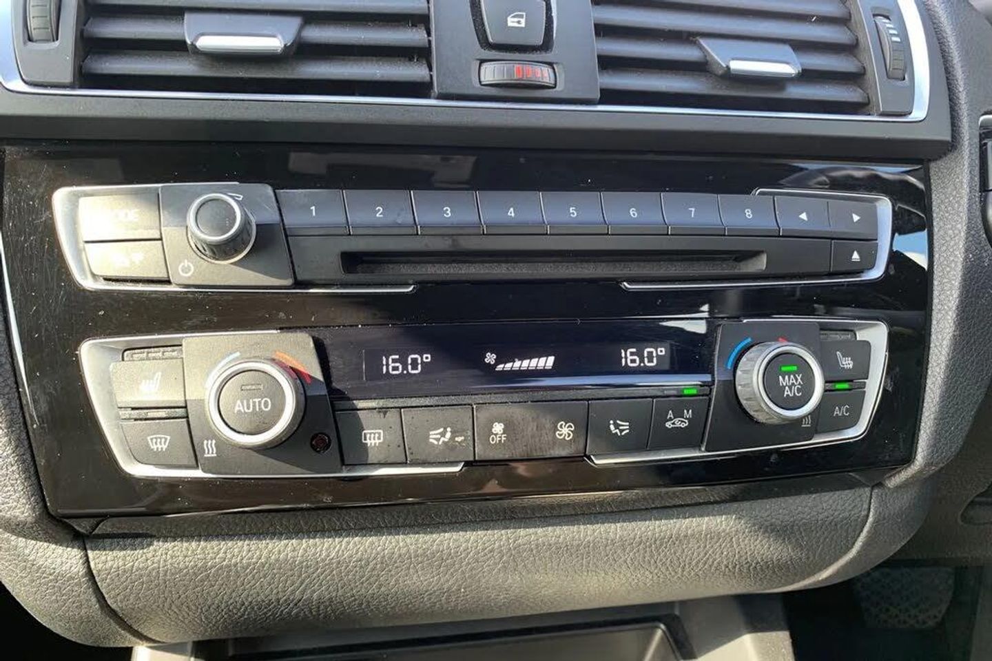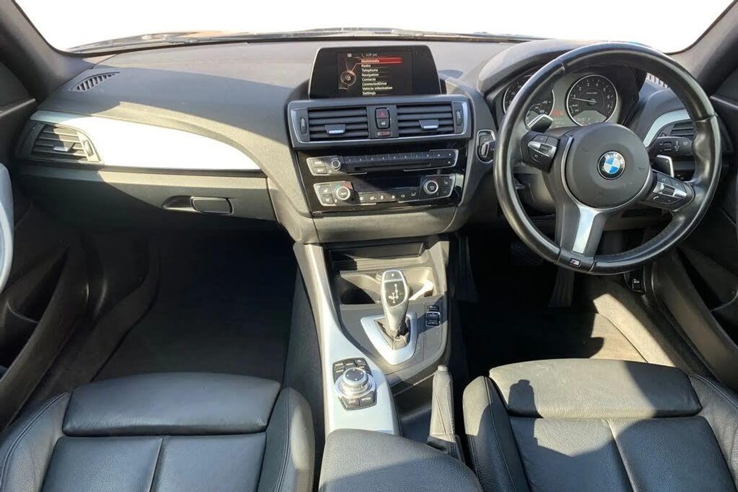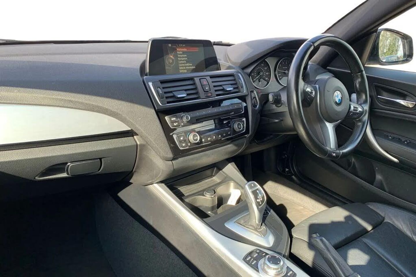 'Lights On' Reminder warning buzzer,BMW Online services,BMW Teleservices,Brake force display,Engine start/stop button,Oil level indicator,On board computer,On board diagnostics,Outside temperature display,Service interval indicator,Speed limiter,Variable sport steering,Drive Performance Control,Sports function on gearbox with steering wheel mounted gearshift paddles,Auxiliary point for auxiliary devices,BMW professional radio with CD player,DAB Digital radio,Auto dimming rear view mirror,Body colour bumpers,Body colour door handles,Chrome kidney grille with black vertical slats,Dark chrome plated exhaust tailpipes,Electric front windows + one touch + anti-pinch,Electrically adjustable door mirrors,Ferric grey mirror caps,Follow me home headlights,Green tinted heat insulating glass,Heated door mirrors,Heated windscreen washer jets,M aerodynamic bodystyling,Rain sensor including auto headlights activation,Rear wash/wipe,Welcome lighting,12V power socket in centre console,12V power socket in passenger footwell,2 grab handles,60/40 split rear seats,Dakota leather upholstery,Door armrests,Driver/passenger sunvisors with ticket holders,Folding rear seat head rests,Front folding/sliding centre armrest with storage,Front head restraints,Front sports seats with electric side bolster adjustment,Front/rear courtesy lights with soft on/off dimming,Glovebox,Individual anthracite headlining,Isofix rear child seat preparation,Leather gear knob and handbrake grip,Load restraint lashing eyes,M sports leather steering wheel,Multifunction steering wheel with audio controls,Reach + rake adjustable steering column,Storage compartments in doors,Interior comfort pack - 1 Series,ABS/EBD,Automatic Stability Control (ASC),BMW emergency call,Child locks on rear doors,Cornering brake control (CBC),Crash sensor,Driver/Passenger airbags (Impact dependent),Drivers knee airbag,DSC+,Dynamic brake control,Dynamic Traction Control - DTC,Front passenger airbag deactivation,Front side airbags,Hill start assist,ITS head airbags for front/rear,M Sport braking system,Pyrotechnically pre-tensioned front seatbelts,Seat belt force limiter,Three 3 point rear seatbelts,Tyre pressure monitor,Automatic drive away locking facility,Electronic immobiliser,Remote central locking,Thatcham Cat.1 alarm,18" light alloy wheels - M Double spoke style 436M,Driver Comfort Package,Enhanced Bluetooth Telephone Preparation with USB Audio Interface and Voice Control,Interior Trim - Brushed Aluminium with Black High-Gloss Finisher,Run Flat Tyres,Seat Heating for Driver and Front Passenger,Sun Protection Glazing,Mineral Grey,Dakota Leather - Black with Black Interior