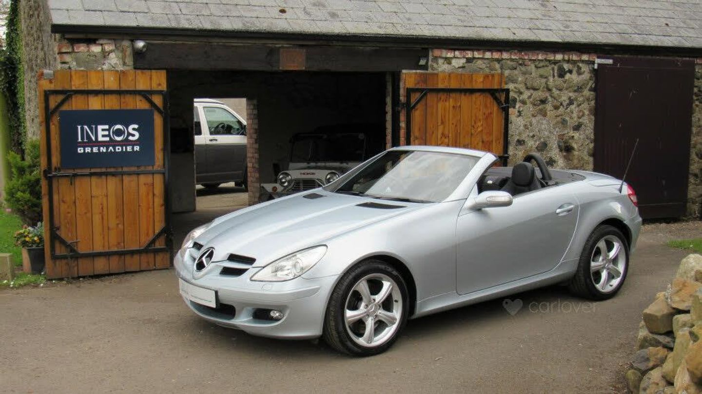 Mercedes SLK350 finished in Tellurite Silver metallic with Black heated leather.