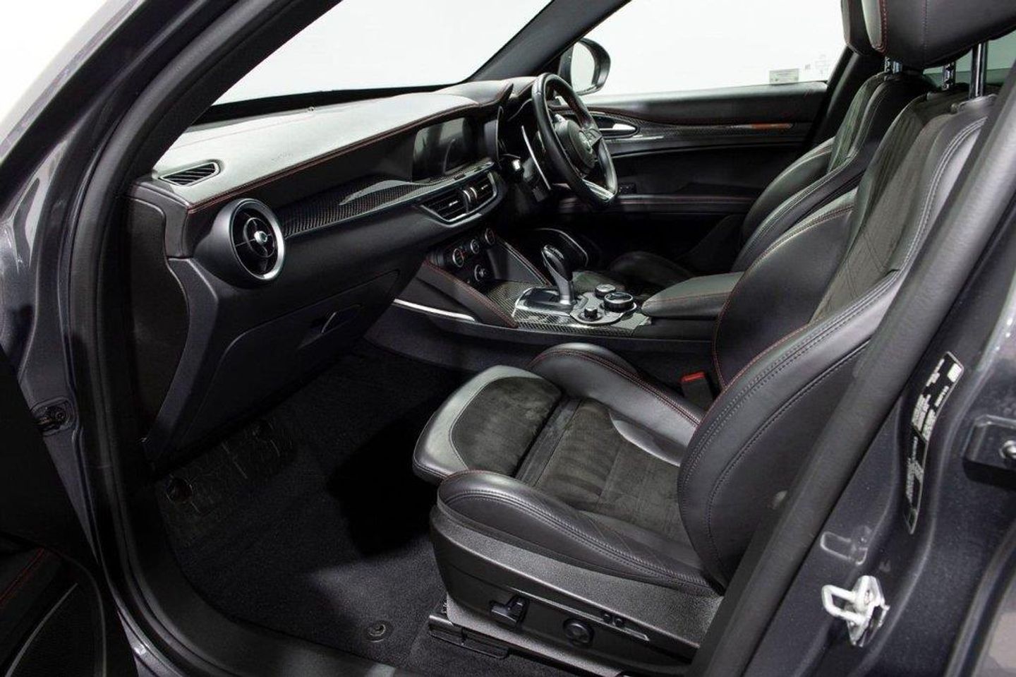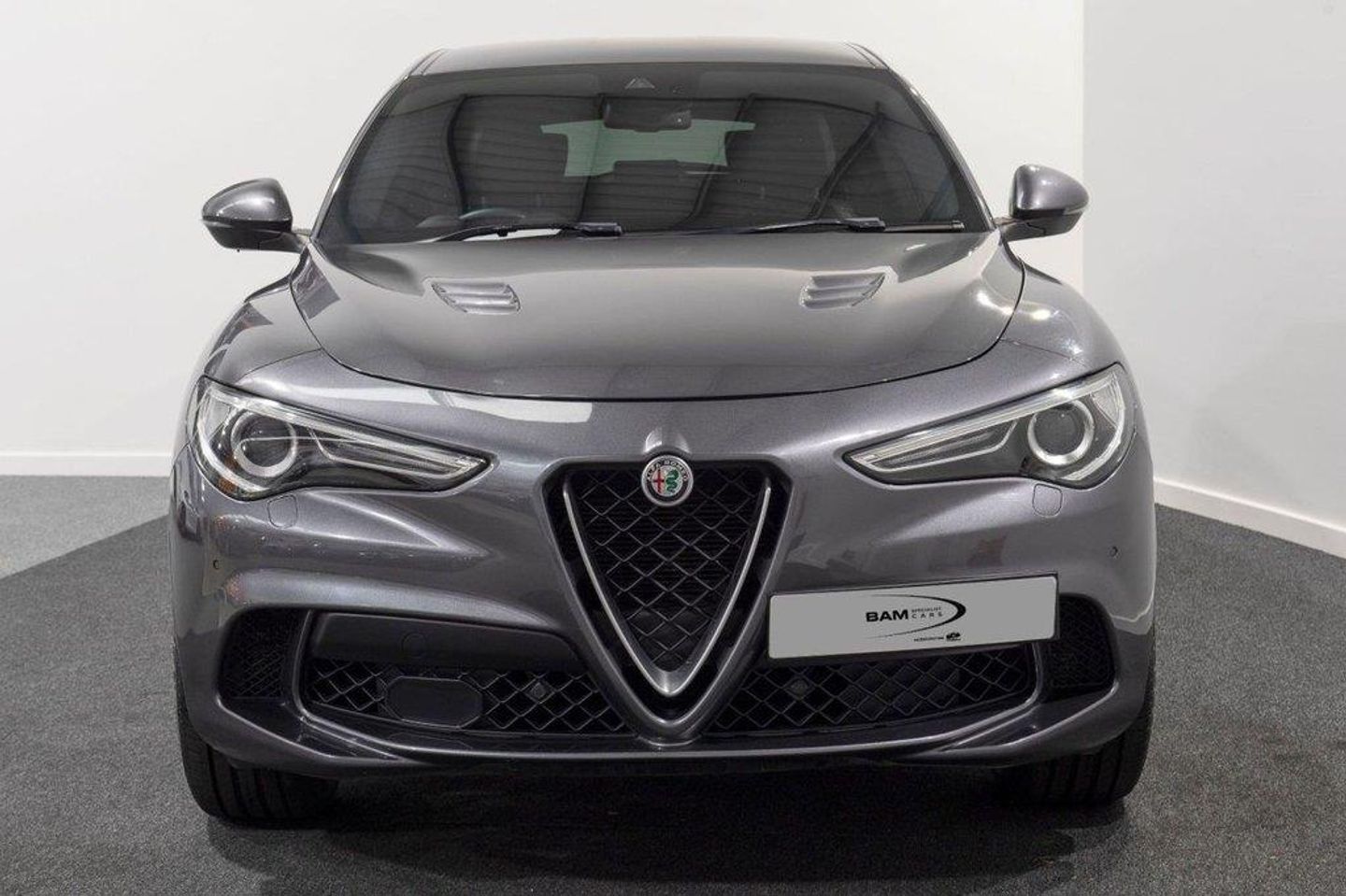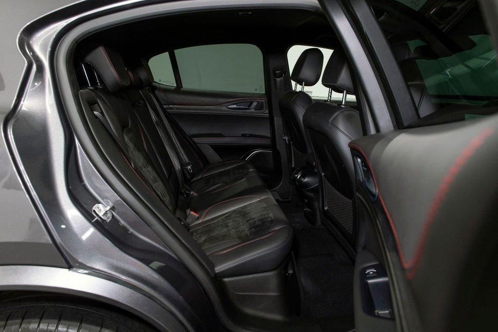 Here at BAM Specialist cars we are pleased to be offering this impressive Alfa Romeo Stelvio 2.9 V6 BT Quadriofglio 8 speed auto finished in gleaming Vesuvio Grey metallic paintwork with complementary Black half leather/Alcantara seating with red stitching, This car has an excellent specification, Including the desirable 19" Dark 5 Hole Alloy wheels complemented alongside optional Red brake callipers, Rear privacy glass, Apple Carplay/Android auto, Adaptive cruise control, Touchscreen satellite navigation, DAB Radio, Bluetooth connectivity, Electrically adjustable sports seats with heating and memory function (Drivers side), Carbon interior trim, Multi function steering wheel with paddle shift, Reverse camera with front and rear parking sensors, Fully adjustable sports suspension settings, Easy entry access, Adjustable steering column, Dual zone climate control, Electrically operated tailgate, Aluminium pedals, Cloverleaf badging and much more With full service history 18/04/2019 @ 4212 miles 02/10/2019 @ 9940 miles 07/08/2020 @ 19823 miles 01/09/2021 @ 26899 miles 23/11/2022 @ 41960 miles 15/08/2023 @ 51500 miles including auxiliary belt Complementary three months warranty supplied with all vehicles as standard. Extended warranties supplied through WarrantyWise - just ask us for a quote! To arrange a viewing of this outstanding vehicle at our Chesterfield premises, just off the M1, please call us to arrange an appointment. ALL CARS HPI CLEAR ** INTERNATIONAL DELIVERY ** WARRANTY ** PART EXCHANGE ** 10.9% APR FINANCE AVAILABLE. Active Cruise Control,Brake Calipers - Red,Dark Tinted Rear Windows,Electrically Adjustable Seat Pack,Vesuvio Grey