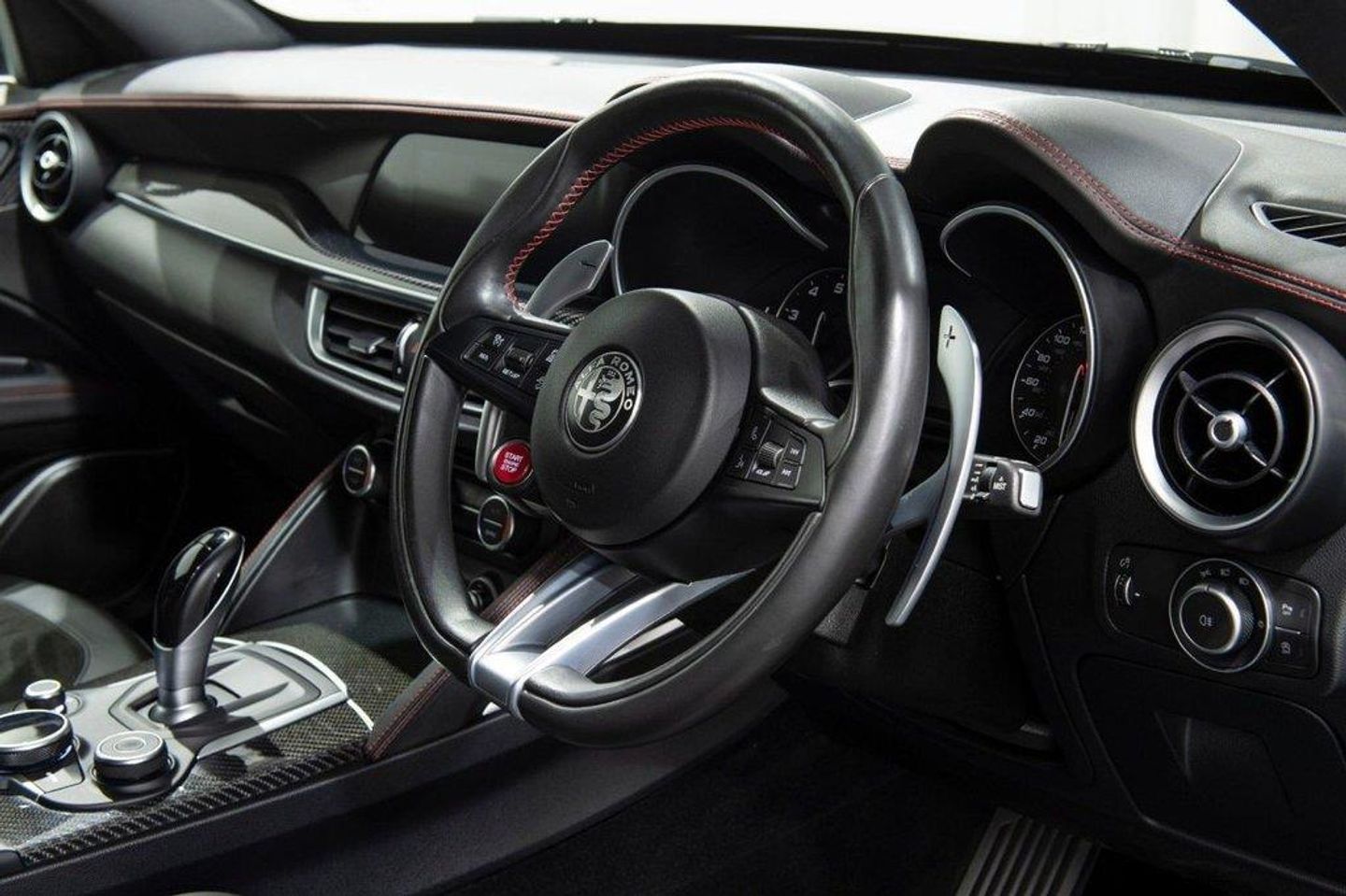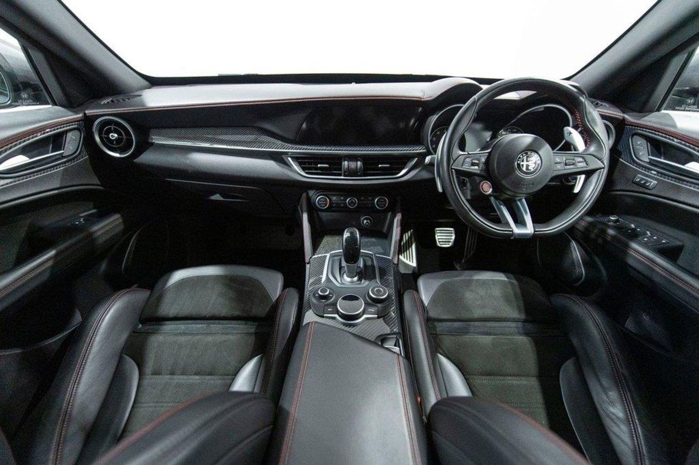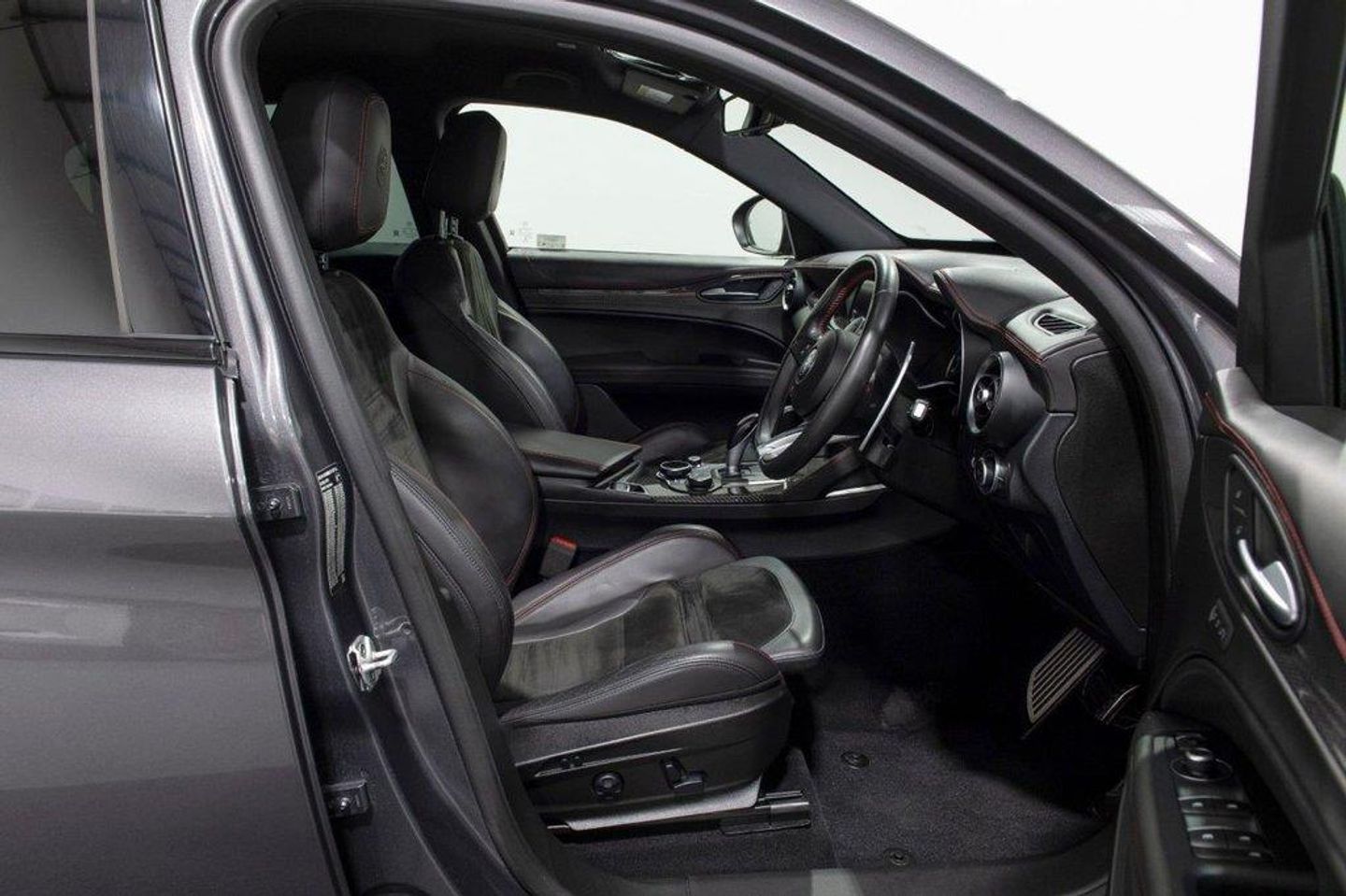 Here at BAM Specialist cars we are pleased to be offering this impressive Alfa Romeo Stelvio 2.9 V6 BT Quadriofglio 8 speed auto finished in gleaming Vesuvio Grey metallic paintwork with complementary Black half leather/Alcantara seating with red stitching, This car has an excellent specification, Including the desirable 19" Dark 5 Hole Alloy wheels complemented alongside optional Red brake callipers, Rear privacy glass, Apple Carplay/Android auto, Adaptive cruise control, Touchscreen satellite navigation, DAB Radio, Bluetooth connectivity, Electrically adjustable sports seats with heating and memory function (Drivers side), Carbon interior trim, Multi function steering wheel with paddle shift, Reverse camera with front and rear parking sensors, Fully adjustable sports suspension settings, Easy entry access, Adjustable steering column, Dual zone climate control, Electrically operated tailgate, Aluminium pedals, Cloverleaf badging and much more With full service history 18/04/2019 @ 4212 miles 02/10/2019 @ 9940 miles 07/08/2020 @ 19823 miles 01/09/2021 @ 26899 miles 23/11/2022 @ 41960 miles 15/08/2023 @ 51500 miles including auxiliary belt Complementary three months warranty supplied with all vehicles as standard. Extended warranties supplied through WarrantyWise - just ask us for a quote! To arrange a viewing of this outstanding vehicle at our Chesterfield premises, just off the M1, please call us to arrange an appointment. ALL CARS HPI CLEAR ** INTERNATIONAL DELIVERY ** WARRANTY ** PART EXCHANGE ** 10.9% APR FINANCE AVAILABLE. Active Cruise Control,Brake Calipers - Red,Dark Tinted Rear Windows,Electrically Adjustable Seat Pack,Vesuvio Grey