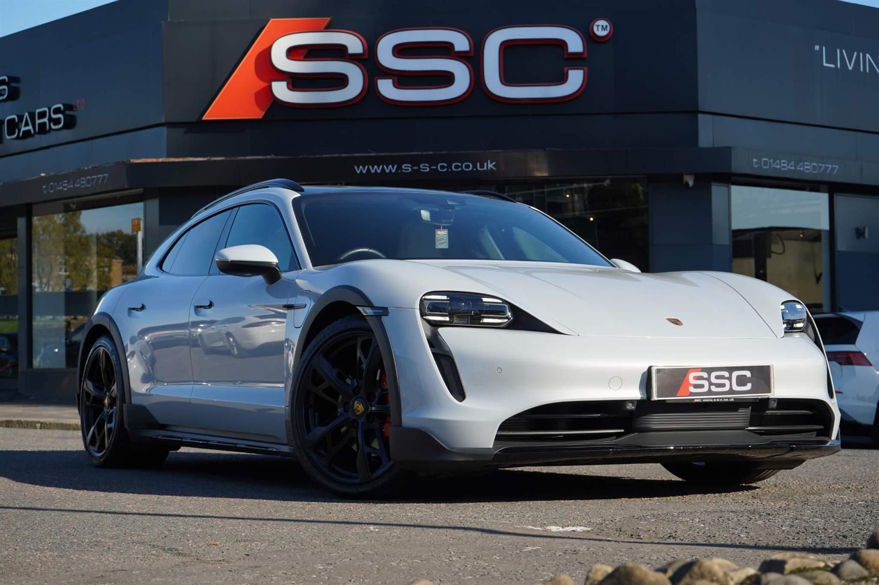 Stunning Taycan 4S Cross Turismo Finished In Ice Grey Metallic With Black/Crayon Two Tone Smooth Finish Leather. Fantastic Spec: Offroad Design Pack In Black, Panoramic Glass Roof, BOSE Surround Sound, 21'' Cross Turismo Design Wheels, Wheels Painted In Satin Black, Side Window Trim In High Gloss Black, Electric Folding Mirrors, Deletion Of Model Designation, Roof Rails In Black Aluminium, Porsche Electric Sport Sound, Sport Chrono Pack, Rear Light Strip With Porsche Logo In Glacier White, Auto Dimming Mirrors, Windscreen With Grey Top Tint, Privacy Glass, ParkAssist With Reversing Camera, 4+1 Seats, Ambient Lighting, Rear Side Airbags, Heated GT Steering Wheel In Leather, Porsche Crest On Headrests, Electric Charging Cover, Mode 3 Public Charging Cable, 150kW DC On Board Booster, Tyre Sealing Compound and Electric Air Compressor. This Taycan Comes With Remainder Of Manufacturers Warranty. VAT QUALIFYING!