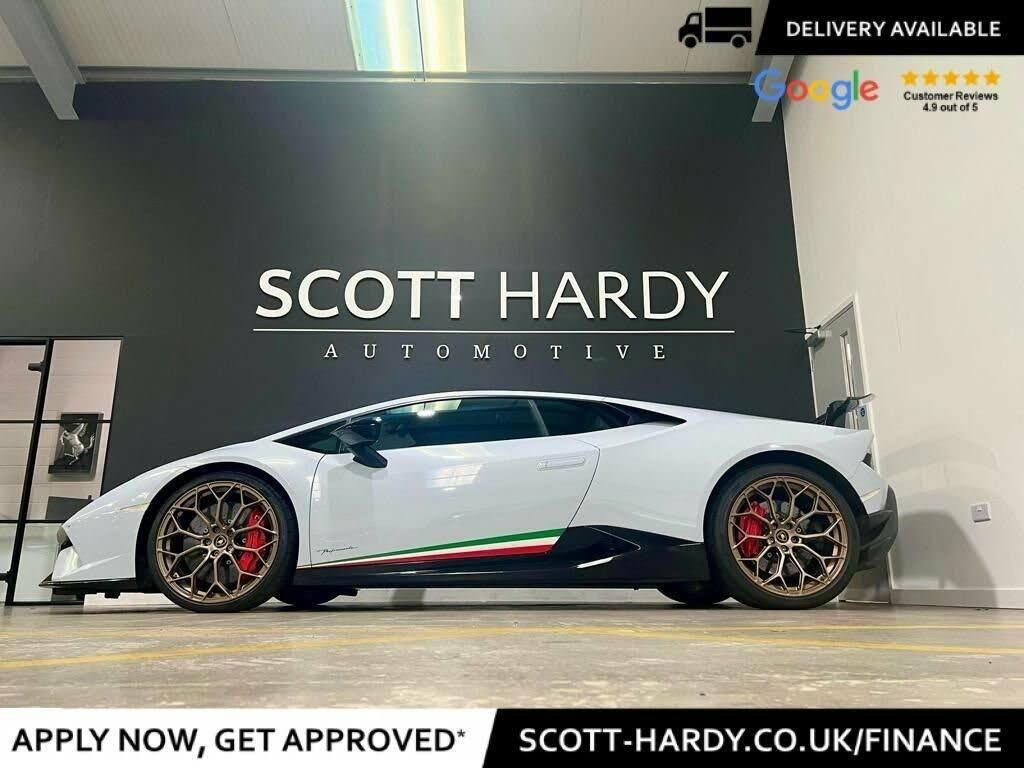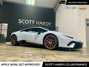 Scott Hardy have this highly sort after very rare colour believed to be one of three in this colour (Grigio Estarte). Pictures do not do this colour justice and must be seen in the flesh to appreciate the metallic nature and rarity of the spec The Lamborghini Huracan Performante Coupe is a high-performance sports car that is part of Lamborghini's Huracan lineup. It is known for its aggressive styling, aerodynamic enhancements, and impressive performance capabilities. The Huracan Performante Coupe is powered by a 5.2-liter V10 engine that produces 640 horsepower and 442 lb-ft of torque. It can accelerate from 0 to 60 mph in just 2.9 seconds and has a top speed of over 202 mph. One of the standout features of the Huracan Performante Coupe is its active aerodynamics system, known as Aerodinamica Lamborghini Attiva (ALA). This system uses electronically controlled flaps and spoilers to optimize aerodynamic performance and downforce, allowing for improved handling and stability at high speeds. The interior of the Huracan Performante Coupe is designed with a focus on performance and luxury. It features sport seats, carbon fiber trim, and a driver-focused cockpit. The car also comes equipped with advanced technology and connectivity features, including a touchscreen infotainment system and smartphone integration. Overall, the Lamborghini Huracan Performante Coupe is a highly sought-after sports car that offers exhilarating performance, striking design, and cutting-edge technology. Full dealer facilities available, Finance available, please apply via our website or call for a quote. We have a team of experienced buyers who hand pick our cars from all parts of the UK so you can buy with confidence all vehicles are HPI Clear and prepared to the highest standard. We believe in providing our customers with a personal and first class level of service,Full dealer facilities available, Part exchanges welcomed. TO ENQUIRE OUT OF BUSINESS HOURS PLEASE CALL MATT ON: 07711097959