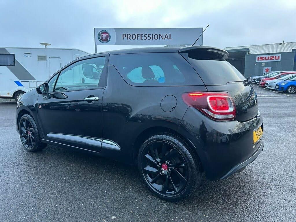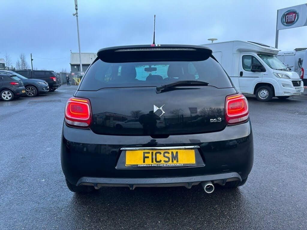 7" touch screen, Bluetooth + USB, Cruise control + speed limiter, DS connect box emergency assist system, eMyWay Satellite Navigation, Mirror screen with mirror link and car play, Multi function trip computer, Outside temperature display, Rear parking sensors, Rev counter, Service interval indicator, Variable power steering, Alarm, Deadlocks, Immobiliser, Locking wheel bolts, Remote control central locking, Diesel particulate filter, Sports suspension, Gloss black kit - DS 3, 5 three point inertia reel seatbelts, ABS + EBD + EBA, Curtain airbags, Driver seatbelt warning indicator, Driver/Front Passenger airbags, ESP, Front lateral airbags, Front seatbelt pretensioners with force limiters, Hill start assist, Tyre pressure monitoring system, Auxiliary input socket, DAB Digital radio, Steering wheel mounted controls, 12V socket, Automatic air conditioning, Boot light, Driver's seat height adjustment, Driver/pass sunvisor/covered courtesy mirrors, Front and rear headrests, Front courtesy lights, Front door pockets with bottle holders, Front passenger seat height adjust, Front reading light, Front seat and rear pockets, Height/reach adjust steering wheel, Instrument lighting dimmer, Interior mood lighting, Isofix rear child seat preparation, Lashing eyelets in boot, Leather gear knob, Leather handbrake with chrome insert, Perforated leather sports steering wheel, Pollen filter, Premium carpet mats, Satin chrome door sill protectors, Satin chrome steering wheel inserts, Split folding rear seat, 3D effect LED rear lights, Black roof, Body coloured bumpers, Chrome door handles, Chrome DS Wings grille, Chrome exhaust tailpipe, Chrome front fog light surround, Chrome rear bumper inserts, Chrome side rubbing strips, Dark tinted rear windows, Electric adjustable door mirrors, Electric front windows, Height adjustable headlamps, LED daytime running lights, LED front fog lights, Rear spoiler, Rear wiper, Roof colour door mirrors, Gloss black centre console and interior door handle surround, Leather instrument panel, Satin chrome gear surround, 17" Aphrodite black alloy wheels