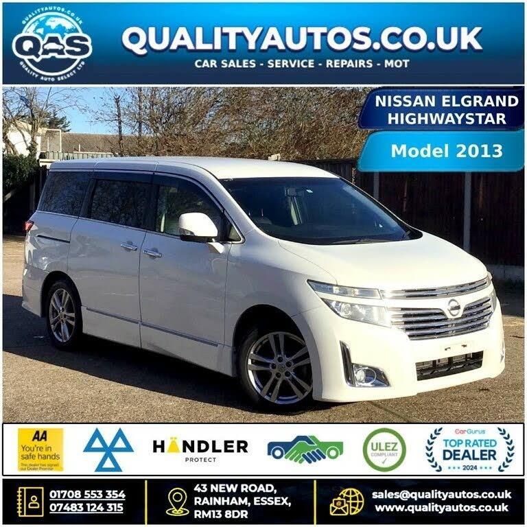 NISSAN ELGRAND HIGHWAYSTAR 4X4 2.5,13-13 ULEZ, 7 SEATS, FRESH IMPORT, VERIFIED MILEAGE , FINANCE AVAILABLE JAPANESE AUCTION SHEET GRADE-4B 1 Year mot, all major cards accepted, p/x welcome, warranty available (optional), all cars are pdi checked i.e serviced and valet before delivery. Alloys , 7 seater very spacious powerful mpv, electric folding mirrors, dual air con, 2 Set of key less entry/key less start and a lot more, get in touch for more details. Visit our web site for more detailed pictures and stock at : https://www.qualityautos.co.uk CALL US AT : Off: 01708 553 354 Mob: 07483 124315