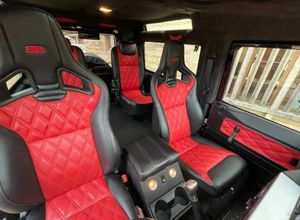 We are delighted to offer this lovely example of such a rare Defender. Built by LR special vehicles division to celebrate 60 years of Land Rover production. There were only 300 SVX 90x built, most being the soft top variant. Only 70 were produced as 4 seater station wagons so the far rarer one to own. All benefited from ABS TC, A/C remote locking. This one also benefiting from red leather inserts in the existing SVX trim and Recarro sports seats, external windscreen protection bar, rear NAS step tow bar and front DLR bumper.
