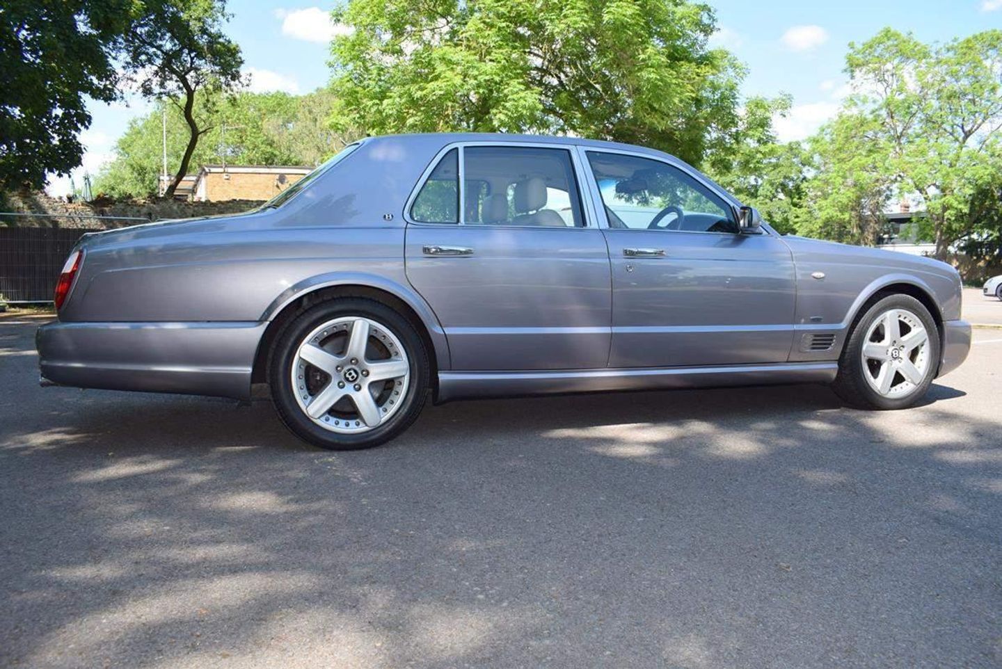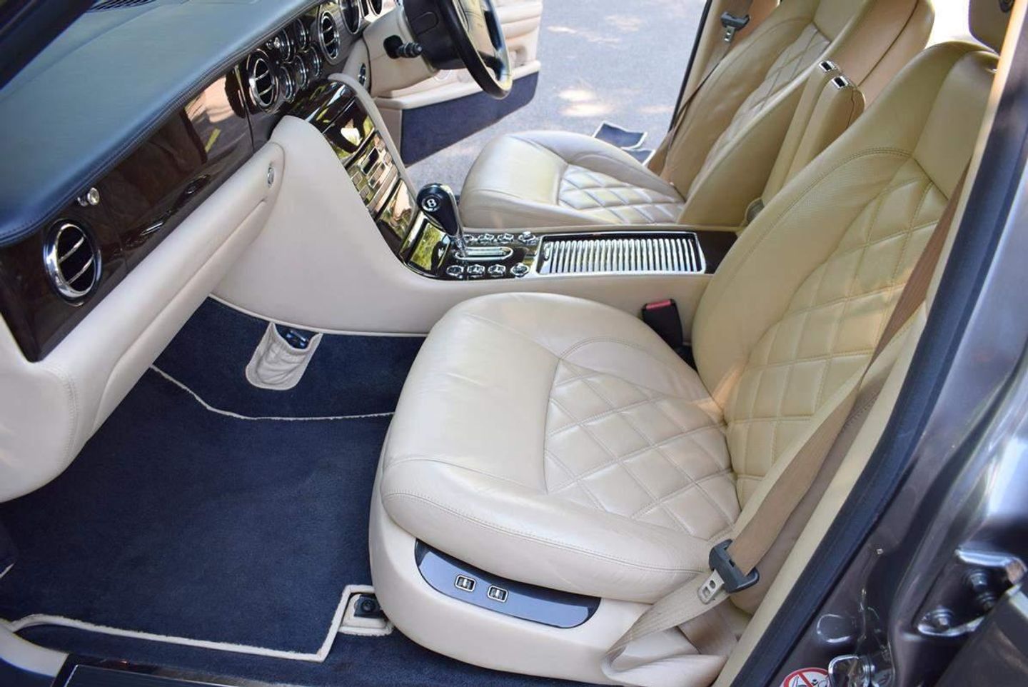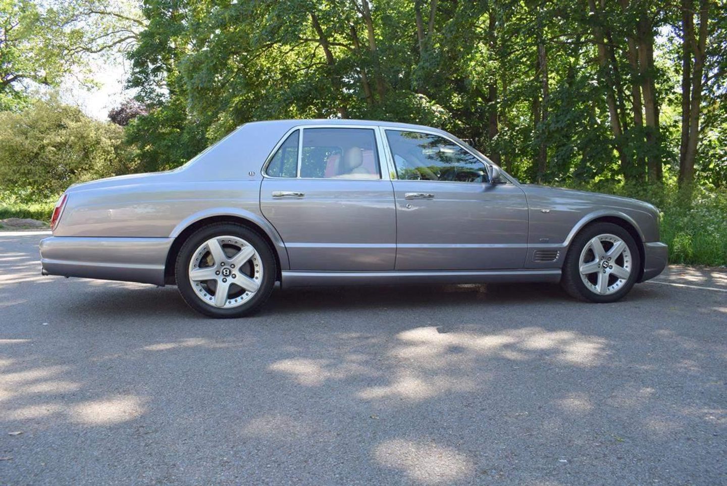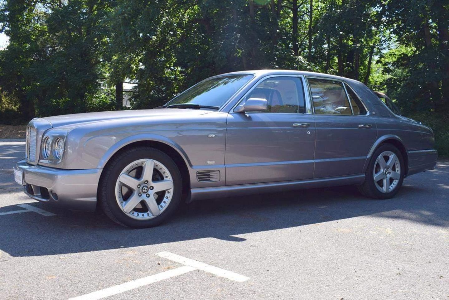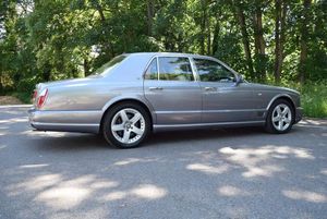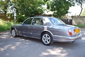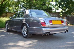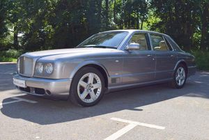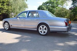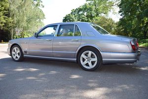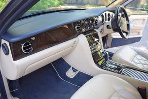 This is one of our 50 Bentleys in stock: 2005 Model/54 Bentley Arnage T Mulliner. Finished in Silver Tempest with 19 inch split rim alloys, Mulliner wing vents and quad exhausts, with Magnolia interior, with contrasting stitching and Flying B's with French Navy carpets piped in Magnolia. Vanity mirrors and turned alloy inserts on waistrails and dash, immaculate condition throughout.Please see our website www.hanwells.com to view our full selection.