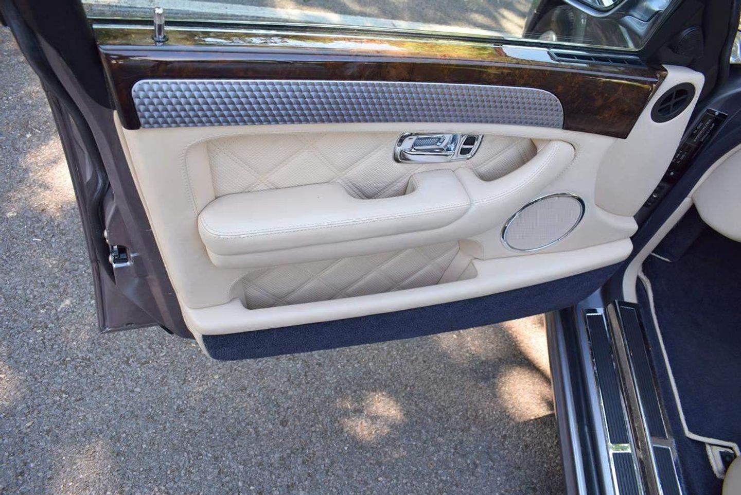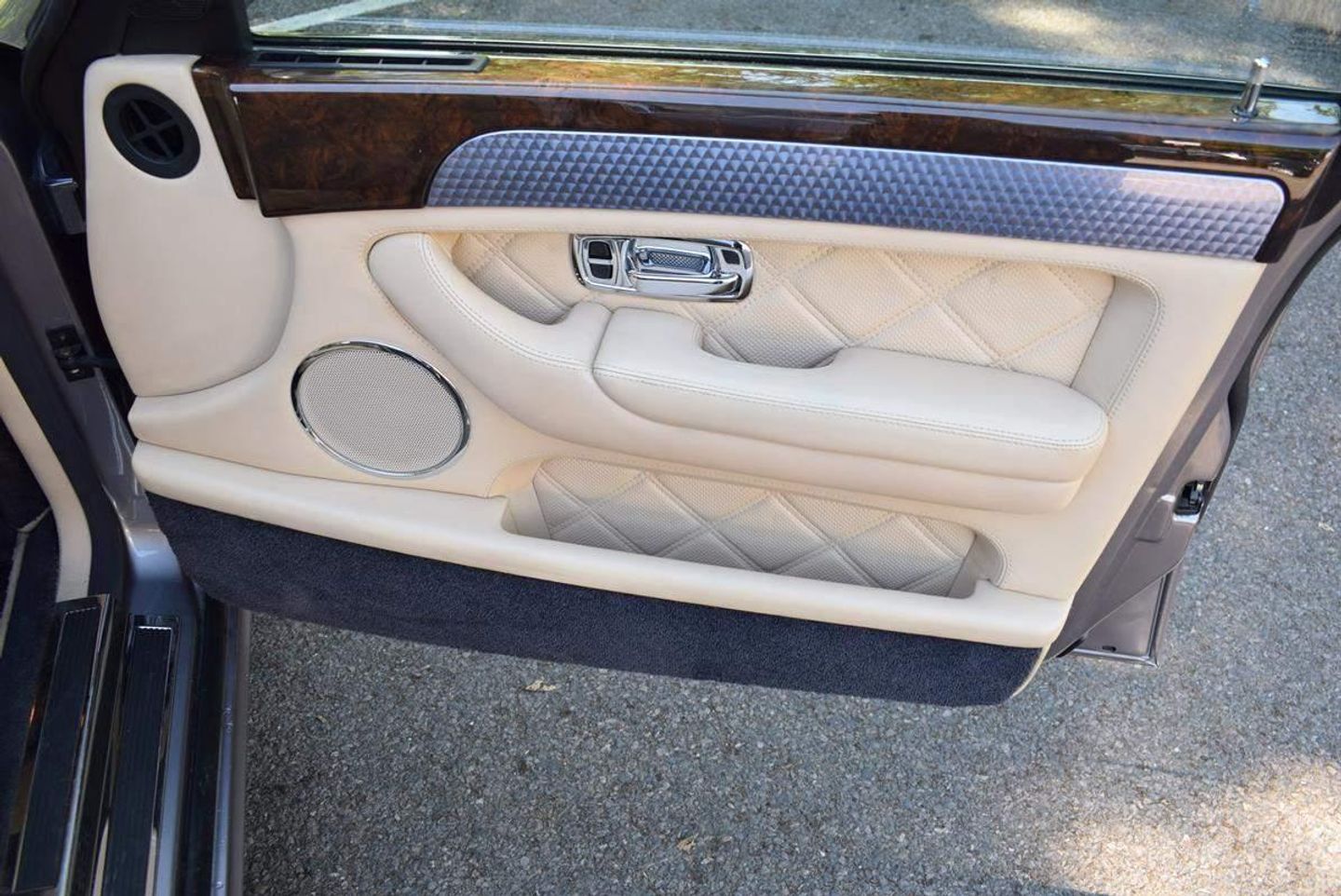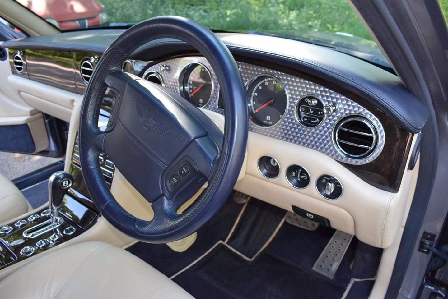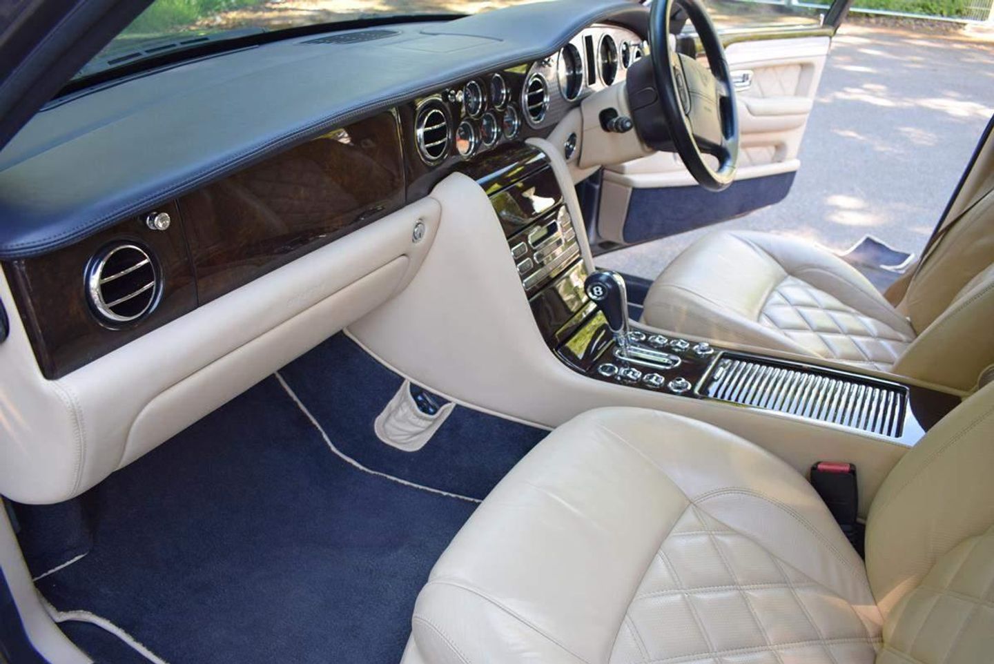 This is one of our 50 Bentleys in stock: 2005 Model/54 Bentley Arnage T Mulliner. Finished in Silver Tempest with 19 inch split rim alloys, Mulliner wing vents and quad exhausts, with Magnolia interior, with contrasting stitching and Flying B's with French Navy carpets piped in Magnolia. Vanity mirrors and turned alloy inserts on waistrails and dash, immaculate condition throughout.Please see our website www.hanwells.com to view our full selection.