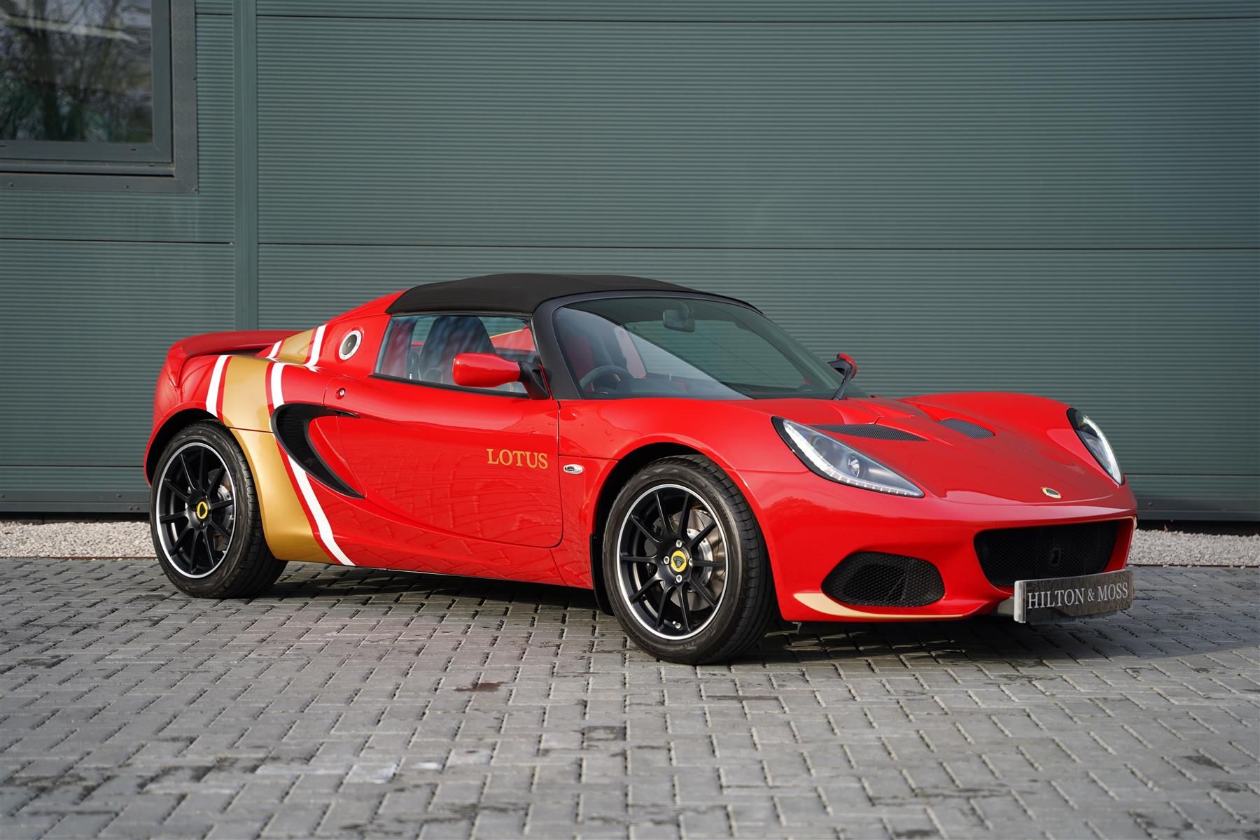The heritage paint scheme subtly ties in with the livery theme and wheels perfectly. The interior is finished in black leather with red Alcantara inserts, this Elise has every unique box ticked with the gold interior and centre console optioned. The lightweight forged wheels have been finished in black which only further accentuates this car's features.