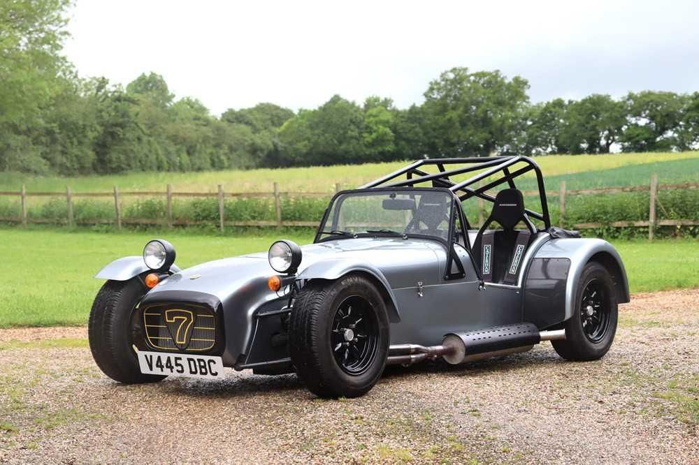 Imperial War Museum | Duxford, Cambridgeshire 15000 - 18000 Registration No: V445 DBC Chassis No: SDKRLKRXCX0021566 MOT: T.B.A � Factory built and re-painted to match the first owner's then Ferrari in Grigio Titanio � Reputedly 1 of just 9 VX Supersprints made and festooned with extras � Full rollcage, Bilstein adjustable suspension all round, plumbed-in fire extinguisher, high-backed bucket seats with harnesses, lightweight interior trim, carbon fibre wing guards etc � Characterful Vauxhall / Holden 8-valve four-cyliner engine (believed to displace 1.8 litres) fed by twin Weber carburettors and allied to five-speed manual transmission (with a long first gear). � Full weather equipment: doors, full length tonneau and hood (the latter fitting over the rollcage) � Super rare and super fun! Launched in 1957, the Lotus 7 was essentially a racing car for the road. Available in both fully assembled and kit forms, the two-seater was a simple but very effective design. Its elegant spaceframe chassis instantly transformed the dynamics of the most humdrum saloon car mechanical components. A giant killer in competition, the Seven was evolved through four series but as Chapman's road car aspirations pushed upmarket so his enthusiasm for the low profit 'kit car' waned. However, by the time Lotus ceased production in 1971 a good number of its clients had become addicted to the little sports car. Among them was Lotus agent Caterham whose belief in the design saw them buy all the tooling, presses and dies for the Seven from Lotus in 1973. Settling upon the Series III as the best of the breed they restarted production that year and have yet to stop. By the late 1990s, Ford�s 1700cc �X-flow� engine was becoming harder to source. Casting around for a suitably characterful replacement, Caterham settled on a 1600cc OHC Vauxhall unit. Reworked to run on twin Weber carburettors, the new powerplant was fitted to the Classic Seven and Classic Seven Supersprint (albeit it was reportedly enlarged to 1800cc / 120bhp for the latter application). Losing out to its contemporary DOHC Rover K-Series powered siblings which were deemed to be more powerful and sophisticated, just nine Classic Seven Supersprint VX models are understood to have been sold. Factory-built, chassis 0021566 was issued with an IVA / SVA certificate on 21st December 1999 before being road registered as �V445 DBC� on January 1st 2000. Reputedly re-painted in Grigio Titanio to match its first owner�s then Ferrari, the Caterham boasted an enviable specification with a full rollcage, Momo steering wheel, plumbed-in fire extinguisher, Bilstein adjustable suspension all-round, high-backed bucket seats, carbonfibre rear wing guards and full weather equipment. An engineer by profession, the vendor is happy to warrant the 6,000 miles shown by the odometer as representing the total covered from new due to the lack of wear and tear shown by the Caterham. Super fun and super rare, �V445 DBC� is offered for sale with V5C Registration Document and sundry paperwork.