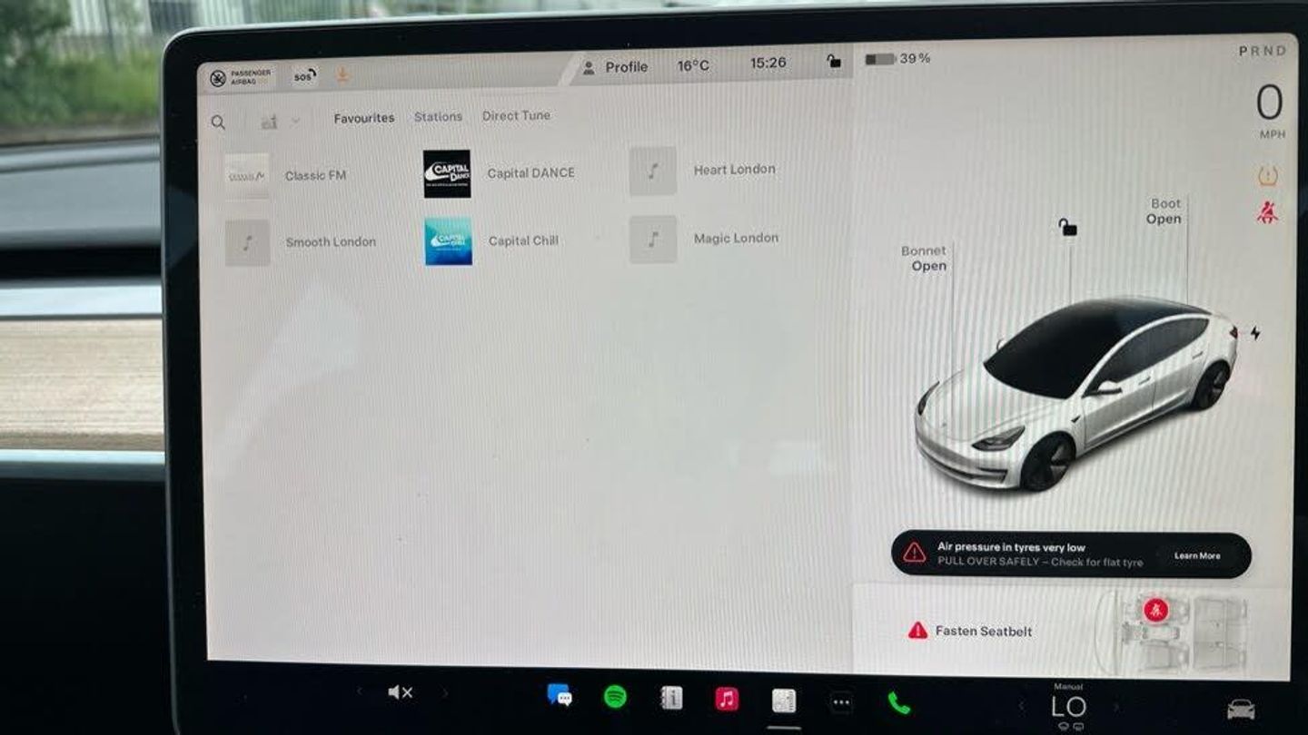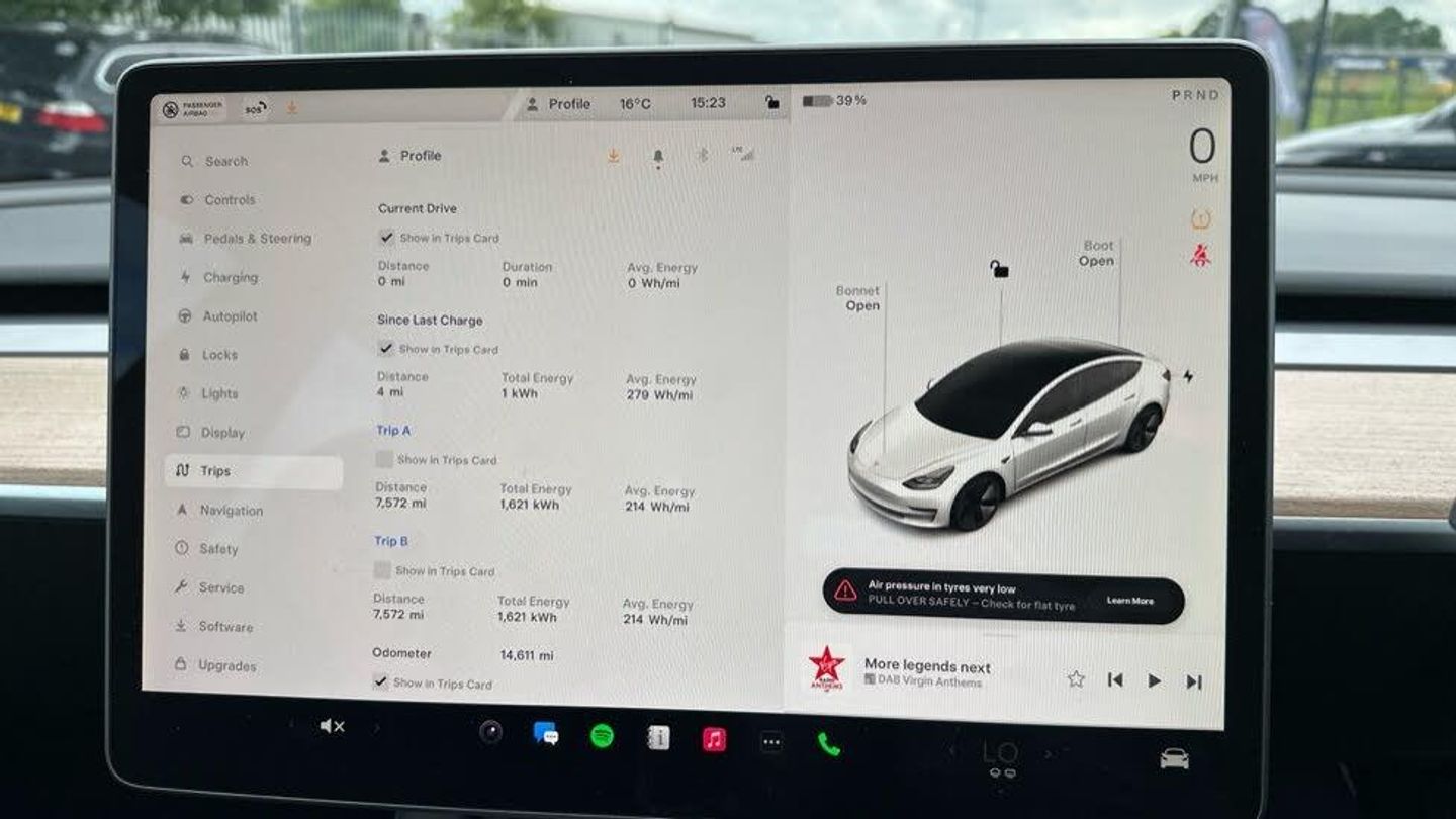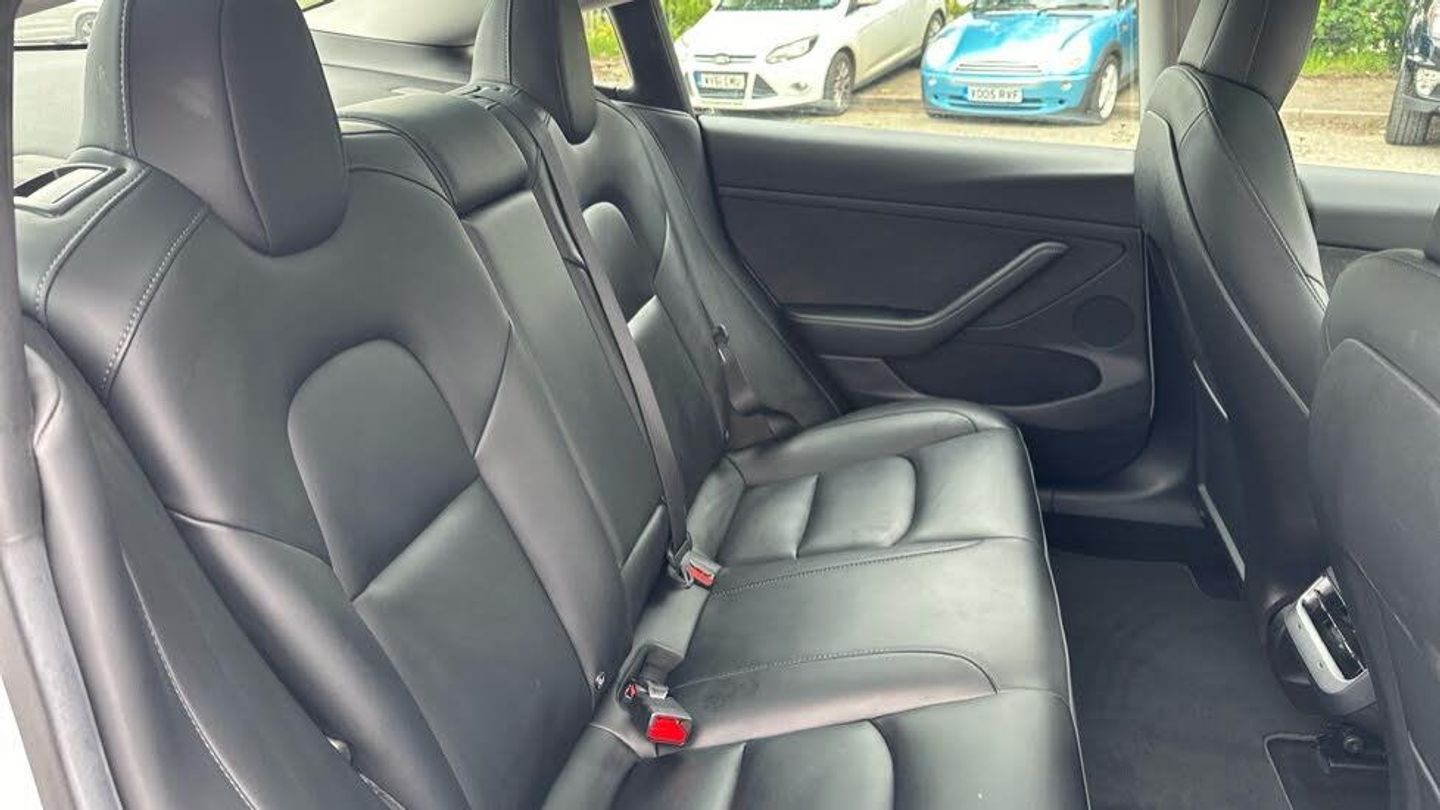 Adaptive cruise control, Adaptive steering, BLIS (Blind spot information system), Custom driver profiles, e-Call (emergency call), Electric assisted front and rear doors, Front parking sensor, Lane departure warning system, Mobile telephone preparation, Navigation system, PAS, Power lift tailgate, Rear parking sensor, Reversing camera, Service indicator, Software updates over WiFi, Speed limit recognition, Steer-by-wire technology, Traffic sign recognition, Trip computer, Voice activated controls, CCS charging connector (170Kw Max), Rear wheel drive, Tesla mobile connector + domestic adapter (British 3-pin), Type 2 connector (11Kw Max), 15" Touchscreen, Audio remote control, Audio system with 8 speakers and limited Immersive Sound, DAB Digital radio, DVD System, Media storage, Music, FM radio and media over bluetooth connection, Steering wheel mounted controls, Tesla mobile app, Auto dimming rear view mirror, Auto dimming, power folding and heated side mirrors, Automated High beam assist, Automatic headlights and wipers, Body coloured bumpers, Electric front windows, LED 3rd brake light, LED daytime running lights, LED Headlights, LED rear lights, Rear boot, Rear electric windows, Rear side wing doors, Satin black exterior trim, 12-way power adjustable front seats with lumbar support, 2 zone climate control, 3 seat bench in 2nd row, 4 USB - C ports, 60/40 split folding rear seats, Center console with storage, 2 cup holders and armrest, Driver and front passenger sunvisors with illuminated vanity mirrors, Front compartment with sliding lid, Front head restraints, Glovebox, lockable with illumination, Heated front seats, Heated rear seats, Heated steering wheel, Interior floor mats, Isofix child seat anchor points, Map and reading lights, Metalised scroll wheels on steering wheel, Power adjustable steering wheel, Rear centre armrest, with 2 cup holders, Rear headrests, Satin black sill plates, Seat controls in graphite finish, Single front passenger seat, Tinted glass roof with ultraviolet and infrared protection, Type 2 cable, 3x3 point rear seat belts, 6 airbags - Driver, front passenger, curtain and side airbags, ABS, Automatic emergency braking and collision avoidance warning, Electric child locks, ESC - Electronic Stability Control + traction control, ESP, Tyre pressure monitor, Alarm, Dashcam, Immobiliser, Keyless driving and keyless entry, Remote central locking, Wireless phone charging, Premium open pore wood decor