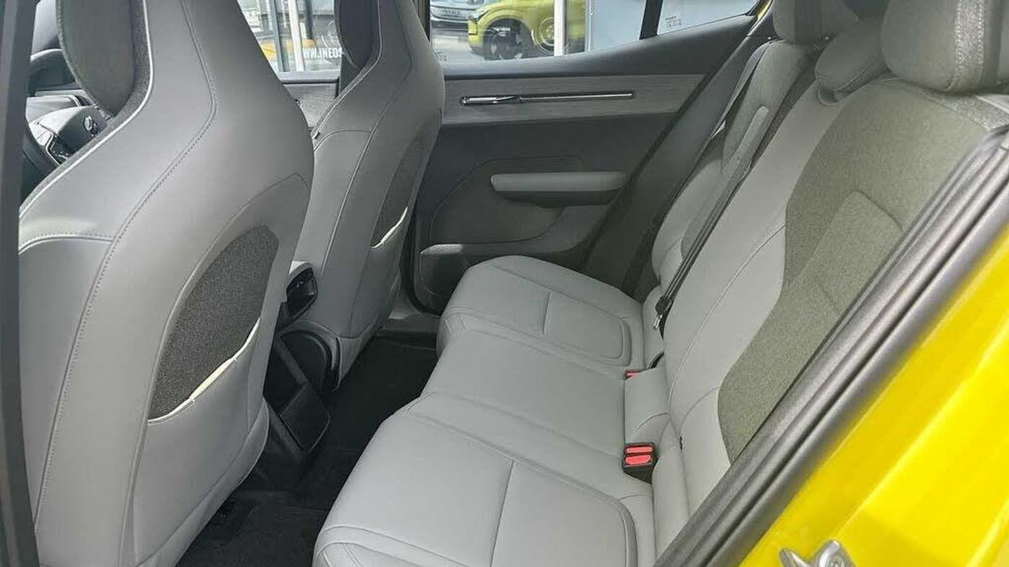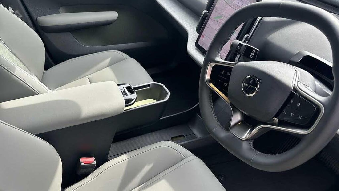 Heated front seats and steering wheel, Dealer demo car, LED illumination. load compartment, Alcohol lock software (not available in the UK), Double lock, 5 seats, Wireless phone charging, Flat-folding two-split rear seat, Run-off Road Mitigation, ISOFIX child seat attachment, Driver airbag, 12.3-inch centre display, Wool Blend & Nordico upholstery, Park assist. front and rear, First-aid kit, Shift-by-wire single speed transmission, Key tag, Temporary mobility kit, Rear-wheel drive (RWD), Pilot Assist, Harman Kardon Premium Sound, Lane change assist, Power outlet. load compartment, Road Sign Information, Direct occupant sensing, Door opening alert, Heated steering wheel, Alarm, Charging station cable. 6m, Ambience themes, Manually adjustable driver seat, Park assist camera. rear, LED headlights with active high beam, Lane Keeping Aid, Flax decor, Heat pump, Roof top and door mirror caps in contrast colour. Onyx Black, Post impact braking, Wireless Apple CarPlay, Roof Spoiler. Onyx Black, Collision avoidance and mitigation, One pedal drive, Manually adjustable passenger seat, Intelligent Speed Assist (ISA), Rear Cross Traffic Alert with Autobrake, Hill Start Assist, Driver alert system, Auto-dimmed inner and door mirrors, Side impact protection, Hill Descent Control, Rear Collision Warning, Dual-stage airbags. passenger, Passenger airbag cut-off switch, Lane Departure Warning, Air quality measurement and remote cabin air pre-cleaning, LED headlights, Digital Audio Broadcasting (DAB+), Fog lamps. rear, Front Cross Traffic Alert, Air quality system, 19? 5-Spoke Aero, Traffic Jam Assist, Fixed lumbar support, Front and rear USB-C ports, Vanity mirrors, 11kw On-Board Charger (OBC), Heated front seats, Adaptive cruise control, Cabin filter, Child safety lock, Power tailgate, Warning triangle, Rear LED lights, Sliding cupholders and storage, Interior illumination. high level, Summer tyres, Digital key plus, Air vent decor. transparent, Door mirrors with ground lighting, Two-zone climate system, 5G capability, Blind Spot Information System (BLIS), Charging station cable. 5m (22kW), Comfort chassis, Safe Space Technology, Rear phone storage, Front storage, Intersection autobrake, Oncoming Mitigation by Braking, Inflatable Curtain, Textile interior cabin floor mats, Large door pockets, Oncoming Lane Mitigation, Whiplash injury protection system, Removable rear storage box, Rain sensor, Tailored sports steering wheel, Rear load compartment, Volvo EX30 App, Google Assistant. Google Maps and Google Play Store - included for 4 years, Pedestrian and cyclist steering avoidance, NFC smart card key, Front load compartment, Over-the-air updates (OTA)
