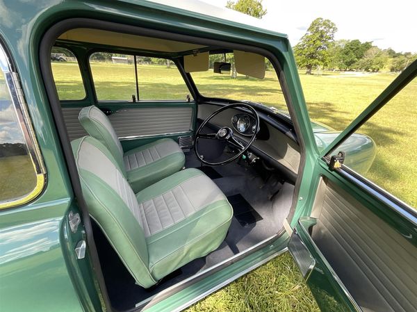 Mini Cooper MK1 998 cc, finished in Almond green with an old English white roof and Porcelain green and Dove grey interior. 1964 B registration. Supplied with a Heritage certificate confirming that this is a matching numbers home market car in its original specification. It retains the original body shell which has been wonderfully restored. The engine and gearbox have been rebuilt and the interior is all as new. To summarise the car has been completely striped down the bare body shell and fully rebuilt to perfect condition. All brakes, suspension, ancillaries, exhaust system, and tyres have been refurbished or replaced, the same with all the brightwork. Suppled new according to the Heritage certificate with fresh air heater. Very rare being matching numbers with the original body shell. The history file contains a full detailed record of all the work carried out during the restoration, including photographs of all metalwork carried out on the body shell. V5 and Heritage certificate. Fantastic opportunity. Any inspection welcome and delivery available. £29,995.