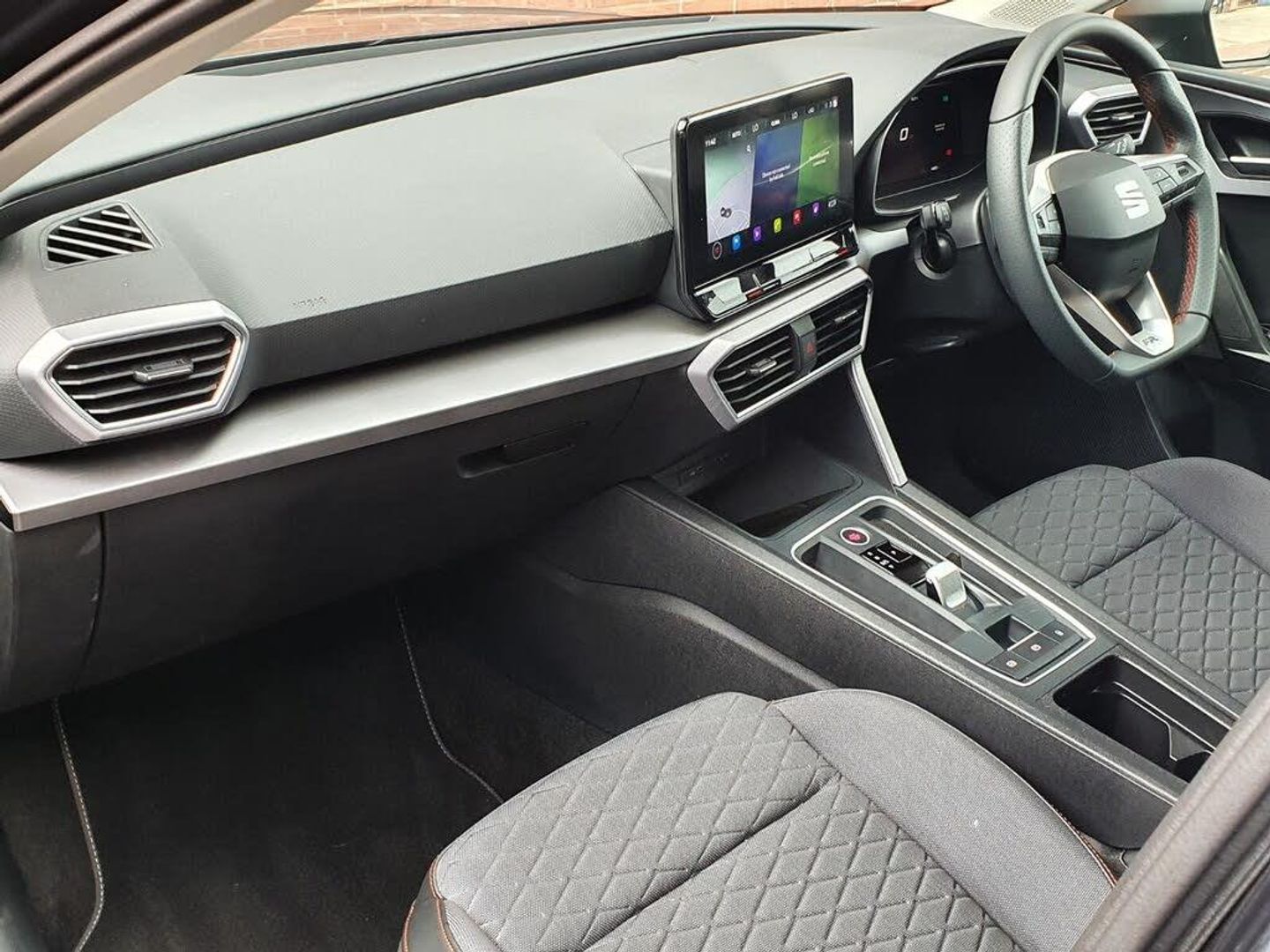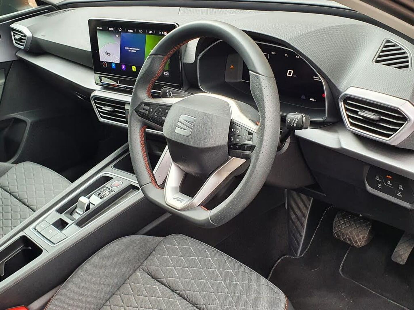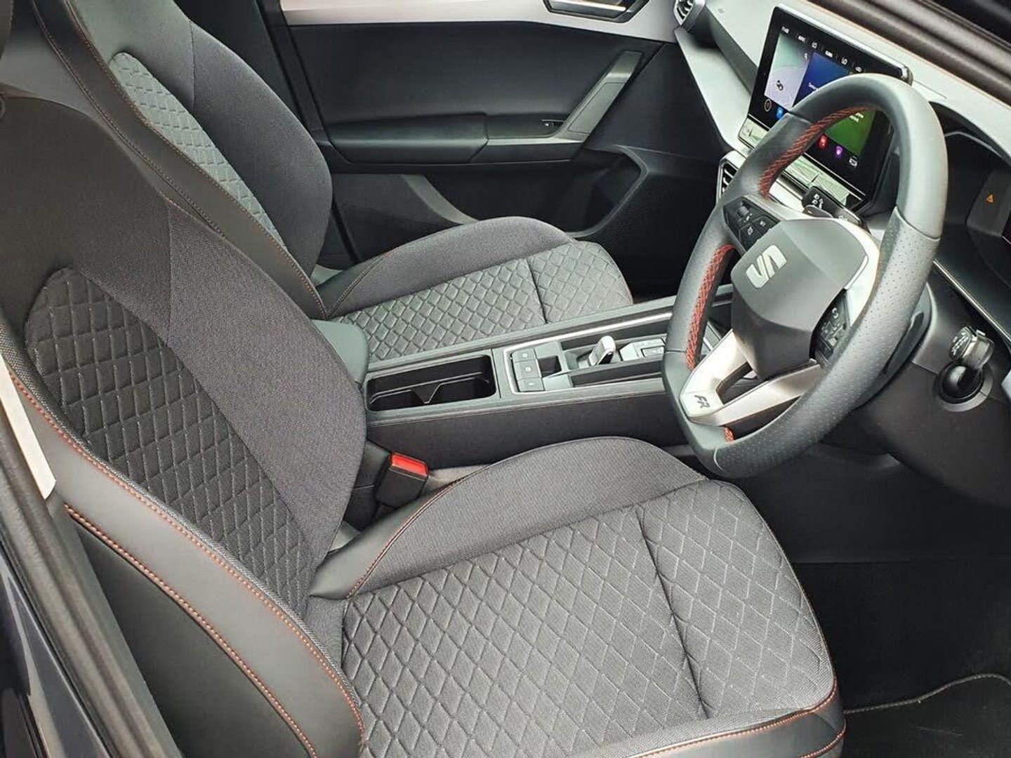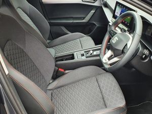 Digital cockpit, E-call, Four x USB Type C ports, Front assist with forward collision warning braking reaction to vehicles, pedestrians and cyclists, Full link smartphone integration with Mirror Link, wireless Apple CarPlay and wired Google Android Auto, Lane assist, Lockable tailgate, Park assist (inc front/rear parking sensors), Power assisted speed sensitive electro-mechanical steering, Rear view camera, RPM, trip computer, outside temp gauge, instrument light brightness, low fuel warning light, lights on reminder, gearshift indicator, SEAT drive profile with 4 modes (Eco/Normal/Sport/Individual), throttle response and gearshift mode, Service interval indicator, Start/stop system with regenerative braking, Sports suspension, XDS electronic differential lock and dynamic traction support, 7 speakers, Auxiliary input socket, Auto dimming rear view mirror, Body colour door handles, Body coloured bumpers, Cosmo grey exterior mirrors with integrated LED indicators, Dark tinted rear windows, Dynamic headlight range control, Electric front/rear windows, Electrically adjustable, heated and folding door mirrors, FR sports bumper, Illuminated front door sill, LED front fog lamps, LED Headlights with dynamic turn signals, LED tail lights and rear fog lights with rear coast to coast lighting, Rear side wing doors, Rear wash/wipe, Separate daytime running light with automatic headlight control and coming home feature, Third brake light, Welcome light silhouette from exterior mirrors, Windshield wiper intermittent control with light/rain sensor, 12v power point in centre console, 3 seat bench in 2nd row, 60/40 split rear bench seat with armrest, Ambient lighting with glovebox, footwell and single monocolour, Driver/passenger manual seat height adjustment, Dust/pollen filter, Folding boot cover, Front and rear height adjustable headrests, Front and rear reading lights X 4, Front centre armrest, Front seatback storage pockets, Height/reach adjust steering wheel, ISOFIX points in outer rear seats with top tether anchorage points, Luggage tie-down hooks, Lumbar adjustment for front seats, Single front passenger seat, Sunvisors with covered illuminated mirror, Three zone climate control, Tool kit, Two tone cloth upholstery, Media system plus with navigation - Leon, 3 point seatbelts on all rear seats, ABS, Brake control system - ESC and brake booster, Child proof door locks, Driver and front passenger airbags with front passenger airbag de-activation, front side and curtain airbags, Electronic parking brake, Extended safety system - seat belt tensioner, window closure and hazard lights, Hill hold control, Rear disc brakes, Seat belt reminder for front and rear seats, Tiredness recognition system, driver alert system, Tyre pressure monitoring system, Anti theft alarm system with interior monitoring in cab, backup horn and towing protection, KESSY Go (Keyless start), Locking wheel bolts, Wireless phone charging, Chrome interior detailing, 17" Dynamic Bi-spoke alloy wheels with 91W tyres