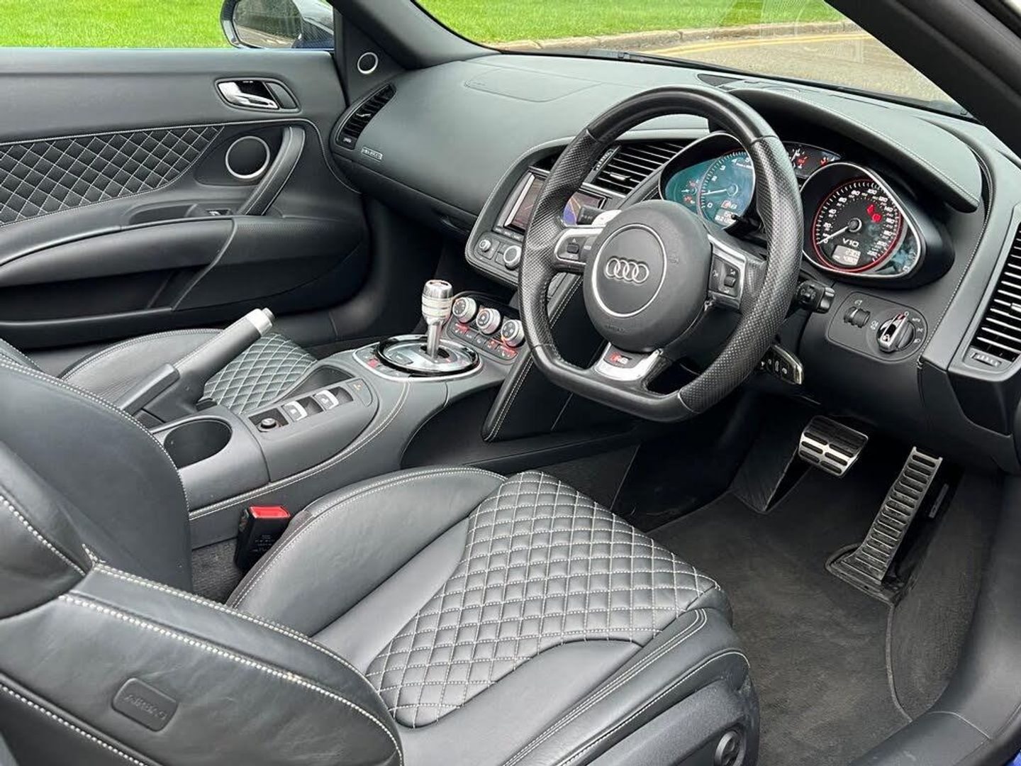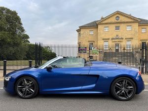 Experience the thrill of the Audi R8 FSI V10, a stunning car registered in 2015. This model comes with a full service history and will have 12 months MOT provided on purchase, ensuring it's ready for the road.Equipped with a range of features for enhanced comfort and convenience, this R8 includes electronic climate control, heated front seats, and LED headlights. Stay connected on the go with mobile telephone preparation via Bluetooth, complete with microphones and voice control.Powered by a 5.2L petrol engine and benefiting from four-wheel drive, this R8 delivers exceptional performance. The impressive acceleration, reaching 0-62mph in just 3.8 seconds, demonstrates its superior capabilities compared to similar vehicles.SLF Car Sales are pleased to offer this lovely Audi R8 V10 SPYDER in Sepang blue with only 43,805 miles on the clock. Very clean inside and out. This car comes with a 12 month MOT and full service history. This car is in immaculate condition. First to see will buy. All cars come with a standard 3 month warranty but at customers choice the warranty can be upgraded. All cars are HPI clear and have not been involved in any accidents or have any outstanding finance due. Please check out our website at www.slfcarsales.co.uk where you will see all our latest stock and our outstanding finance deals we can provideExtended Fine Nappa leather package in stitched diamond design3,700LED headlights2,860Engine cover in Carbon Sigma1,350Carbon sigma door mirror trims1,200Audi Parking System Advanced1,070Bang & Olufsen Sound System950Pearl effect paint71519'' '5-arm double spoke' design alloy wheels in titanium finish570Black styling package - Spyder480Contoured 3-spoke leather Sports flat-bottomed multi-function steering wheel with gearshift paddles355Tyre pressure monitoring system275Audi Music Interface255Cruise control225Mobile telephone preparation - Low, Bluetooth interface and voice control with integrated seat-belt microphones175Audi hill hold assist90Black hood0Sepang blue, pearl effect0T