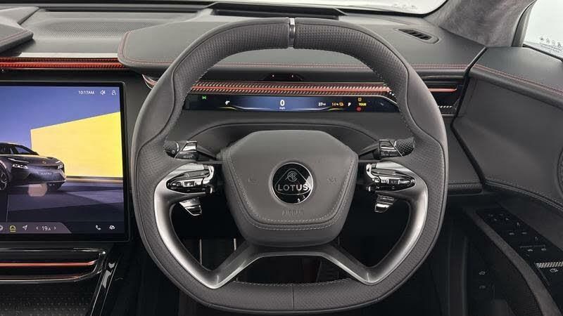 Stellar Black Metallic Paint, 23 Multi-Spoke Grey Diamond Turned alloy wheels, Pirelli P-Zero Tyres, Lightweight Brake Discs with 6-Piston Red Calipers, Carbon Exterior Trim Pack, Rear badges in Gloss Black, Interior Theme - Jasper, Comfort Seat Pack, Interior Nappa Leather, Steering Wheel in charcoal Leather with Dark Steel Blue Accents, Sports Pedals, Illuminated Metal Tread Plates, Interior Trim in Gloss Black, Auto Dimming Exterior Mirrors, Sports motor sound, Privacy Glass, Configurable Ambient Lighting, Hands Free Tailgate, KEF Reference Audio System, Lotus Dynamic Handling Pack, HomeLink, Active Aero Pack, Air Quality System, Intelligent Glass Roof, Parking Pack, Highway Assist Pack,