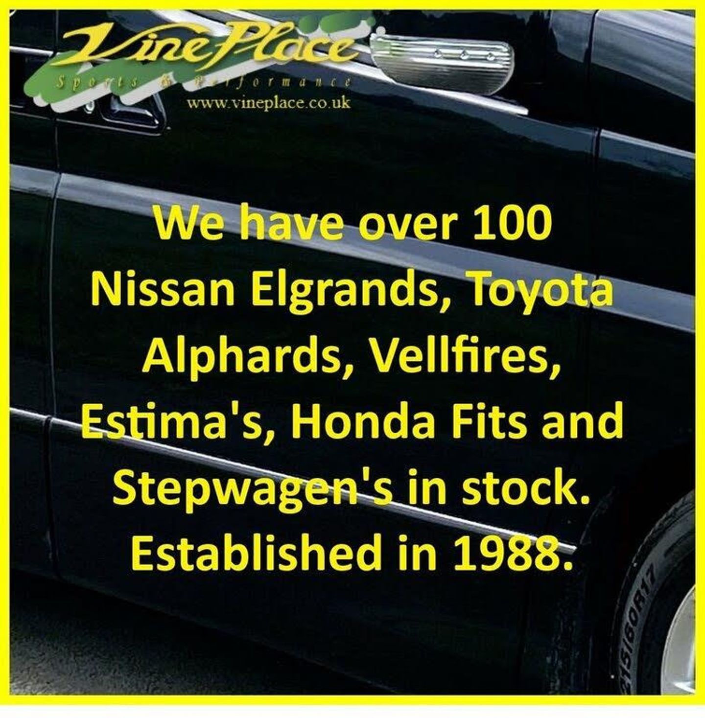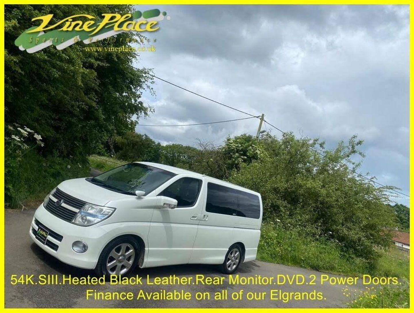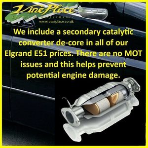 This car is a Nissan Elgrand E51 Highway Star a perennial favourite. It is an 8 seat, petrol automatic. Featuring a hard wearing and easy clean black interior with stylish black half-leather seats, this model is practicality for any use. Each vehicle was originally sold with a huge choice of options, ensuring that no two cars share the same specification. This series III 3.5 car has full black leather trim with front seats heated. It has DVD and flip down rear monitor to entertain your rear seat passengers and has pwer doors on both sides of the car. Mileage is 54K. + ULEZ Compliant (London). + Fresh from Japan. + 54K Warranted Miles with BIMTA/AA mileage certificate. + Grade 4 vehicle (non-accident history in good order). + All factory recalls carried out.. + Remote control rear drop down monitor. + DVD. + Colour reverse and front/side camera. + Front parking sensors. + Rear parking sensor. + Twin remote control power doors. + Remote control power door. + Captains middle seats. + Keyless entry and starting. + Retractable mirrors. + XENON Headlamps for superb night-time vision. + Directional headlights (AFS). + Nissan NATS alarm and immobiliser security system. + Privacy glass. + 2 Remote key fobs. + Rear catalytic converters will be de-cored. Does not affect the MOT . + Fog light incorporated into original rear light unit. + Exposed areas of floor and chassis to be undersealed with Body-shutz. + Includes Bluetooth adapter to allow streaming to car audio. + Nationwide delivery £199. (£299 Devon, Cornwall, and South/West Wales) + Supplied with comprehensive service and MOT (inc. advisories). + MPH speedometer available as an optional extra. + Towbar available as an optional extra. (fixed/removable, 8/13Pin) + Roof bars available as an optional extra. + UK Menu conversion is available as an optional extra. + Full integrated upgrade to Apple CarPlay and Android Auto Available as an optional extra (retains original look). + Cruise control available as an optional extra. + Switchable power/economy upgrade available as an optional extra. + LPG conversion available as an optional extra. + This vehicle can be reserved with a deposit of £500, refundable in the unlikely event that when fully prepared you are not entirely satisfied. Explore our extensive selection of Nissan Elgrand vehicles, with 30 or more units available for sale in the UK or en route! Since 1997, Vine Place has been importing a diverse range of vehicles from Japan. The Nissan Elgrand holds a special place in our lineup for its exceptional blend of practicality, aesthetics, comfort, unwavering reliability, and impressive performance. Not only do we offer the Nissan Elgrand for sale, but as a leading Nissan Elgrand dealer in the UK, we extend our commitment to customer satisfaction by providing top-notch service and repair options for all our Nissan Elgrand customers. For those conscious about fuel efficiency, the official Japanese Fuel Consumption figures for the 3.5 E51 stand at 8.0 km/l (22.6 MPG), while the 2.5 is 8.4 km/l (23.74 MPG). At Vine Place, we not only bring you a wide range of Nissan Elgrand options but also ensure you receive comprehensive support and care for your vehicle. With over around 150 vehicles in total stock we don’t have all cars on site. At any one time we will have cars in Japan, on various ships, in preparation or at one of our 4 storage facilities. We do however have demonstrators at Wingate. However, please call Karen on 01429 836029 or email Dave at dave@vineplace.co.uk to make an appointment. This will ensure both a demonstration vehicle and a member of staff are available at the appointed time. Stock no. 1935