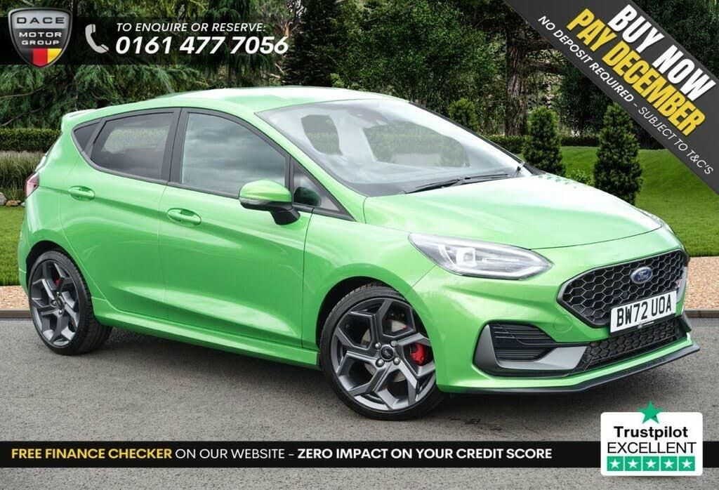 INTRODUCING THE FORD FIESTA 1.5L ST-3 FINISHED IN "MEAN GREEN" STYLED WITH 18INCH ALLOY WHEELS AND BLACK LEATHER AND SUEDE WITH RED STITCHING. WITH FEATURES SUCH AS: FULL SERVICE HISTORY + 1 OWNER FROM NEW + APPLE CAR PLAY/ ANDROID AUTO + DIGITAL COCKPIT + SATELLITE NAVIGATION SYSTEM + REVERSE CAMERA + FRONT AND REAR PARKING SENSORS + BLUETOOTH CONNECTIVITY + DAB RADIO + IN CAR ENTERTAINMENT: USB. + STOP START FUNCTION + AIR CONDITIONING + CLIMATE CONTROL + MULTI FUNCTIONING STEERING WHEEL + CRUISE CONTROL + ELECTRIC WINDOWS + ELECTRIC FOLDING MIRRORS + HEATED WINDSCREEN + LANE ASSIST + AUTOMATIC LIGHTS AND WIPERS + SPORT SEATS + PRIVACY GLASS + LED HEADLIGHTS. ------------FINANCE------------ ***NOT SURE YOU'RE ELIGIBLE FOR CAR FINANCE? *** CHECK TODAY USING THE FREE CAR FINANCE CHECKER ON OUR WEBSITE.** Dace Motor Group have a dedicated team of finance experts waiting to help with your enquiry. Over the past 30 years we have forged relationships with the country's largest and best finance houses. We are specialists in Hire Purchase (HP), Personal Contract Purchase (PCP) as well as assisting those with poor credit or previous credit problems. ------------ABOUT US------------ At Dace Car Supermarket Stockport, we are very proud to have been named the first Trading Standards Approved Car Retailer, with process and procedures developed with and applauded by them. We do recommend that customers RESERVE their choice of vehicle prior to making their trip to avoid potentially missing it. Visit our website https://www.dacecarsupermarket.co.uk/ At Dace Specialist Car Centre Stockport we carry 700 cars in group stock. - TO ENQUIRE OR RESERVE PLEASE CALL 0161477705 - ------------WARRANTY------------ With effect from the 1st May 2024 the Warranty Solutions Group will be providing their highest level of national warranty cover on all of our cars + 3 MONTHS WARRANTY FREE + EXTENDED WARRANTIES AVAILABLE + ------------ADVERT ACCURACY------------ Although we make effort to ensure the description of our vehicles is accurate, mistakes can happen. We are human after all! So, whether it is the exact specification of a vehicle you need clarifying, the service history dates and mileages, even the colour shade – please speak to a member of our sales team and they will happily confirm all you need to know about this car. PLEASE NOTE – our adverts can never be cited as the reason you have brought a car incorrectly, as no purchase can be completed without the customer physically examining the car. As such, the physical viewing and documentation provided for the vehicle is deemed to be the basis for the sale, not an advertisement that may on occasion Visit our website https://www.dacecarsupermarket.co.uk/ At Dace Car Supermarket we carry over 700 cars in group stock. Many have Full Service History, Automatic or Manual and Models like Focus, Grand C-Max, Active, GT, Hybrid, RS, Mondeo, ECO, TDCi, Titanium X, Zetec, Edge, Style, V8 ,Ranger, Mustang, Sport, ST, Ecoboost and TD, some of our cars will have Satellite Navigation, Sunroof, Leather and Bluetooth.