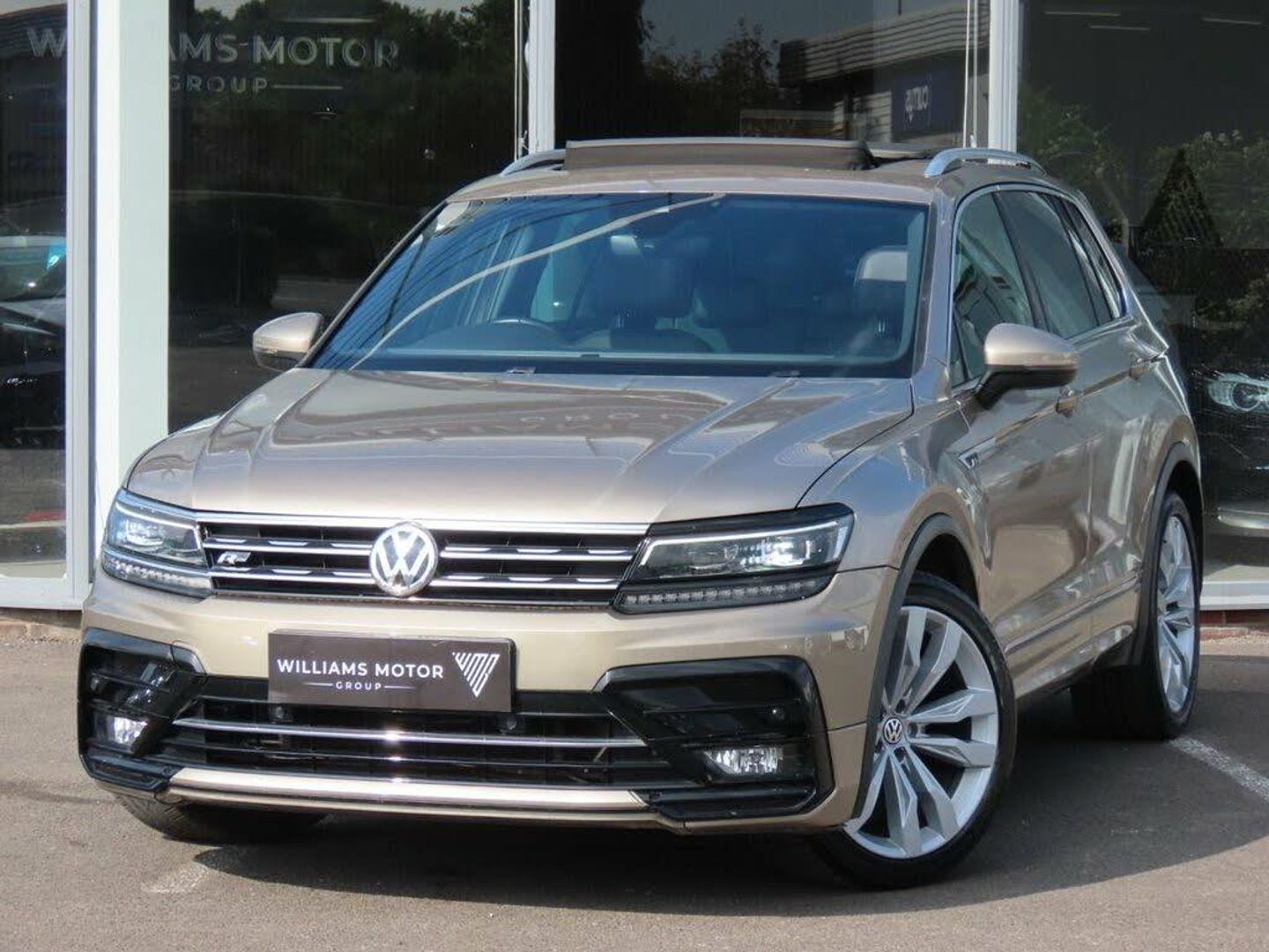 Active information display, Adaptive cruise control, App-Connect, Bluetooth phone integration system, Instrument cluster, Lane assist, Low washer fluid warning light, Outside temperature display, Progressive power assisted steering, Service interval indicator, Speed limiter, Warning lights, Alarm with interior protection, Electronic engine immobiliser, Remote central locking with 2 remote folding keys, Diesel particulate filter, Sports suspension, XDS electronic differential lock, Ambient lighting pack - Tiguan, 3 rear 3 point seatbelts, ABS+EBD+Brake assist, Active bonnet, Active pedestrian safety system, Curtain airbags, Driver/Front Passenger airbags, Driver/Passenger whiplash optimised head restraints, Drivers knee airbag, Electronic parking brake with auto hold, ESP with EDL + ASR, First aid kit, Front assist including city emergency braking, Front side airbags, Head airbag system, Height adjustable front 3 point seatbelts + pretensioners, Hill hold control, Passenger airbag deactivate switch, Passenger knee airbag, Pre crash system, Rear side airbags, Seatbelt warning lamp and buzzer, Two tone horn, Warning triangle, 2x USB sockets in front, Aux-in socket, DAB Digital radio, SD card slot, 12V Accessory socket in centre console, 3 rear headrests, 3 zone climate control, 4 load lashing points, 40:20:40 split folding rear seats, Bag hook in luggage compartment, Black headlining, Driver + front passenger lumbar support, Foldable passenger seatback, Front + rear carpet mats, Front centre armrest with 12v socket, Front centre armrest with storage + rear 2 air vents + cupholders, Front seatback folding tables, Height/reach adjust steering wheel, Illuminated driver/passenger vanity mirrors, Illuminated scuff plates, Interior light with delay, Isofix Preparation 2 Rear child seats, Leather gear knob, Lockable cooled glovebox, Luggage compartment lighting, Luggage compartment side storage, Map pockets on front seats, Passenger seat height adjuster, Rear cupholders, Removable luggage cover, Sliding/reclining rear seats, Stainless steel pedals, Storage compartment in driver's door, Storage compartment in passenger's door, Storage tray on dashboard, Sunglasses storage, Variable boot floor, Auto dimming interior mirror, Automatic activation of hazard warning lights, Black roof rails, Body coloured door handles, Body coloured door mirrors, Body coloured rear spoiler, Body coloured bumpers, Chrome side window surrounds, Chrome trimmed radiator grille, Coming/leaving home lighting function, Dual chrome exhaust, Dusk sensor + auto driving lights, Electric folding door mirrors, Electric heated + adjustable door mirrors, Electric panoramic sunroof with sunblind, Front and rear electric windows, Heated rear window, LED headlights with dynamic light assist daytime running lights and cornering front fog lights, LED rear lights, Piano black rear diffuser, R Line body kit, Rain sensor windscreen wipers, Rear windscreen washer and wiper with interval delay, Silver under body guard, Tinted windows (B pillar backwards), Twin trapezoid chrome exhaust pipes, Chrome door trim inserts, Piano black interior trim, 20" Suzuka alloy wheels + anti theft wheel bolts, Steel space saver spare wheel