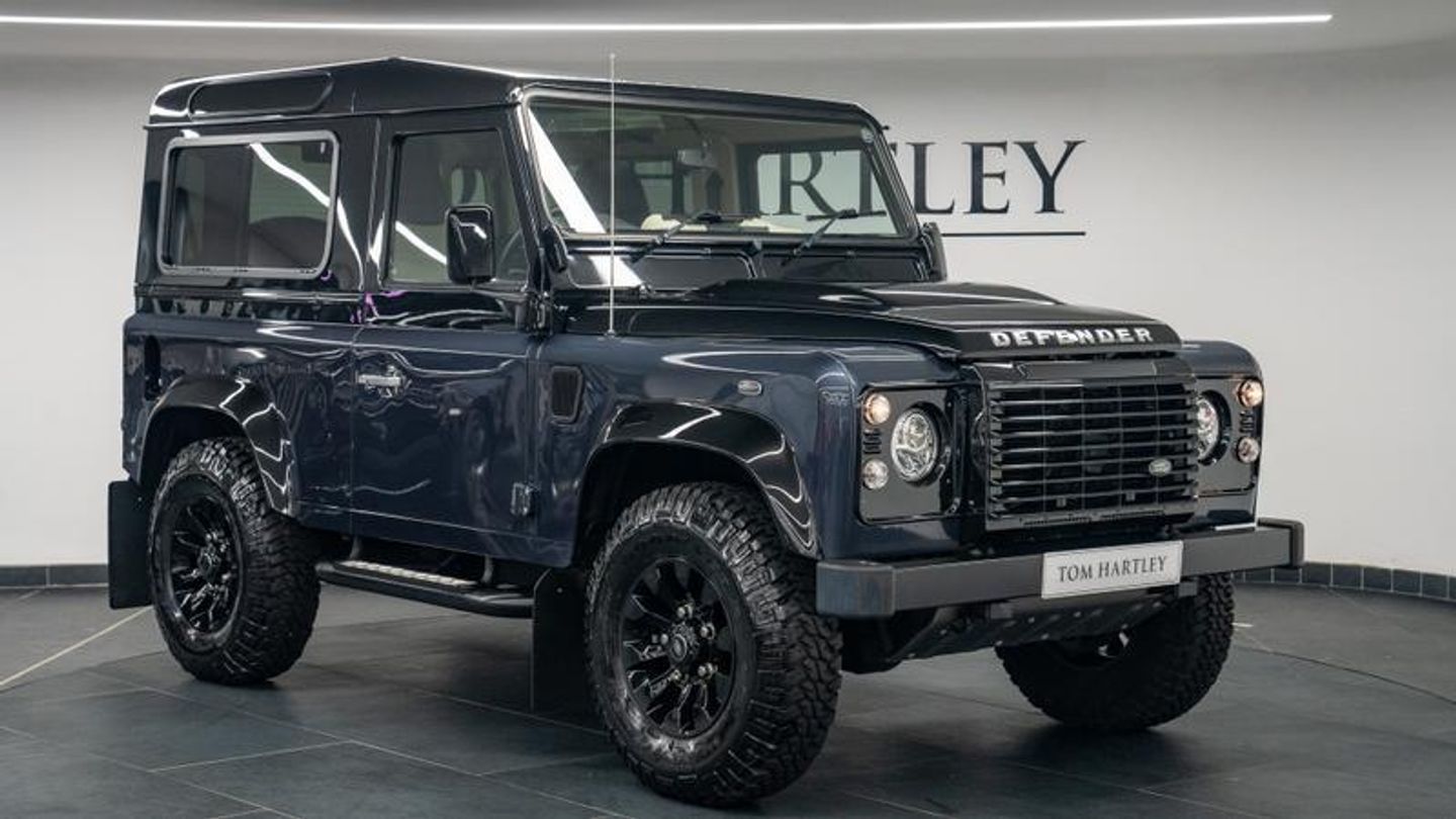 1 of 100 Produced, 150 PS Power Upgrade, Upgraded LED Headlamps and Tail Lamps, Upgraded 18 Diamond-Finished Sawtooth Alloy Wheels, Heated Seats, ALPINE Sound System, Privacy Glass, Alpine Lights, Santorini Black Rear Door, Santorini Black Wheel Arches, Santorini Black Headlamp Surrounds, Santorini Black Upper Body, Santorini Black Rear Door, Clear-Lens Indicators, Aluminium Exterior Door. Handles, Metal Fuel Filler Cap, Side Steps, Underbody Protection, Autobiography Badge, Santorini Black Interior Panel, Rooflining in Ivory Leather, Twin-Needle Contrast Stitching with Autobiography Script, Aluminium Door Lock Button, Aluminium Interior Handles, Aluminium Air Vent Bezels, Bright Machined Diff Lock Plate, Autobiography Carpet Mats, Cup Holders with Spun Metal Discs. The exclusive Autobiography Edition provides more comfort, equipment and performance than any previous model. Its unique combination of interior and exterior features and special paint palette guarantee to make the Autobiography the most desirable Defender ever produced. The production run was limited to just 80 vehicles in the UK and 100 in total, exclusively in the iconic 90 Station Wagon bodystyle.A power upgrade from 122PS to 150PS guarantees performance will live up to the promise of its eye-catching looks and exclusive appearance. Striking duo-tone paintwork is the most obvious of the Autobiography's unique features, but the most desirable Defender ever built includes a host of tasteful additions.Increased power output (122PS to 150PS)Increased torque output (360Nm to 400Nm)Santorini Black upper body, rear door, grille, headlamp surrounds and wheel archesSeven-inch LED projector headlampsClear indicator lenses'Defender' bonnet script in machined bright finishMetal/Aluminium exterior door handlesMetal fuel filler capSide stepsUnderbody protection for engine sumpBright Pack (white tail and indicator LED lamps)16-inch Gloss Black Sawtooth alloy wheelsGoodyear MT/R tyresAutobiography badge (rear)Santorini Black central information panelFull Windsor Leather interior (including Ivory rooflining)Semi Aniline premium leather seats with twin needle contrast stitching and embossed Autobiography logoPrivacy GlassAluminium door lock button, handle and air vent bezelsBright machined/enamel diff lock instruction plateUnique carpet matsSpun metal discs in cup holder slots