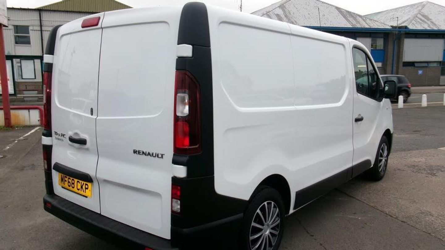 NO VAT SPECIAL OFFER, 3 MONTH WARRANTY EXTENDED TO 6 MONTH AND 6 MONTH,S ROAD TAX FREE NO VAT 2018/68 Renault Trafic SL29 1.6 dCi 120ps Business Van Side Loading Door, Ply-Lined, Dual Pasenger Seat, Factory Fitted Bulkhead, 3rd brake light, Anti-lock Brake System (ABS), Bluetooth interface, Service interval indicator, Trip computer, Rev counter, Radio, USB input, Electric door mirrors, Heated door mirrors, Drivers airbag, Passenger airbag, Immobiliser, Remote central locking, Cloth seat upholstery, Steel wheels, Front electric windows, We Offer FINANCE PACKAGES -PART EXCHANGE- [WE TAKE CARS IN P/X] DELIVERY AVAILABLE IF REQUIRED For CUSTOMER CONFIDENCE we offer a FULL AFTERSALES SERVICE from our own Workshops based at Ninian Park Road Cardiff CF11 6HE, just .5 miles from our VAN SALES SITE we offer MOT TESTING SERVICING REPAIRS AND DIAGNOSTICS. In the unfortunate event that your vehicle develops a problem we can provide the Service you deserve as a Valued Customer. WE HAVE IN STOCK UPTO 80 USED VANS, ALL MAKES ALL MODELS TO SUIT ALL BUDGETS CHECK OUR WEBSITE, If we do not have the van to suit we CAN locate it for you- ring us on . The vehicle comes with PEACE OF MIND 90 day/3000 miles PERSONAL WARRANTY [terms & conditions apply] We are One of the LARGEST independent USED VAN DEALERS and been in Business since 2002, We are offering NIL DEPOSIT FINANCE (Subject to status) please telephone for details, ULEZ compliant Euro 6b CO2 emissions rating H - 170g / km.